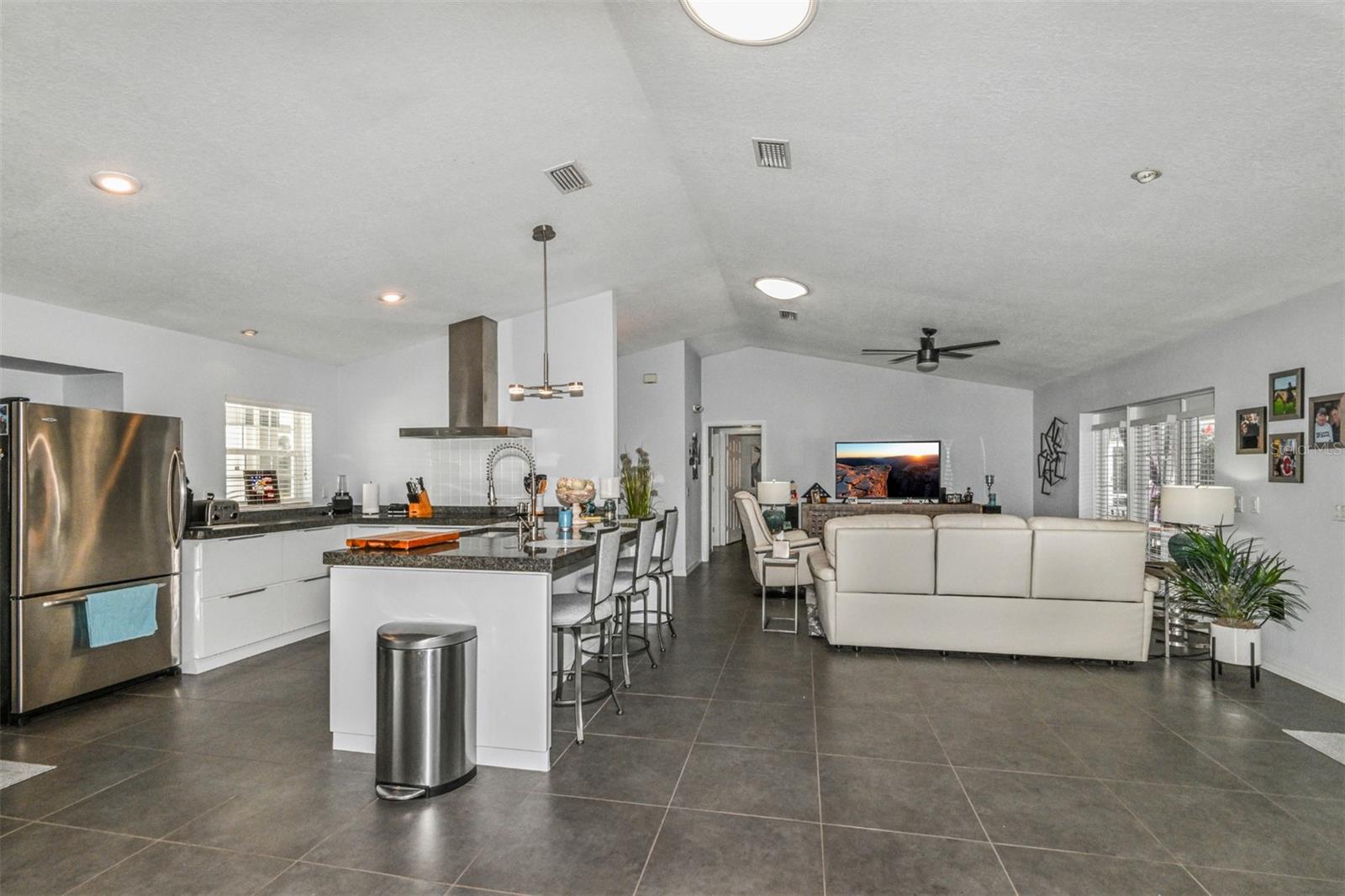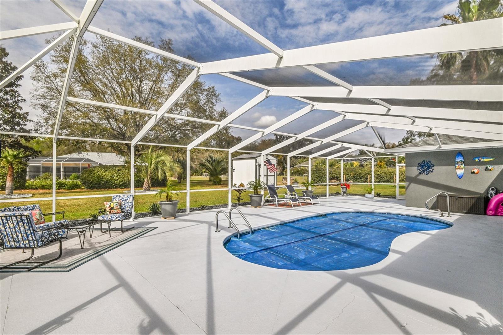 Esta é uma casa de garagem de 3 quartos e 2 banheiros/2 banheiros/2 banheiros/2 banheiros/2 banheiros/2 carros, localizada na comunidade desejável de Connell Lake Estates, também conhecida como "Lakeside". A área de estar e jantar está aberta para a cozinha. Tetos altos abobadados com tubos solares para luz natural. A cozinha elegante e bem equipada tem uma despensa grande separada. A cozinha possui bancadas em granito, armários modernos com sistema de gavetas mais baixos e portas de fechamento suave. Microondas e forno embutidos; Todos os aparelhos SS. Cooktop elétrico com um backsplash de ladrilhos de vidro e capuz de aço inoxidável. Quarto principal com portas francesas para a piscina. Banheiro principal com bancadas de granito, pias duplas, armários, chuveiro e closet. Dois quartos estão do outro lado da casa, assim como o segundo banheiro com chuveiro e acesso à piscina. Área de garagem e lavanderia de 2 carros com lavadora e secadora. A área externa possui um lanai exibido. A área de estar é coberta e tem amplo espaço para entretenimento. Conexão de TV, pronta para estéreo do seu receptor interno e várias saídas elétricas instaladas. O baralho foi pintado recentemente; Piscina com aquecedor de piscina elétrica. Chuveiro ao ar livre. O quintal é cercado. Os canteiros de flores com rochas e plantas em granito são bem decorados. Um 8x10 com conexão elétrica. O galpão transmite. Os bicos para baixo foram conectados ao ladrilho de drenagem e conectados a bacias de captura. A casa tem atualmente uma garagem maior. Cerca de privacidade de madeira. A garagem pode ser removida. Sem restrições, sem HOA, sem zona de inundação, sem CDD. Cul-de-Sac, sem tráfego drive-through. Liste com fatos de remodelação disponíveis.