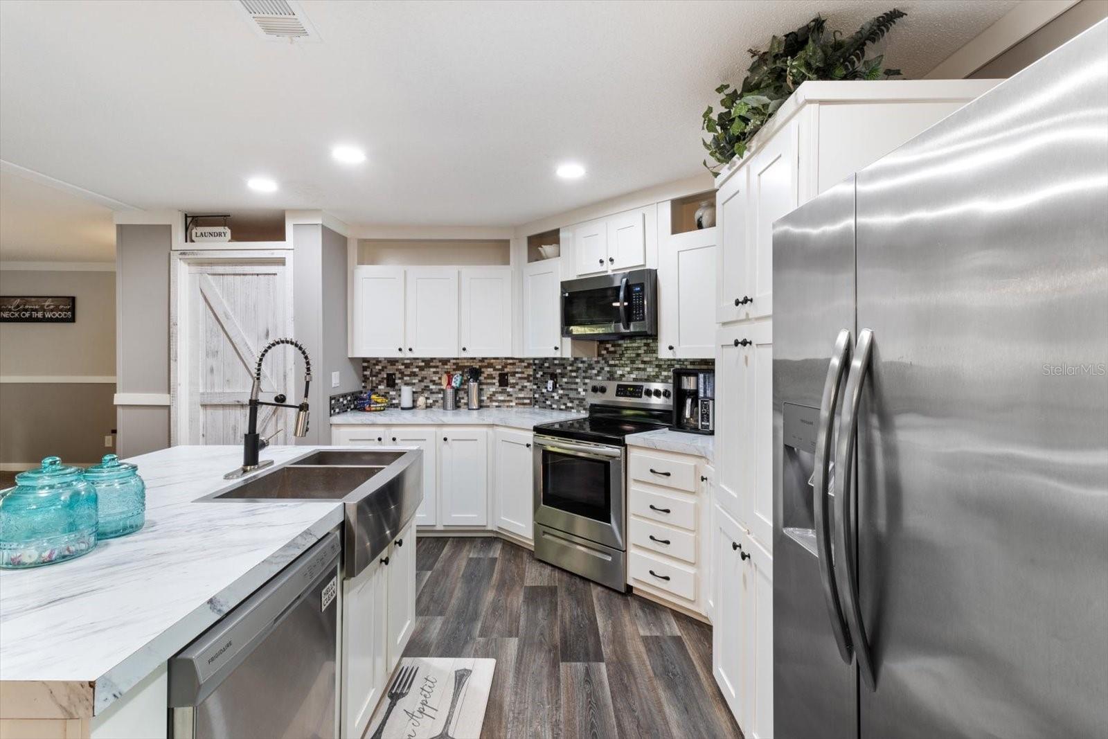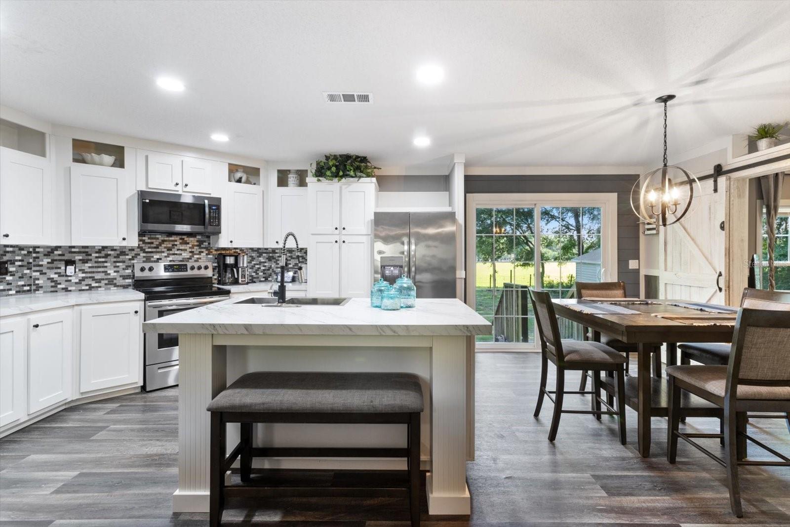 UM POUCO DE PAÍS!... Para a extraordinária casa de fazenda moderna, esta nova casa fabricada em 2022 Live Oak Big Horn fica em 0,52 acres de SWEET Florida e tem um incrivelmente espaçoso 4BD/2BA, planta aberta de 2.040 pés quadrados com todos os sinos e assobios! Cada recurso de design incrível chama sua atenção assim que você entra. O bloco de cores com as paredes neutras em dois tons configuram o interior marcante, enquanto o trilho da cadeira e a moldura do teto adicionam um toque agradável. A planta baixa flui bem, já que a sala de estar com lareira elétrica e bordadura shiplap proporcionam uma recepção calorosa. Em seguida, vá para a cozinha, que possui armários shaker brancos com bancadas em mármore de Calcutá, backsplash em mosaico de vidro, eletrodomésticos de aço inoxidável, uma pia atemporal de casa de fazenda e uma ilha com balcão para café da manhã. A área de jantar oferece amplo espaço e possui lambris e um controle deslizante com vista para o quintal. À medida que você se aproxima da sala de família, as portas duplas do celeiro e a abertura do “objetivo de campo” acima realmente fazem uma declaração. Sem dúvida, o quarto principal realmente traz isso para casa, ostentando um closet de 14'x4' e um banheiro privativo de morrer. O banheiro privativo possui paredes com detalhes em shiplap, pias duplas, banheira de imersão com degrau de pedra e chuveiro separado com grade preta, porta de box de vidro, contorno de azulejos e borda de destaque. As janelas de painel duplo e a lavanderia separada são uma vantagem. O exterior da casa é uma paleta limpa e aguarda os retoques finais. Existem cerca de 14 acres de pastagens de propriedade privada adjacentes à parte traseira da propriedade para desfrutar de uma bela vista panorâmica. NÃO HOA! SEM ZONA DE INUNDAÇÃO! Localizado nos arredores da Floresta Estadual de Withlacoochee; fica a menos de 10 minutos de TRILHAS CÊNICAS INFINITAS para caminhadas, ciclismo e passeios a cavalo, da Área Recreativa de Tillis Hill e do Acampamento Equestre, da caça sazonal na maior parte da floresta e da pesca em muitos dos lagos e cursos de água. Há algo para todos! UMA GARANTIA DE CASA GRATUITA DE 1 ANO PARA TRANQUILIDADE É OFERECIDA AO FUTURO COMPRADOR!