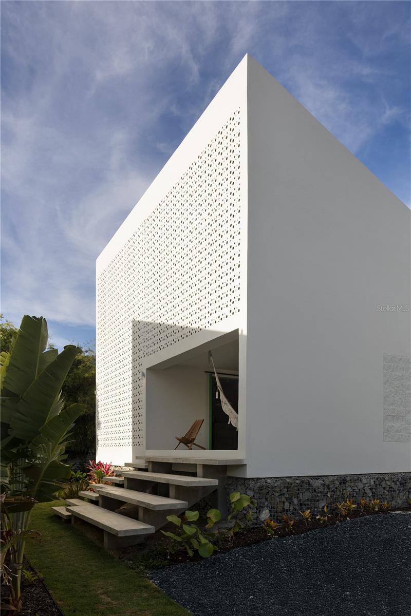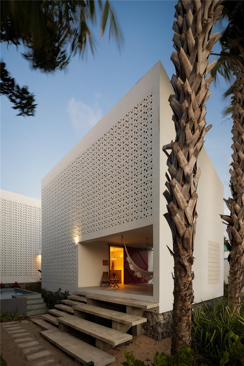 A Casa Bajura é um complexo arquitetônico de 2.700 pés quadrados composto por duas vilas independentes, mas idênticas, cada uma com três quartos e banheiros privativos, localizada em Isabela, Porto Rico, em uma rua local tranquila e sem saída com acesso direto à praia. O projeto é concebido como um espaço de hospitalidade criativa, onde a arquitetura, a paisagem e a vida cotidiana coexistem em constante diálogo. Para quem aprecia a arquitetura e o design como forma de vida, a Casa Bajura é uma propriedade verdadeiramente especial. É uma peça arquitetônica singular, pensada para ser habitada e compartilhada, transcendendo a definição de residência convencional. As duas moradias espelham-se em design, proporção e lógica espacial, reforçando a clareza visual e permitindo flexibilidade de utilização. A sua relação é articulada através de circulação partilhada, caminhos paisagísticos e espaços exteriores que criam um ambiente de vida coeso mas adaptável, equilibrando a privacidade com a experiência colectiva. Definida por volumes puros, superfícies brancas e o uso proeminente de blocos de ventilação, a arquitetura estabelece uma forte identidade visual, ao mesmo tempo que permite ventilação cruzada permanente e filtra a luz do dia em padrões mutáveis. Luz, sombra, textura e ventilação natural são parte integrante do projeto, gerando uma conexão contínua entre espaços interiores e exteriores através de corredores abertos, pátios intermediários, varandas generosas e áreas de pé direito duplo. Cada moradia está organizada em dois níveis com um layout claro e equilibrado projetado para maximizar a versatilidade, fluidez espacial e capacidade de resposta ambiental. O acesso faz-se através de um terraço ou varanda coberta que funciona como limiar de transição entre o exterior e o interior, introduzindo de imediato a experiência central da casa: luz filtrada, sombra, ventilação cruzada e uma ligação constante à envolvente tropical. No primeiro nível, uma cozinha integrada forma o coração social da vila, fluindo perfeitamente para uma área multifuncional flexível que pode funcionar como um quarto adicional, sala de família, estúdio ou espaço de convivência compartilhado. Esta área inclui uma casa de banho privativa completa, permitindo-lhe funcionar como uma suite independente quando necessário, enquanto portas do chão ao teto abrem lateralmente para dissolver limites, melhorando a luz natural, a ventilação e a continuidade espacial. O segundo nível acomoda dois quartos adicionais por villa, cada um com seu próprio banheiro privativo. Cada quarto incorpora um espaço adjacente definido por portas dobráveis de vidro do chão ao teto, que podem ser totalmente abertas ou fechadas conforme desejado, funcionando como uma extensão natural da sala para trabalho concentrado, leitura, atividade criativa ou contemplação silenciosa. A paisagem funciona como um componente arquitetônico essencial, com espécies nativas e adaptadas utilizadas para orientar a circulação, criar microclimas e atrair biodiversidade. Uma piscina reflexiva central conecta as duas vilas, melhorando a luz, as vistas e a continuidade espacial. Cada elemento da Casa Bajura, desde os blocos de brisa até móveis e obras de arte com curadoria, reforça sua coerência arquitetônica e estética costeira modernista. Atualmente operando como um Bed & Breakfast boutique com incentivos fiscais de turismo, a propriedade também suporta o uso como residência de praia compartilhada, complexo costeiro privado ou estilo de vida híbrido de morar e alugar, tornando a Casa Bajura um exemplo versátil e específico de arquitetura tropical contemporânea com valor duradouro.