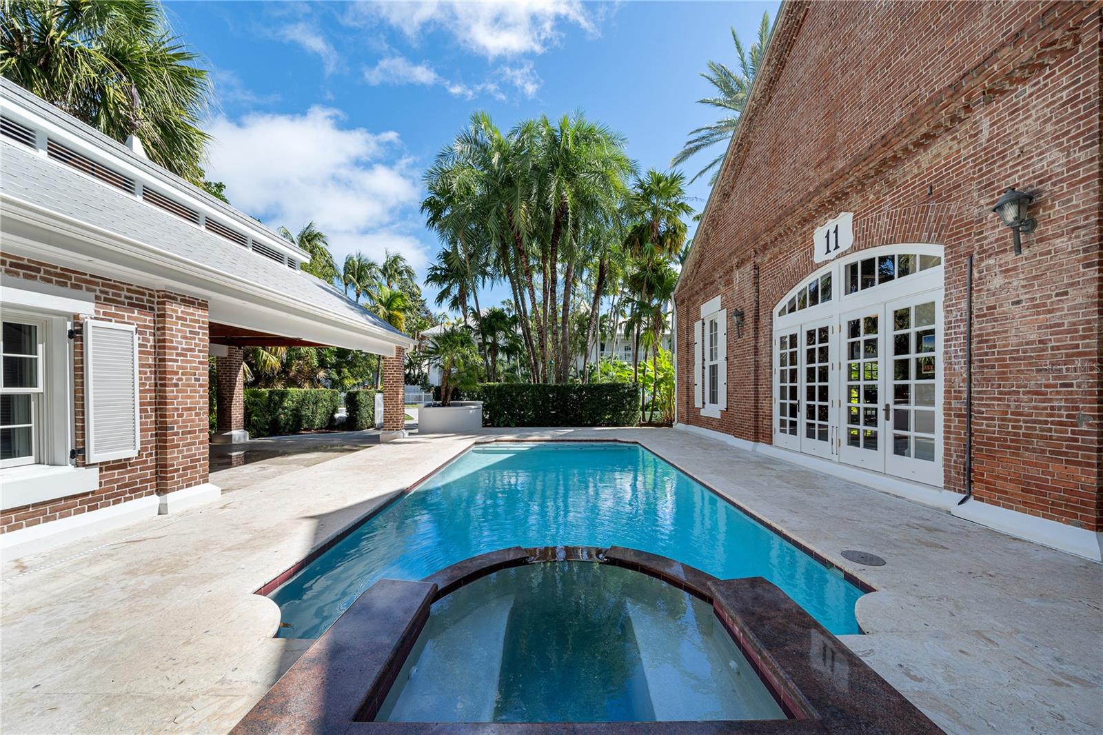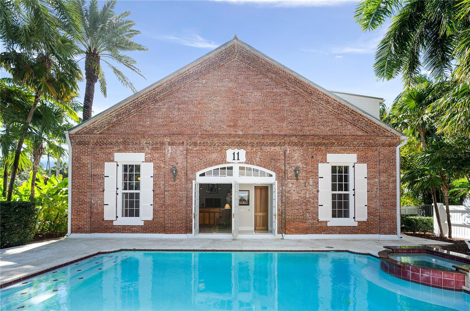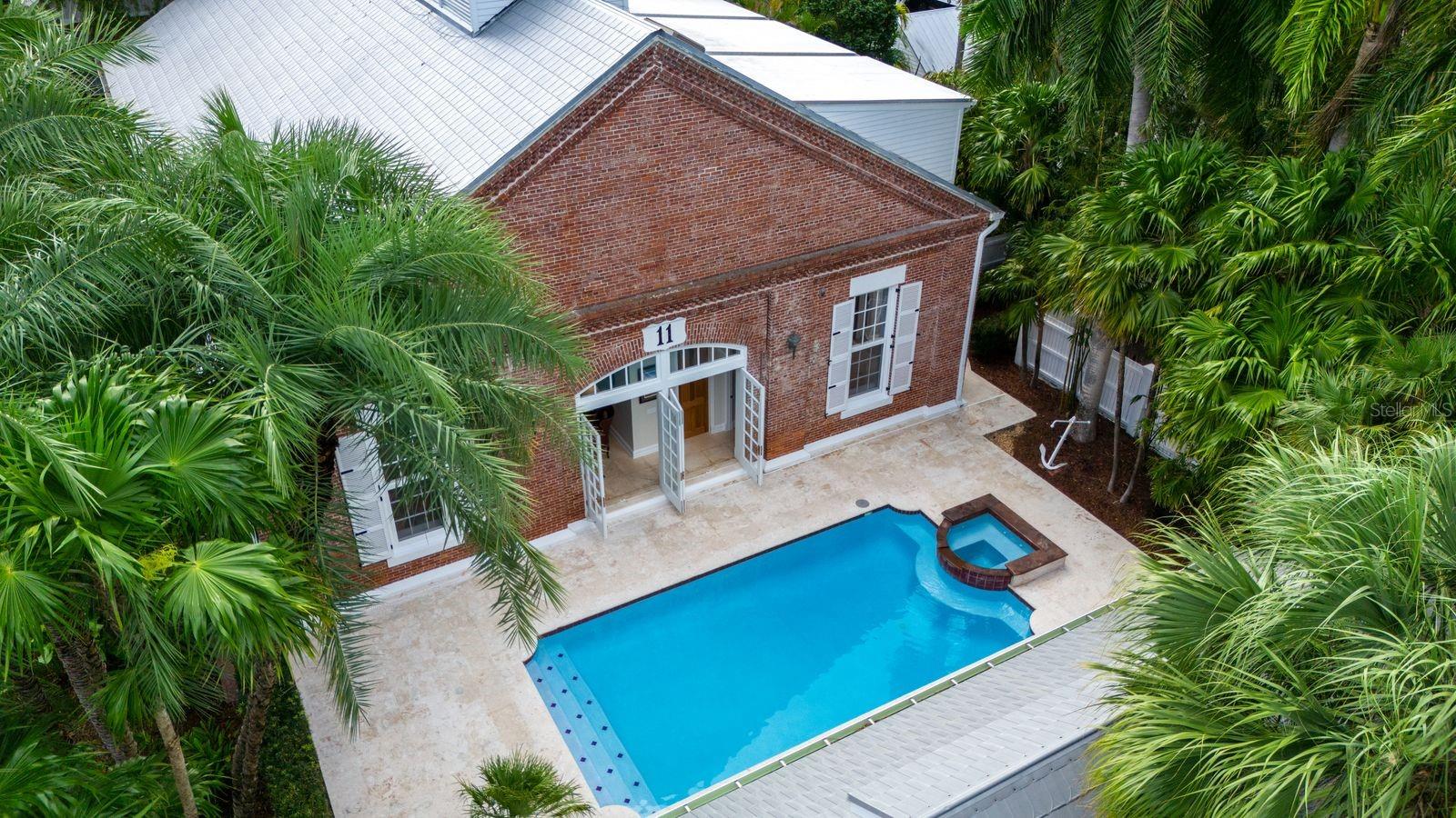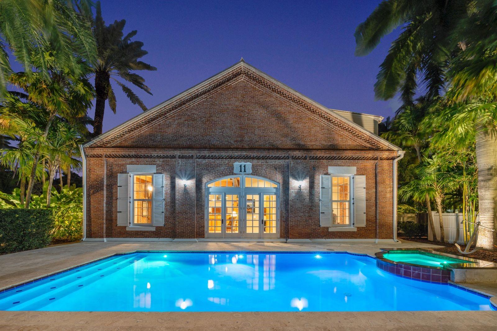 Esta propriedade distinta, erguida em 1904, orgulhosamente se destaca como o venerado marco histórico conhecido como Edifício 11, 'The Smithery', dentro dos estimados limites do Anexo Truman - um condomínio fechado exclusivo que anteriormente fazia parte da Estação Naval dos Estados Unidos, Key West. Esta oferta excepcional resume a restauração especializada, ostentando tetos elevados, majestosas paredes externas de tijolos de 22' e imponentes vigas de madeira que combinam perfeitamente o fascínio histórico com a elegância contemporânea em um terreno amplo e idílico. Um quinteto de majestosas portas francesas em arco adorna a fachada, atraindo vistas do verdejante ambiente tropical. O nível térreo se desdobra com amplos pisos de travertino adornados com acessórios artesanais, abrigando uma graciosa sala com um bar personalizado, uma cozinha gourmet, uma elegante área de jantar e espaço de estar adicional. Situada neste nível, uma suíte de hóspedes se estende perfeitamente até o convidativo retiro à beira da piscina, agraciado com uma cascata e um tranquilo deck de pedra. Subir ao nível superior revela um reino encantador, onde as suítes principal e de hóspedes são interligadas por uma ponte de galeria cativante, cada uma envolta em comodidades luxuosas e adornadas com embutidos personalizados, suntuosos pisos de madeira e luminárias requintadas. Banheiros luxuosos, com atualizações opulentas, adornam ambas as alas, garantindo conforto e requinte incomparáveis. Requintadamente mantida, esta residência atraiu a admiração de alguns poucos selecionados, e seu brilho arquitetônico é apreciado por aqueles que tiveram a sorte de experimentar seu esplendor. A ampla garagem, um enclave de armazenamento recém-formado que ecoa o charme arquitetônico original, aumenta ainda mais o fascínio deste tesouro escondido. Situada entre vizinhos ilustres, incluindo a 'Pequena Casa Branca de Truman', esta joia simboliza um dos endereços mais cobiçados de Florida Keys, oferecendo um estilo de vida de sofisticação e fascínio incomparáveis.