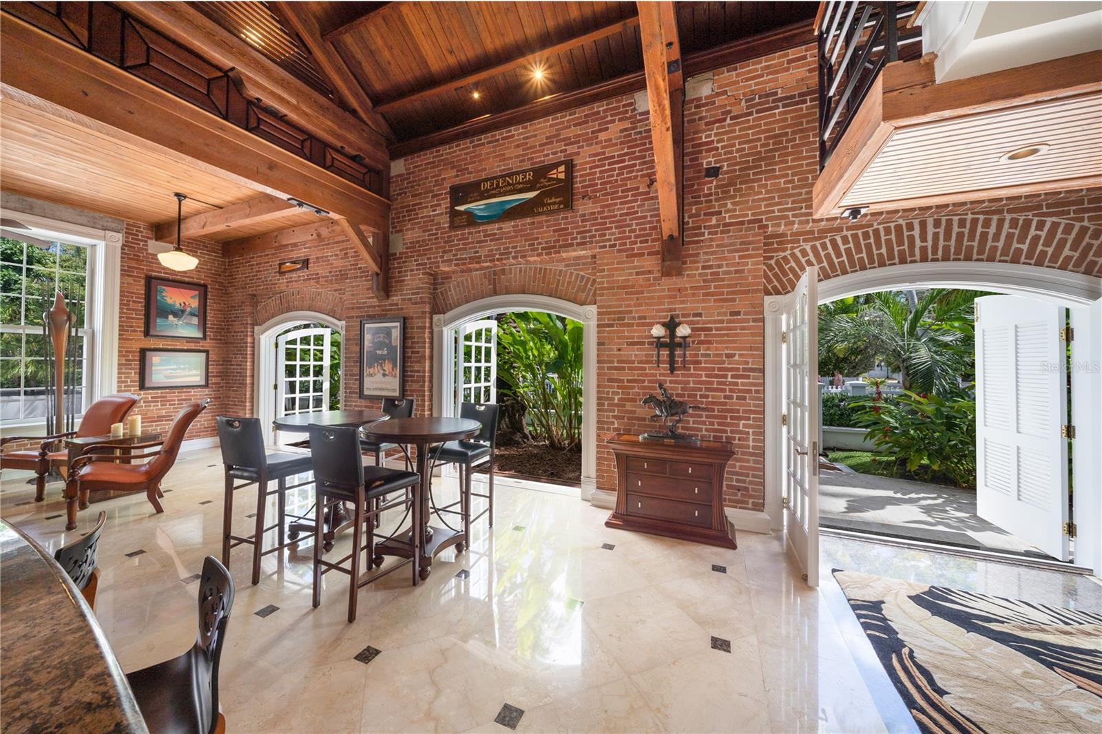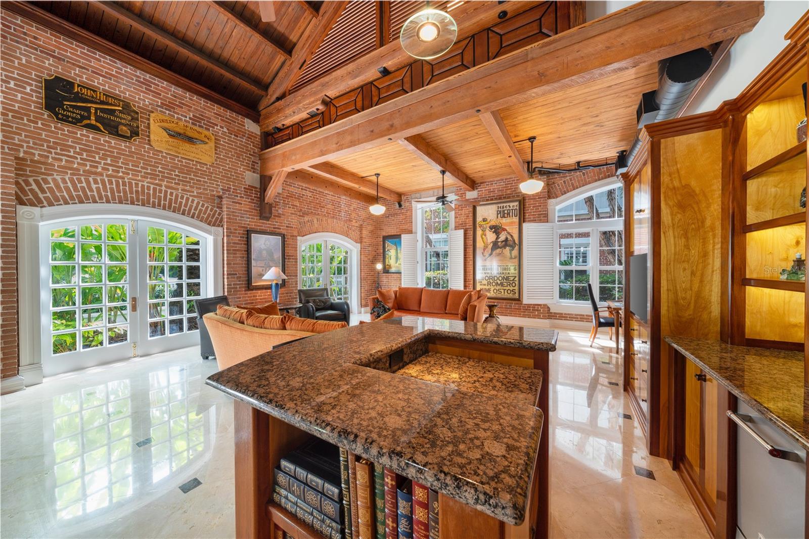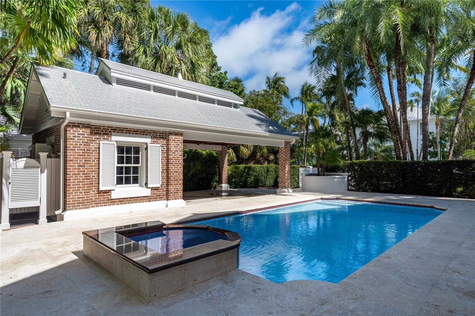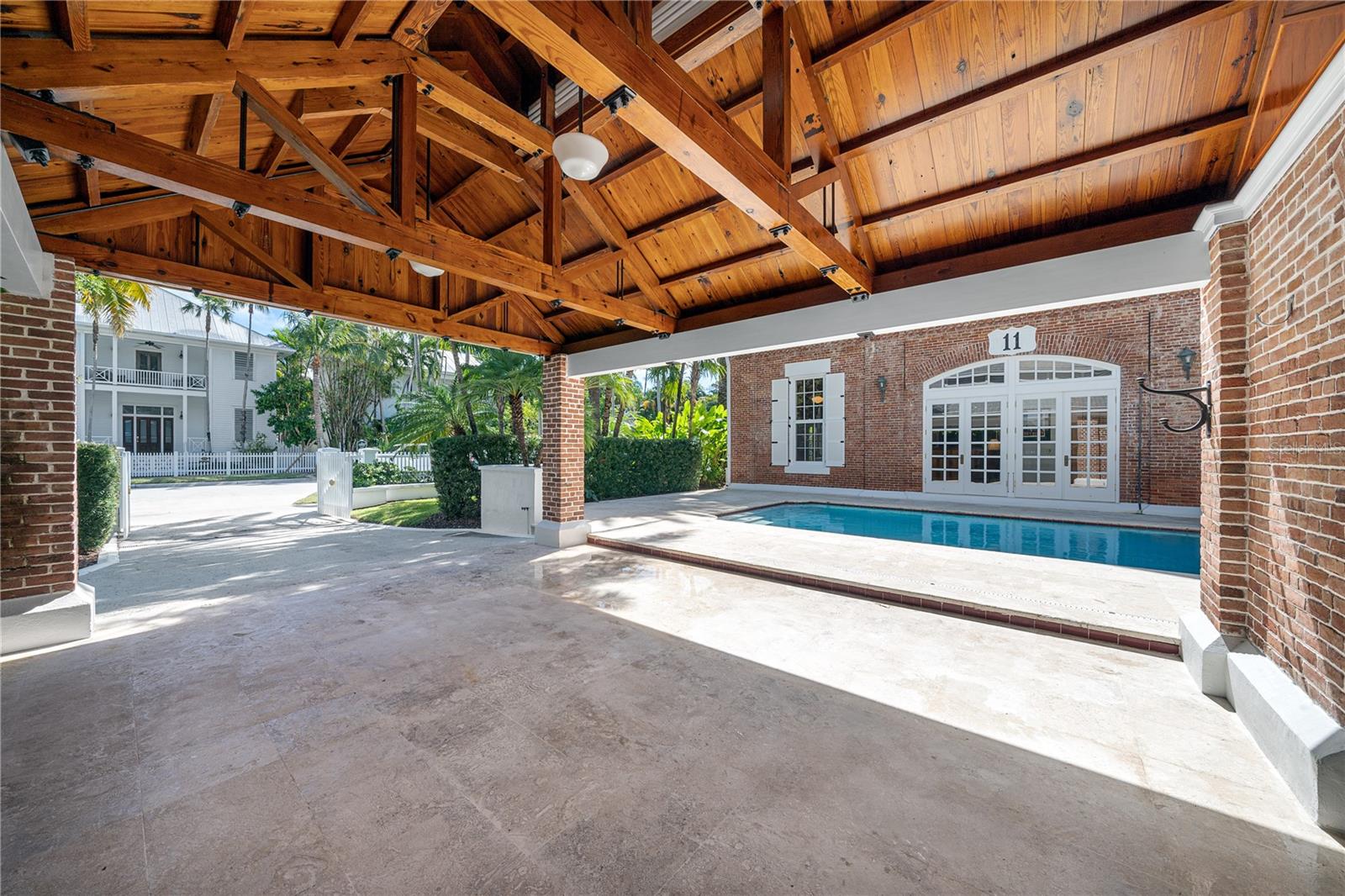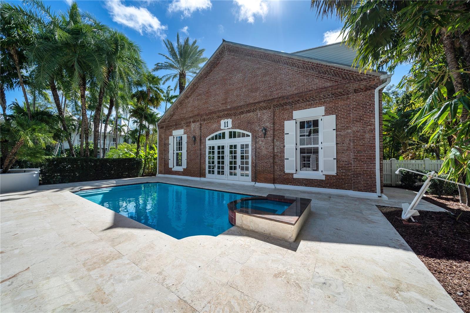 Esta propriedade distinta, erguida em 1904, orgulhosamente se destaca como o venerado marco histórico conhecido como Edifício 11, 'The Smithery', dentro dos estimados limites do Anexo Truman - um condomínio fechado exclusivo que anteriormente fazia parte da Estação Naval dos Estados Unidos, Key West. Esta oferta excepcional resume a restauração especializada, ostentando tetos elevados, majestosas paredes externas de tijolos de 22' e imponentes vigas de madeira que combinam perfeitamente o fascínio histórico com a elegância contemporânea em um terreno amplo e idílico. Um quinteto de majestosas portas francesas em arco adorna a fachada, atraindo vistas do verdejante ambiente tropical. O nível térreo se desdobra com amplos pisos de travertino adornados com acessórios artesanais, abrigando uma graciosa sala com um bar personalizado, uma cozinha gourmet, uma elegante área de jantar e espaço de estar adicional. Situada neste nível, uma suíte de hóspedes se estende perfeitamente até o convidativo retiro à beira da piscina, agraciado com uma cascata e um tranquilo deck de pedra. Subir ao nível superior revela um reino encantador, onde as suítes principal e de hóspedes são interligadas por uma ponte de galeria cativante, cada uma envolta em comodidades luxuosas e adornadas com embutidos personalizados, suntuosos pisos de madeira e luminárias requintadas. Banheiros luxuosos, com atualizações opulentas, adornam ambas as alas, garantindo conforto e requinte incomparáveis. Requintadamente mantida, esta residência atraiu a admiração de alguns poucos selecionados, e seu brilho arquitetônico é apreciado por aqueles que tiveram a sorte de experimentar seu esplendor. A ampla garagem, um enclave de armazenamento recém-formado que ecoa o charme arquitetônico original, aumenta ainda mais o fascínio deste tesouro escondido. Situada entre vizinhos ilustres, incluindo a 'Pequena Casa Branca de Truman', esta joia simboliza um dos endereços mais cobiçados de Florida Keys, oferecendo um estilo de vida de sofisticação e fascínio incomparáveis.