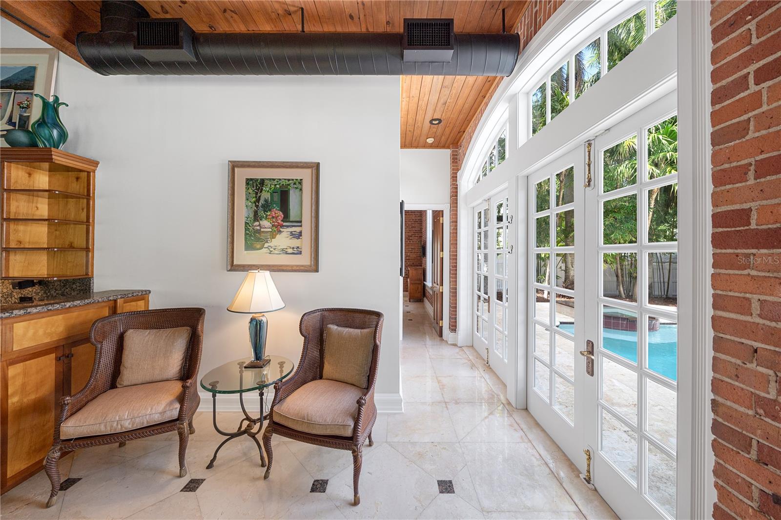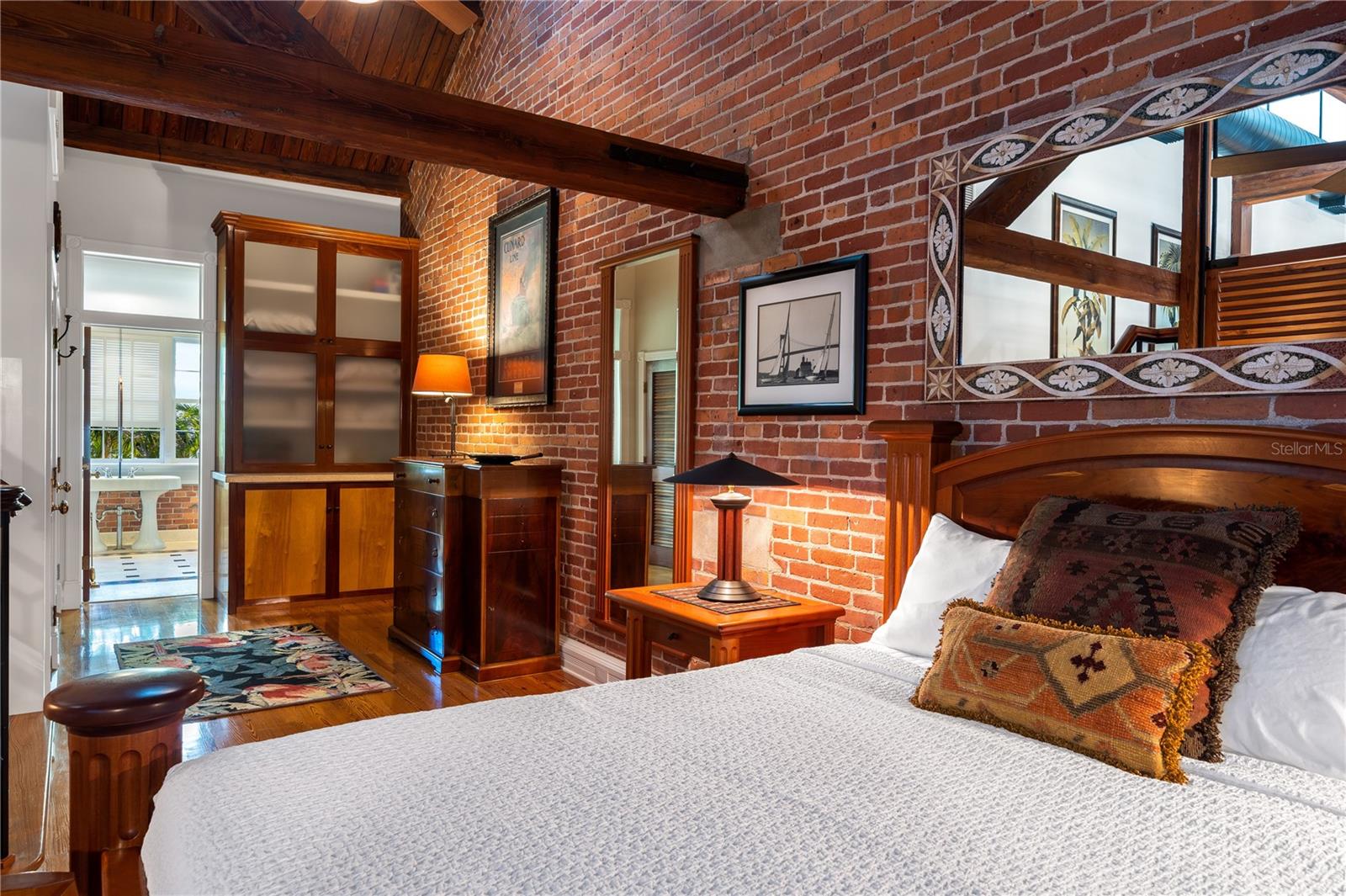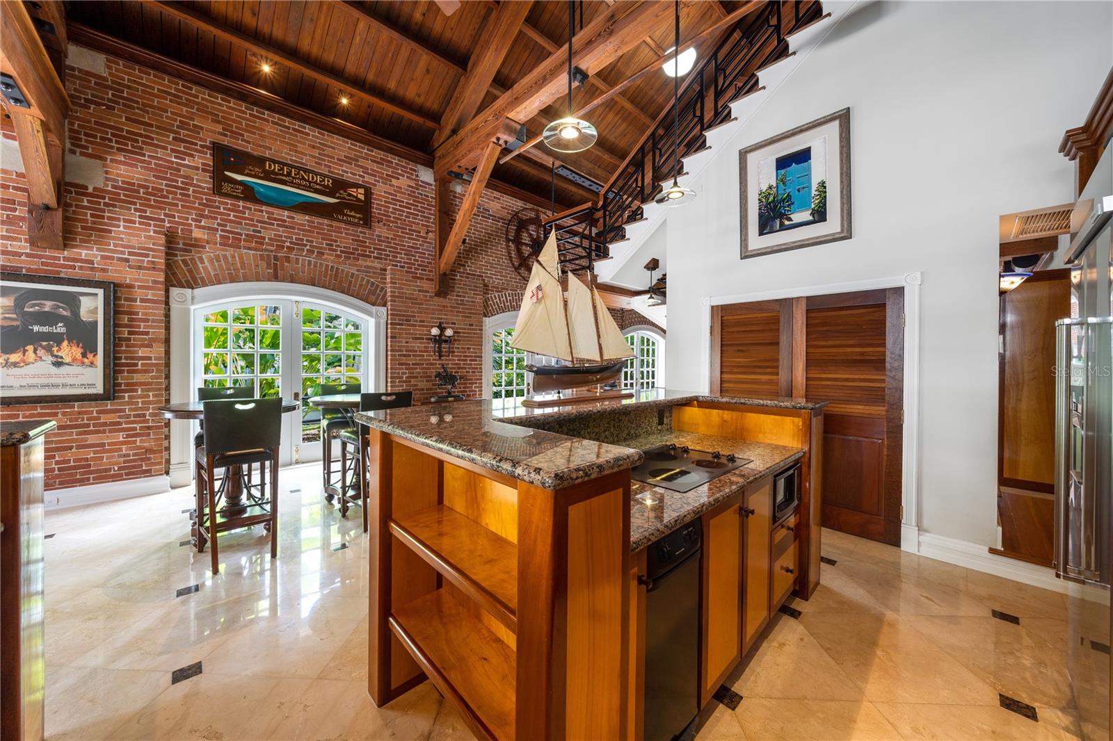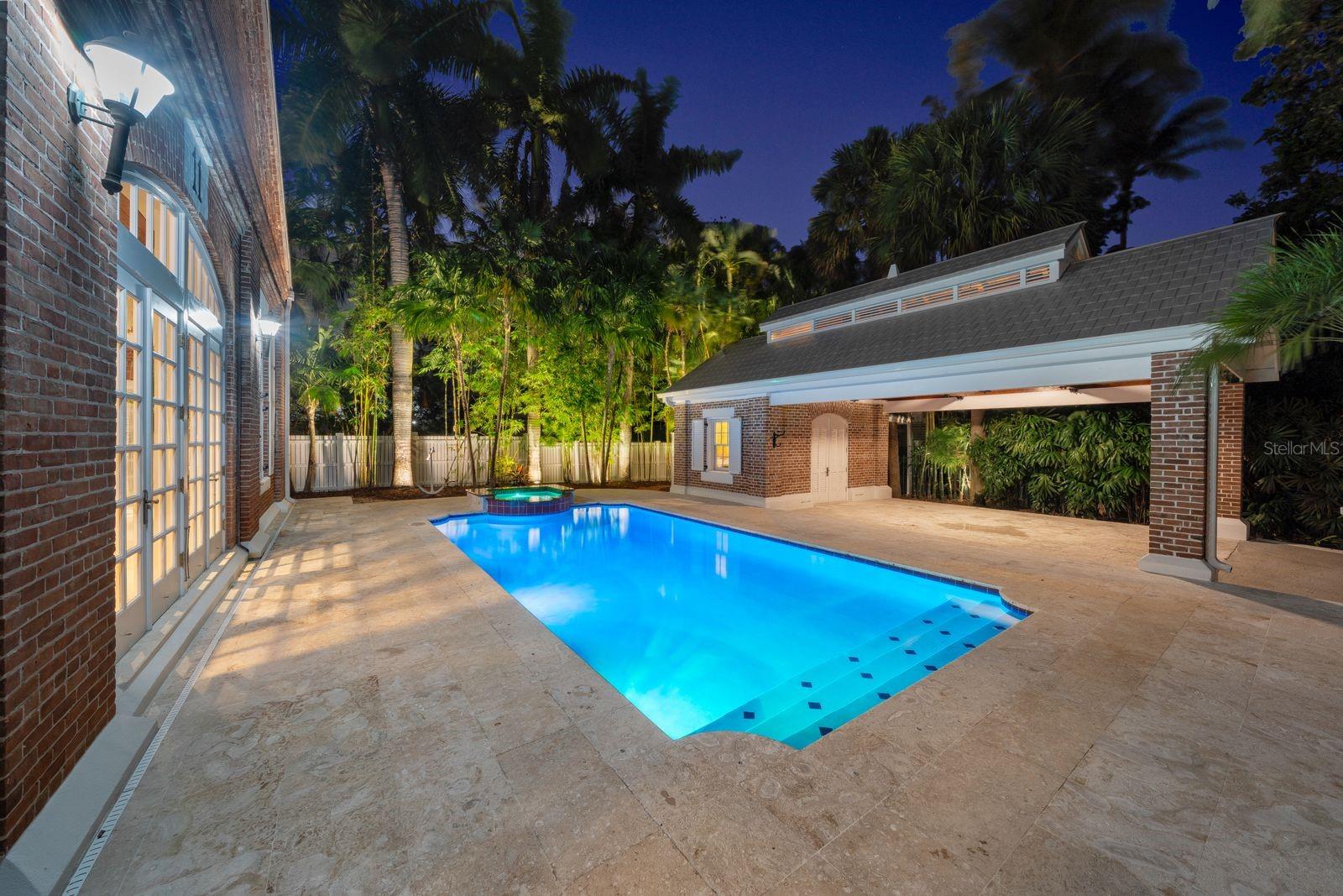 Esta propriedade distinta, erguida em 1904, orgulhosamente se destaca como o venerado marco histórico conhecido como Edifício 11, 'The Smithery', dentro dos estimados limites do Anexo Truman - um condomínio fechado exclusivo que anteriormente fazia parte da Estação Naval dos Estados Unidos, Key West. Esta oferta excepcional resume a restauração especializada, ostentando tetos elevados, majestosas paredes externas de tijolos de 22' e imponentes vigas de madeira que combinam perfeitamente o fascínio histórico com a elegância contemporânea em um terreno amplo e idílico. Um quinteto de majestosas portas francesas em arco adorna a fachada, atraindo vistas do verdejante ambiente tropical. O nível térreo se desdobra com amplos pisos de travertino adornados com acessórios artesanais, abrigando uma graciosa sala com um bar personalizado, uma cozinha gourmet, uma elegante área de jantar e espaço de estar adicional. Situada neste nível, uma suíte de hóspedes se estende perfeitamente até o convidativo retiro à beira da piscina, agraciado com uma cascata e um tranquilo deck de pedra. Subir ao nível superior revela um reino encantador, onde as suítes principal e de hóspedes são interligadas por uma ponte de galeria cativante, cada uma envolta em comodidades luxuosas e adornadas com embutidos personalizados, suntuosos pisos de madeira e luminárias requintadas. Banheiros luxuosos, com atualizações opulentas, adornam ambas as alas, garantindo conforto e requinte incomparáveis. Requintadamente mantida, esta residência atraiu a admiração de alguns poucos selecionados, e seu brilho arquitetônico é apreciado por aqueles que tiveram a sorte de experimentar seu esplendor. A ampla garagem, um enclave de armazenamento recém-formado que ecoa o charme arquitetônico original, aumenta ainda mais o fascínio deste tesouro escondido. Situada entre vizinhos ilustres, incluindo a 'Pequena Casa Branca de Truman', esta joia simboliza um dos endereços mais cobiçados de Florida Keys, oferecendo um estilo de vida de sofisticação e fascínio incomparáveis.