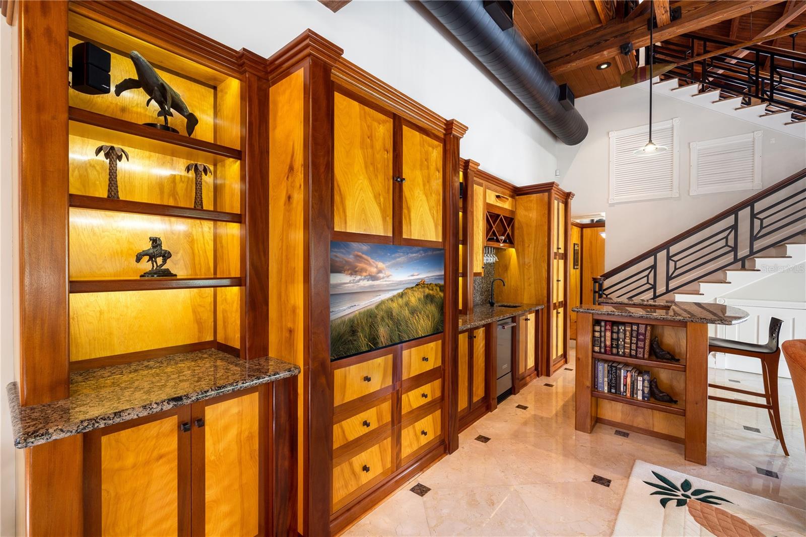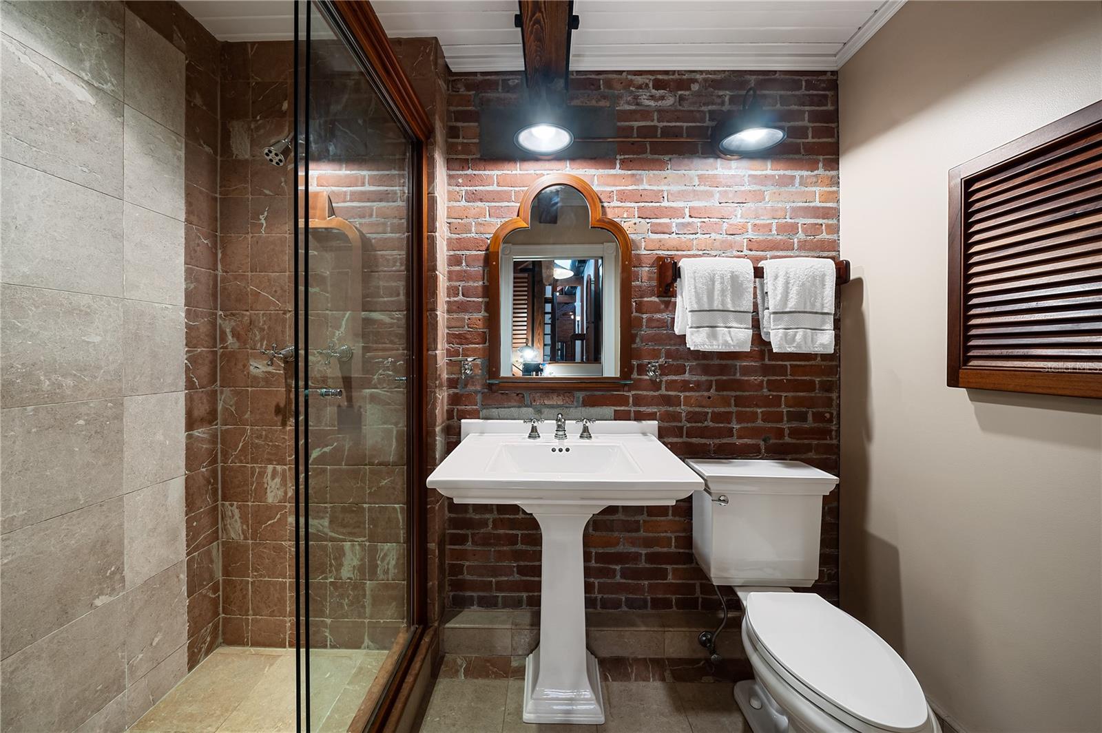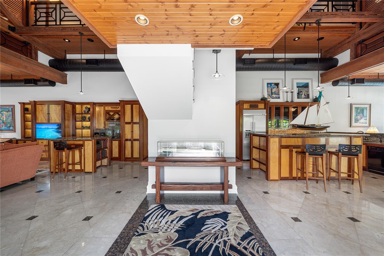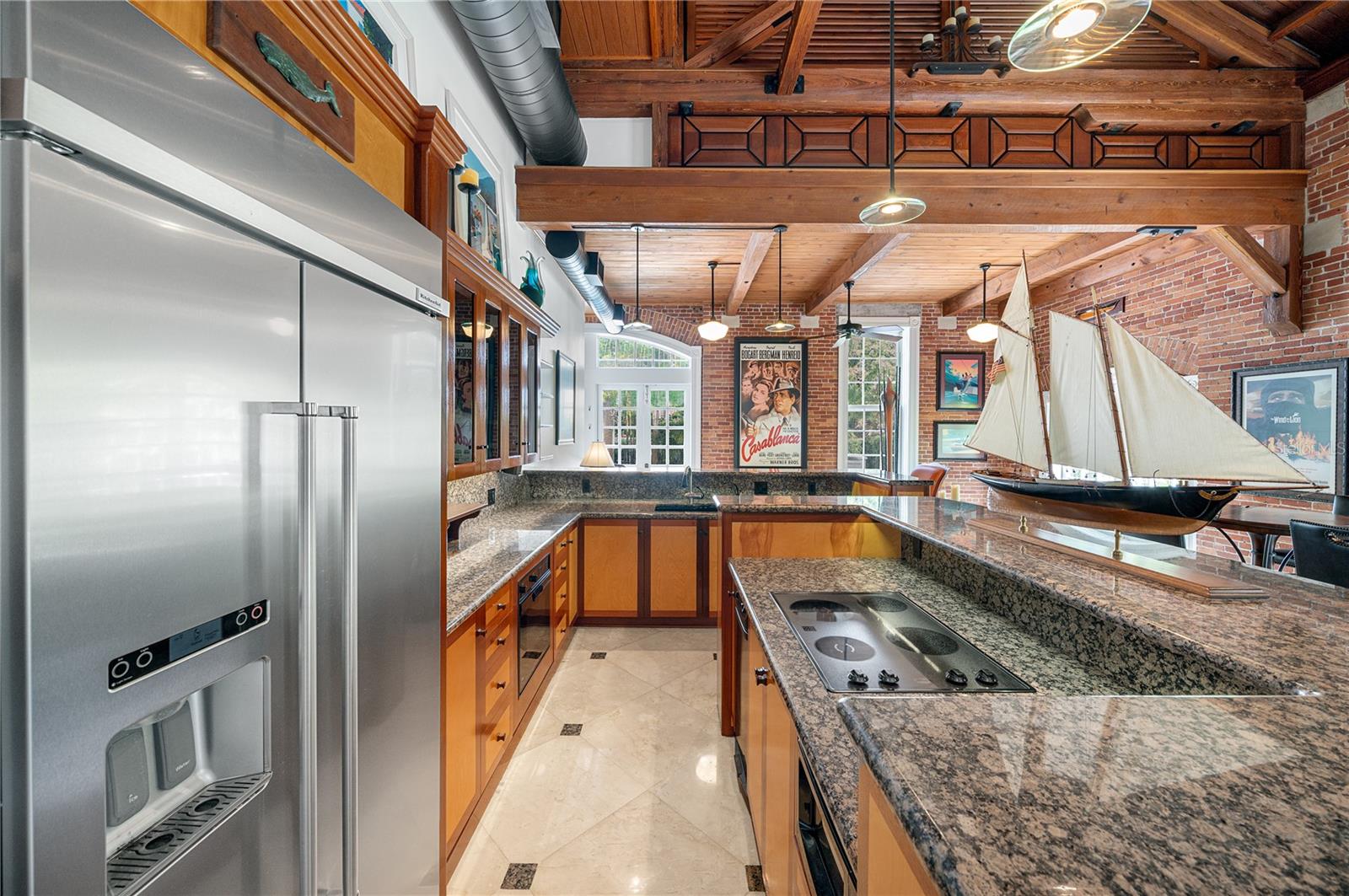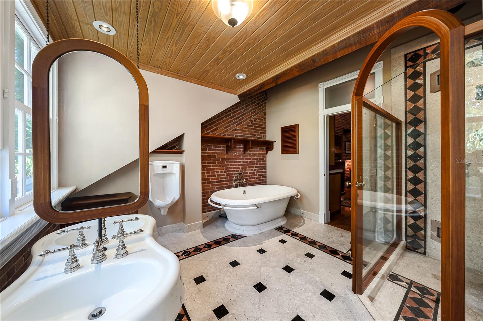 Esta propriedade distinta, erguida em 1904, orgulhosamente se destaca como o venerado marco histórico conhecido como Edifício 11, 'The Smithery', dentro dos estimados limites do Anexo Truman - um condomínio fechado exclusivo que anteriormente fazia parte da Estação Naval dos Estados Unidos, Key West. Esta oferta excepcional resume a restauração especializada, ostentando tetos elevados, majestosas paredes externas de tijolos de 22' e imponentes vigas de madeira que combinam perfeitamente o fascínio histórico com a elegância contemporânea em um terreno amplo e idílico. Um quinteto de majestosas portas francesas em arco adorna a fachada, atraindo vistas do verdejante ambiente tropical. O nível térreo se desdobra com amplos pisos de travertino adornados com acessórios artesanais, abrigando uma graciosa sala com um bar personalizado, uma cozinha gourmet, uma elegante área de jantar e espaço de estar adicional. Situada neste nível, uma suíte de hóspedes se estende perfeitamente até o convidativo retiro à beira da piscina, agraciado com uma cascata e um tranquilo deck de pedra. Subir ao nível superior revela um reino encantador, onde as suítes principal e de hóspedes são interligadas por uma ponte de galeria cativante, cada uma envolta em comodidades luxuosas e adornadas com embutidos personalizados, suntuosos pisos de madeira e luminárias requintadas. Banheiros luxuosos, com atualizações opulentas, adornam ambas as alas, garantindo conforto e requinte incomparáveis. Requintadamente mantida, esta residência atraiu a admiração de alguns poucos selecionados, e seu brilho arquitetônico é apreciado por aqueles que tiveram a sorte de experimentar seu esplendor. A ampla garagem, um enclave de armazenamento recém-formado que ecoa o charme arquitetônico original, aumenta ainda mais o fascínio deste tesouro escondido. Situada entre vizinhos ilustres, incluindo a 'Pequena Casa Branca de Truman', esta joia simboliza um dos endereços mais cobiçados de Florida Keys, oferecendo um estilo de vida de sofisticação e fascínio incomparáveis.