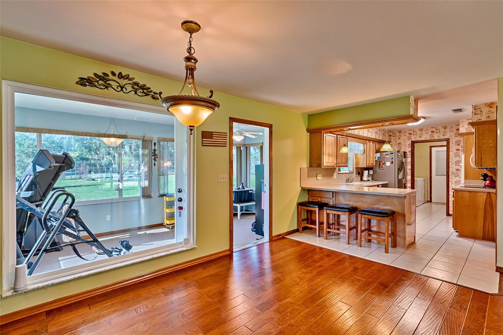 Casa de tijolos bem conservada com 3 quartos e 2 banheiros oferece 1.831 pés quadrados em pouco mais de meio acre. A ampla sala recebe-o com uma janela saliente que preenche o espaço com luz natural. Uma espaçosa sala / escritório familiar 24 x 14 com armário próprio poderia facilmente servir como um terceiro quarto, com janela saliente e portas francesas de vidro. A área de jantar flui para uma sala de sol na Flórida com vista para o grande quintal cercado. A cozinha tem bancada em Corian, armários de bordo, balcão para café da manhã, despensa e dois fornos - um embutido mais o fogão. Os quartos principal e segundo têm closets. As atualizações incluem janelas mais novas, novo HVAC, novo telhado e encanamento atualizado realocado para o sótão. A ampla garagem anexa para dois carros oferece bancada de trabalho, armários e acesso à cozinha pela área de serviço com armários e pia. Desfrute de um quintal vedado com armazém. Convenientemente localizado nos arredores de Keystone Heights, perto do Mike Roess Gold Head Branch State Park, Keystone Beach & Geneva Jungle, Palatka – Lake Butler State Trail, Keystone Heights Airport e Florida International Rally & Motorsport Park. Apenas 30 milhas até Gainesville e 60 milhas até Jacksonville.