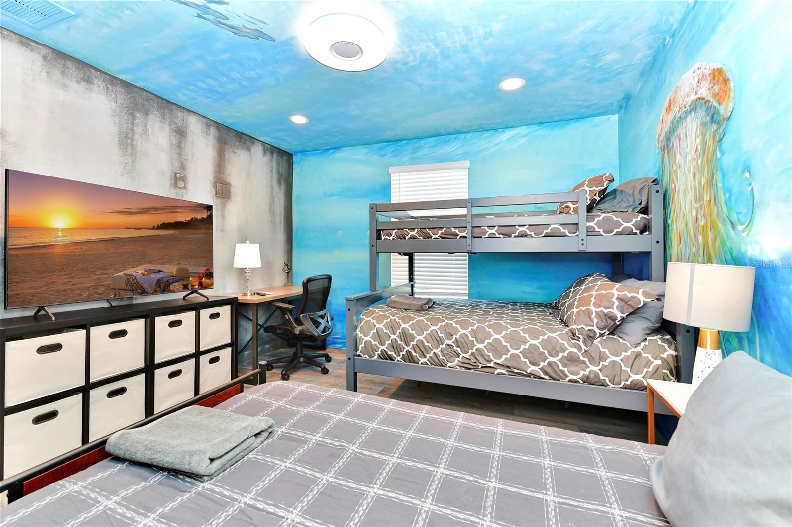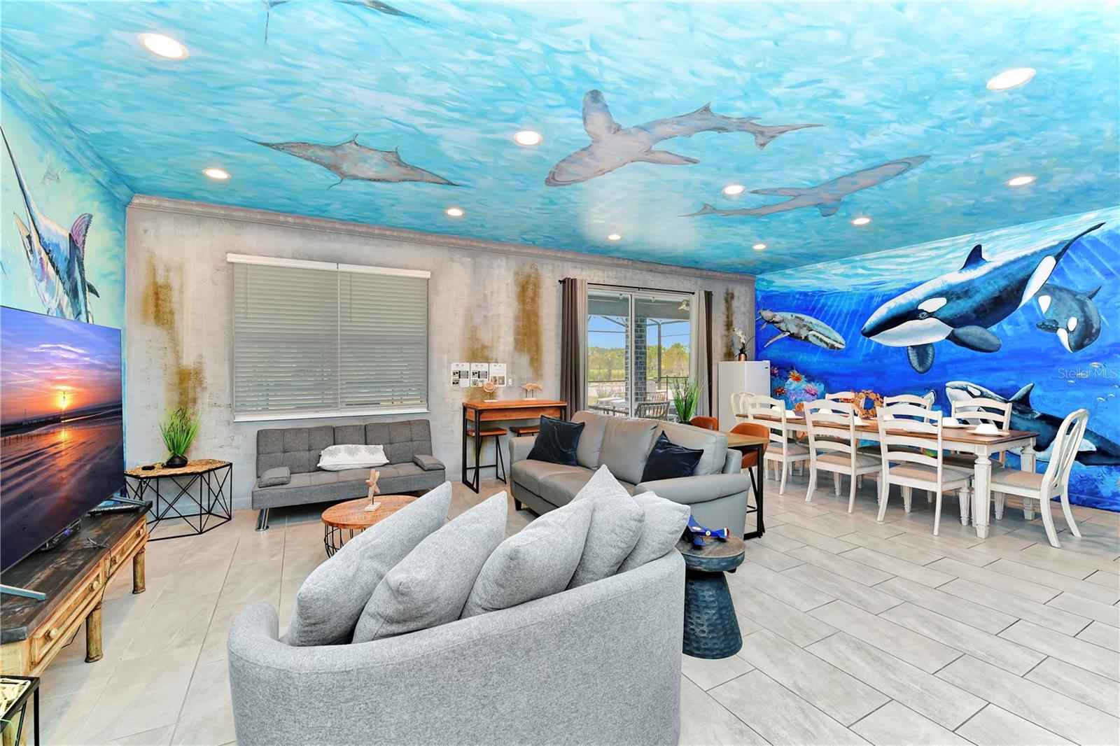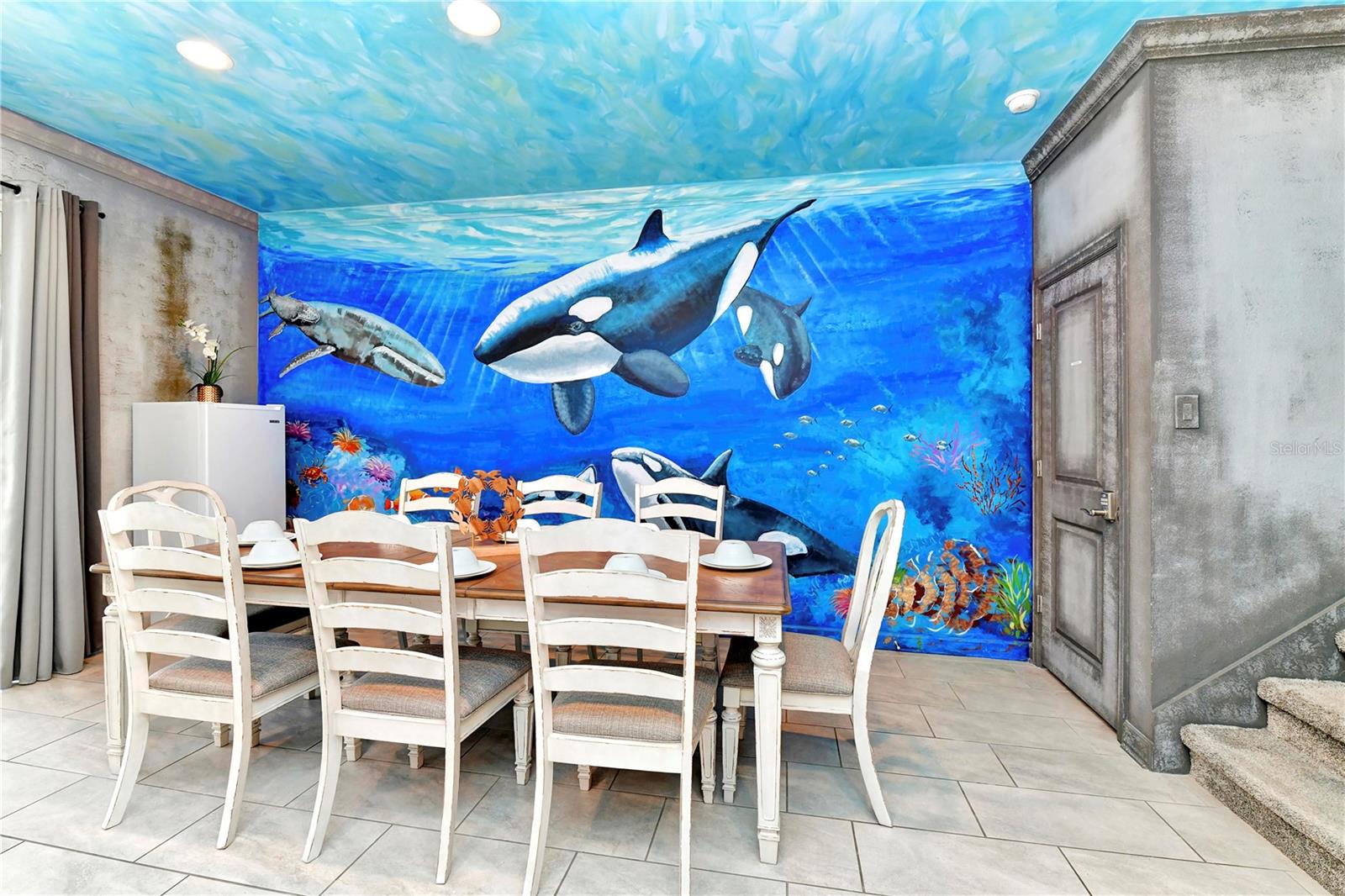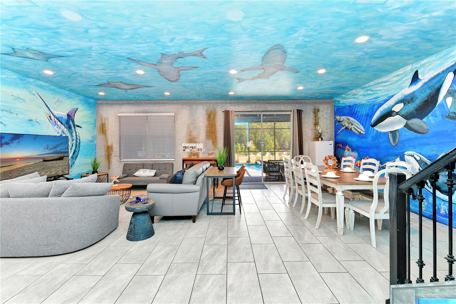 Esta é realmente uma casa de férias única, então não perca esta oportunidade! Esta bela casa de 9 quartos, 5 banheiros é uma obra de arte com o interior de toda a casa pintada por um artista profissional com um tema aquático. Localizado em Storey Lake, uma das comunidades de aluguel de férias mais populares da área central da Flórida nesta casa a apenas 2 minutos a pé do fabuloso clube e centro de amenidades e está sendo vendido totalmente mobiliado. Ele oferece um monte de espaço para entreter e possui uma planta de piso de conceito aberto, a cozinha possui bancadas de quartzo, armários de 42 ", belos utensílios de aço inoxidável e uma grande barra de café da manhã. Todos os banheiros têm painéis de chuveiro em cachoeira e espelhos iluminados. Grupos nunca ficarão sem água quente! Pool, um fliperama, centro de fitness, Business Center e até um teatro!