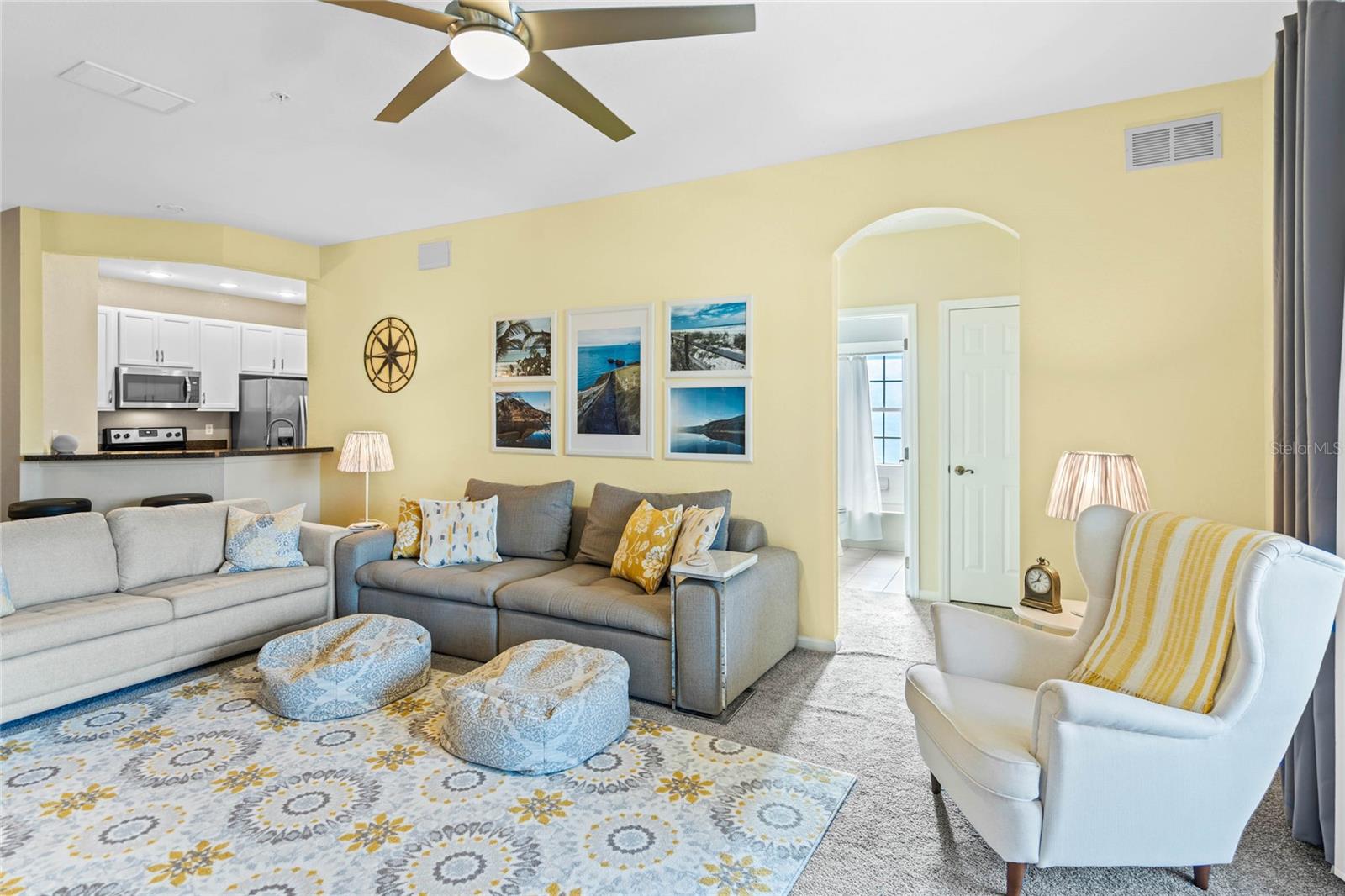 A oportunidade aguarda neste fabuloso 3 quartos 2 banheiros de 3º andar da unidade de canto em uma localização muito procurada! Imaculadamente mantido oferece uma bela cozinha com armários brancos pintados profissionalmente, hardware atualizado completo com utensílios de aço inoxidável. Com mais de 1700 pés quadrados, permitindo alguns espaços realmente confortáveis, incluindo uma enorme sala de família, sala de jantar separada, juntamente com os quartos divididos e até uma sala de bônus que pode ser usada como escritório, sala de treino ou até um quarto quarto de hóspedes. Os recursos adicionais incluem interior recém-pintado, tapete atualizado e até mesmo um sistema de filtraton de água + amaciador de água sem sal que vem com a casa. Relaxe no pátio fechado da tela e aproveite o café da manhã e a bebida da tarde de escolha. O 3º andar oferece privacidade adicional e cada edifício possui seu próprio elevador, portanto, não se preocupe com as escadas de subir. Todos os edifícios estão atualizando o exterior e serão todos recém -pintados e novos toldos instalados nos próximos meses, sem avaliação especial. A localização é inigualável, pois você está a uma curta distância de um Publix, juntamente com o distrito de entretenimento em Loop, cheio de restaurantes e lojas, juntamente com um cinema. Fácil acesso à Disney via Osceola Parkway, SR 417, e a rodovia da Flórida.