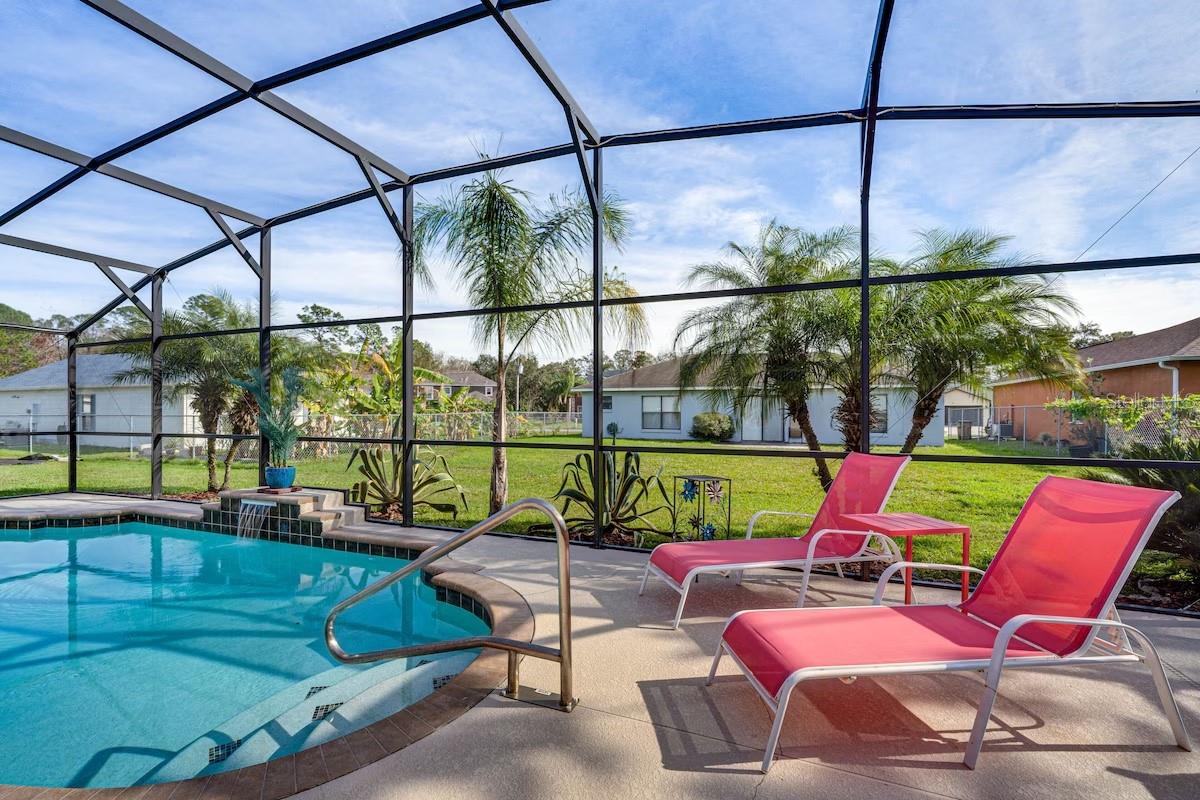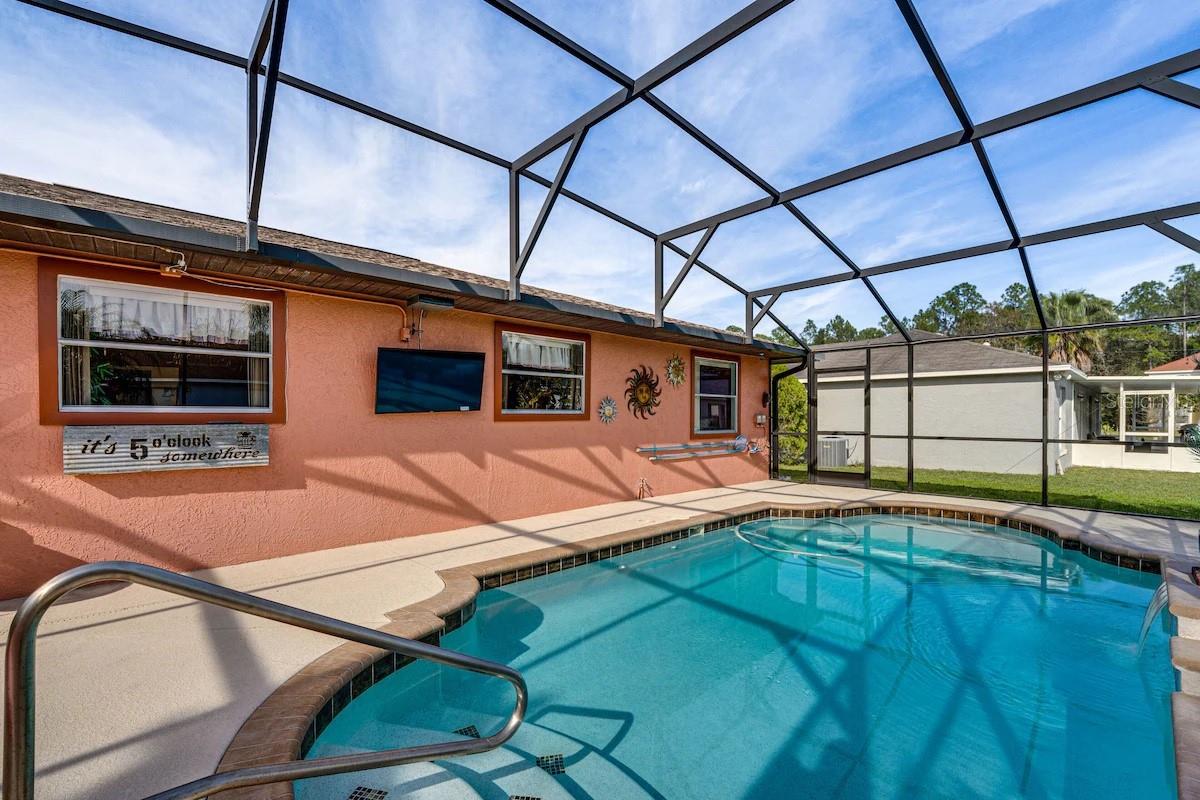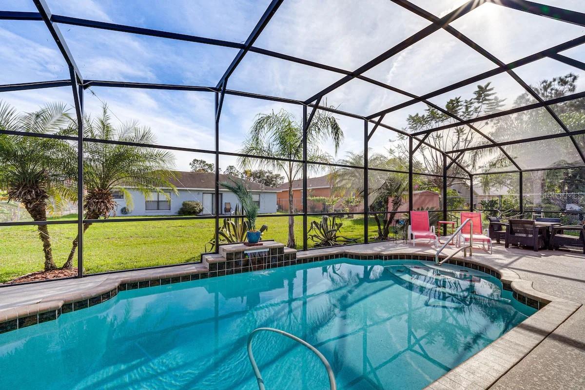Descubra esta incrível oportunidade de possuir uma casa de piscina totalmente mobiliada, com 3 quartos e 2 banheiros, na comunidade altamente procurada de Poinciana Village. Ao entrar, você será recebido por tetos abobadados e um layout aberto que cria uma atmosfera espaçosa e convidativa. A cozinha totalmente equipada possui utensílios de aço inoxidável, amplo gabinete e espaço no balcão, um recanto de café da manhã aconchegante e acesso conveniente na garagem. A cozinha tem vista para a espaçosa sala da família e garante um entretenimento contínuo com acesso de porta deslizante à piscina refrescante e exibida. O banheiro principal oferece uma barraca de chuveiro em azulejos, encerrada de vidro, pia com espaço de vaidade, um closet e acesso à porta deslizante à área de Lanai e da piscina fechada. Os quartos adicionais compartilham um banheiro de salão bem equipado. A piscina recém-adicionada, com apenas 7 anos, apresenta um gabinete completo e uma bomba de pool ECM de primeira linha. Esta casa está idealmente localizada perto de escolas, shopping centers, grandes estradas, a nova via expressa, Poinciana Medical Center, Valência College e muito mais. Não perca esta propriedade excepcional na vila de Poinciana!