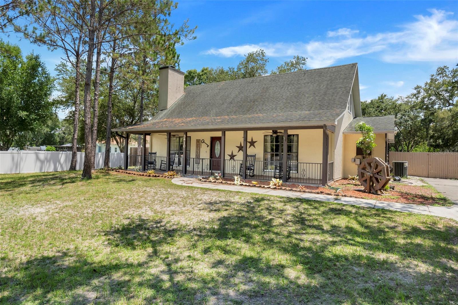 Procurando por morar no campo na cidade SEM HOA? É ISSO! Situada entre carvalhos maduros em um espaçoso lote fechado e de quase 1,25 ACRE, esta casa oferece um cenário ideal para viver. O amplo quarto principal no térreo dispõe de banheira de jardim e chuveiro separado, enquanto a sala de estar possui uma aconchegante lareira a lenha. Uma cozinha ampla com armários de PVC muito procurados (material de longa duração), sala de jantar e portas duplas de pátio leva a uma piscina aberta de água salgada e um pátio, complementado por uma varanda traseira coberta perfeita para entretenimento. A convidativa varanda frontal acomoda vários balanços, realçando seu charme. Convenientemente localizada perto de estabelecimentos comerciais, esta propriedade também inclui um quarto secundário no térreo, ideal para hóspedes ou sogros. Os destaques adicionais incluem uma conexão pronta para RV e uma oficina/garagem para dois carros, garantindo conforto e funcionalidade para vários estilos de vida. <iframe src="https://player.vimeo.com/video/968455851?byline=0&title=0&owner=0&name=0&logos=0&profile=0&profilepicture=0&vimeologo=0&portrait=0" width="640" height="360" frameborder ="0" permitir="reprodução automática; tela cheia" permitir tela cheia></iframe>