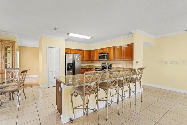 O preço melhorou! Descubra a casa dos seus sonhos em Poinciana com esta requintada residência de 5 quartos e 3 banheiros, cheia de atualizações e pronta para você se mudar! A entrada apresenta uma porta de tempestade e uma campainha para maior segurança. No interior, aproveite a elegância de pisos de madeira na sala de estar, na sala de jantar e em todos os quartos no andar de cima. A espaçosa planta aberta inclui uma área de estar aconchegante, uma sala de jantar formal e uma grande sala de família/TV que se abre para uma varanda fechada com vistas deslumbrantes da piscina. A cozinha gourmet é uma delícia de chef, oferecendo armários amplos, bancadas em granito, um recanto encantador e utensílios de aço inoxidável. O amplo quarto principal possui dois armários e um luxuoso banheiro privativo com pias duplas, bancadas em granito, uma banheira de jacuzzi e um chuveiro separado. Destaques adicionais incluem um levantamento de escada por conveniência, uma garagem em azulejo com espaço de armazenamento extra, um telhado de 4 anos, um galpão de armazenamento e árvores frutíferas tropicais exuberantes. Esta oportunidade incrível não vai durar muito! Entre em contato conosco hoje para agendar sua visualização.