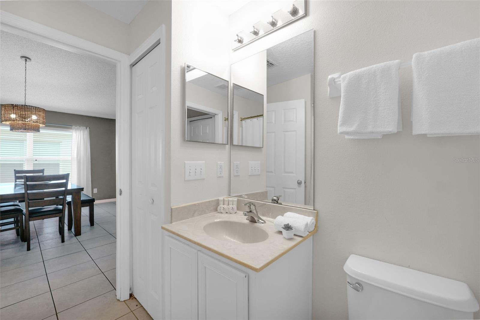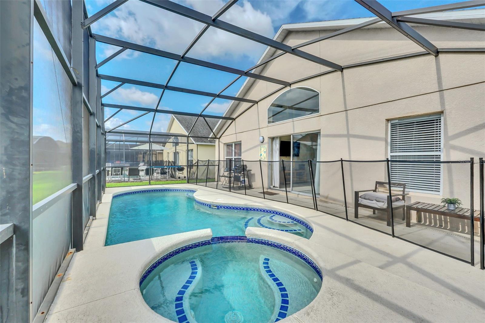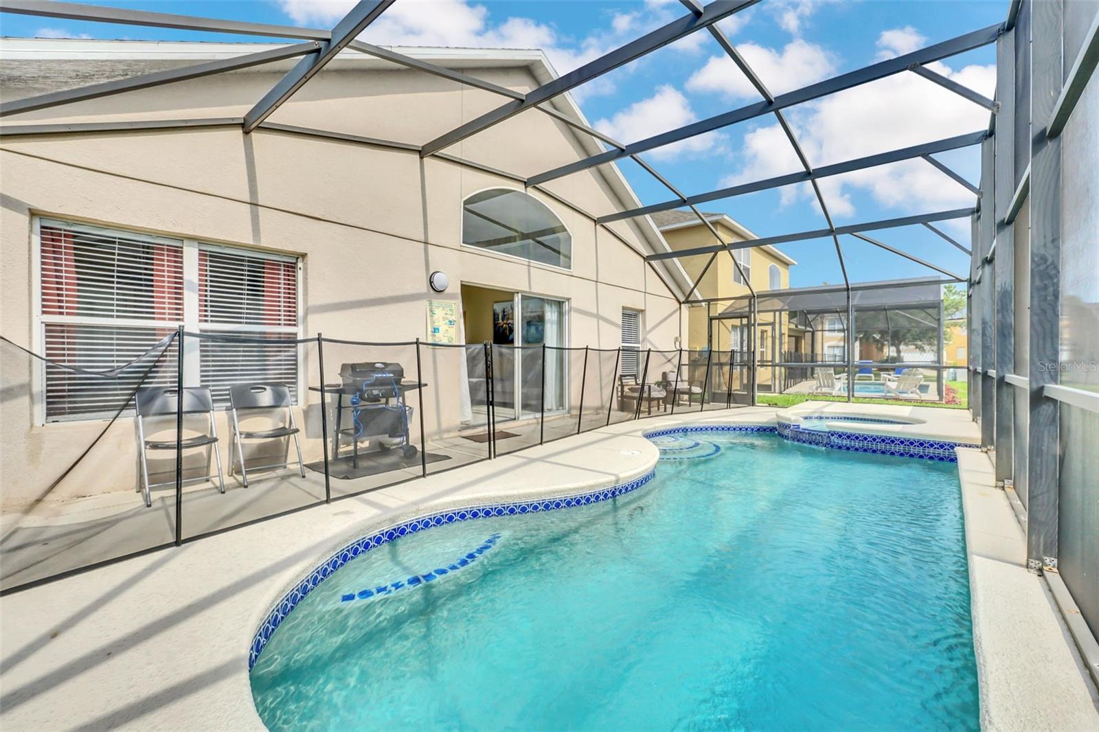 Bem -vindo à sua casa de férias dos seus sonhos no impressionante Resort Terra Verde! Esta casa de piscina lindamente mobiliada e totalmente equipada oferece a mistura perfeita de luxo e conforto. Com 5 quartos espaçosos e 3 banheiros dentro de seus 1.900 pés quadrados, esta residência é projetada para relaxamento e prazer. A casa possui um novo telhado recentemente instalado a partir de 2022 e mostra móveis e decoração atualizados por toda parte. A planta baixa cria um fluxo contínuo através das áreas de estar, aprimorado por tetos altos e pisos elegantes de ladrilhos. O quarto principal é um retiro tranquilo, com móveis modernos e decoração elegante que deram o tom para o relaxamento. Além disso, vários quartos temáticos oferecem um toque extravagante, perfeito para provocar imaginação e prazer para os hóspedes de todas as idades. O entretenimento está ao seu alcance com uma garagem que foi cuidadosamente convertida em uma sala de jogos, completa com um sofá confortável, mesa de bilhar e vários jogos. Saia para descobrir uma piscina e spa lindamente exibidos, ideais para desfrutar de dias ensolarados e noites frias em privacidade. O Terra Verde Resort é uma comunidade principal com comodidades excepcionais, incluindo um clube, piscina em estilo resort, um lago pitoresco com oportunidades de caiaque, um bar tiki e um academia bem equipado. Esta casa não apenas oferece uma experiência de vida luxuosa, mas também mergulha na vida melhor do resort.