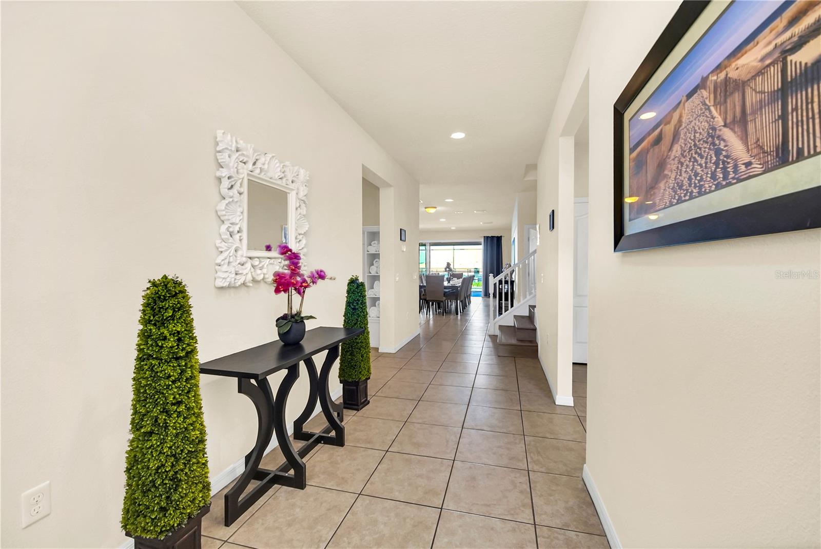 Home Atualizado sem tapete, novo piso! Piscina privada com vista para o lago! Novo queimador de vidro com alcance de airfryer. Nova geladeira nova churrasqueira. Telhado de telha! Sem telhas, mais durável! Uma casa impressionante e expansiva de 9 quartos e 6 banheiros, aninhada no desejável Windsor no Westside Resort. Esta propriedade luxuosa, construída em 2016, oferece generosos 4.391 pés quadrados de espaço de estar espalhados por dois andares, proporcionando amplo espaço para relaxamento e entretenimento. A casa possui uma piscina privada, perfeita para apreciar o ensolarado clima da Flórida. No interior, o resfriamento do sistema dividido garante conforto, enquanto o sistema de aquecimento de pacotes mantém a casa aconchegante durante os meses mais frios. A cozinha está equipada com utensílios de aço inoxidável de alta qualidade, bancadas de granito e armários de café expresso elegantes. Os pisos de madeira foram substituídos em 2023 e há um novo conjunto de máquinas de lavar. Além disso, a geladeira tem menos de cinco anos. O exterior possui uma construção durável de madeira/estuque e um teto de ladrilhos de cimento, garantindo a longevidade e a manutenção mínima. A casa lindamente projetada está situada em um lote considerável, oferecendo muito espaço ao ar livre para atividades e reuniões. Localizada perto das principais atrações, compras e restaurantes, esta casa oferece luxo e conveniência. Não perca esta oportunidade excepcional de possuir um pedaço do paraíso em uma das comunidades mais procuradas de Kissimmee.
