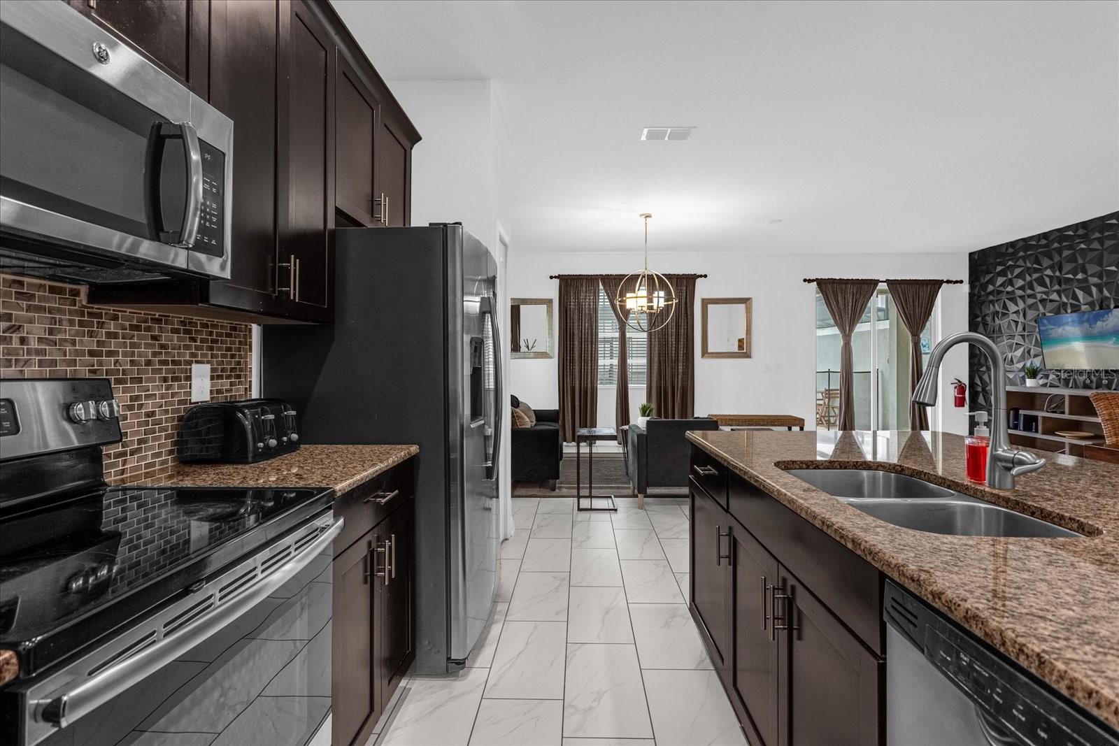 Bem-vindo ao seu luxuoso retiro de férias no tão procurado Storey Lake Resort! Esta deslumbrante casa de esquina totalmente mobiliada com 5 quartos e 4 banheiros oferece um layout espaçoso e convidativo, perfeitamente situada em um beco sem saída sereno perto do lago. Entre para descobrir uma moderna área de estar e jantar de conceito aberto, com elegantes eletrodomésticos de aço inoxidável e elegantes bancadas de granito. O destaque do seu oásis privado é a piscina protegida, ideal para relaxar e se divertir. No piso superior encontrará dois quartos de dimensões generosas com casas de banho privativas, proporcionando um toque extra de conforto e privacidade. Embora a propriedade esteja actualmente a prosperar como arrendamento de curta duração, também oferece um excelente potencial como residência principal ou segunda habitação. No Storey Lake Resort, você desfrutará de uma variedade de comodidades de classe mundial, incluindo uma piscina em estilo resort com rio lento e bar na piscina, toboáguas emocionantes, parque infantil, academia de ginástica de última geração, mini- golfe e múltiplas quadras esportivas. Além disso, você está a poucos minutos das principais atrações, como Walt Disney World, SeaWorld Orlando e Universal Orlando, bem como de uma variedade de opções de compras e restaurantes nas proximidades. Esta residência urbana de esquina privilegiada está idealmente localizada dentro do condomínio, a apenas 10 minutos a pé do clube, oferecendo conveniência e tranquilidade. Não perca a chance de possuir esta propriedade notável – agende sua exibição hoje mesmo, antes que esteja totalmente reservada!