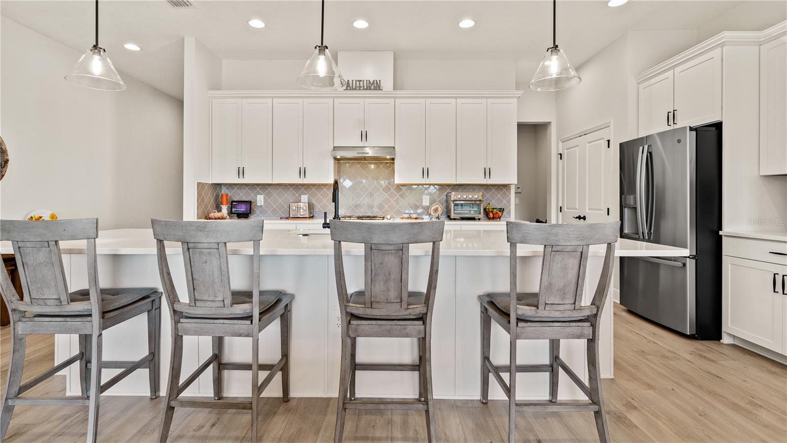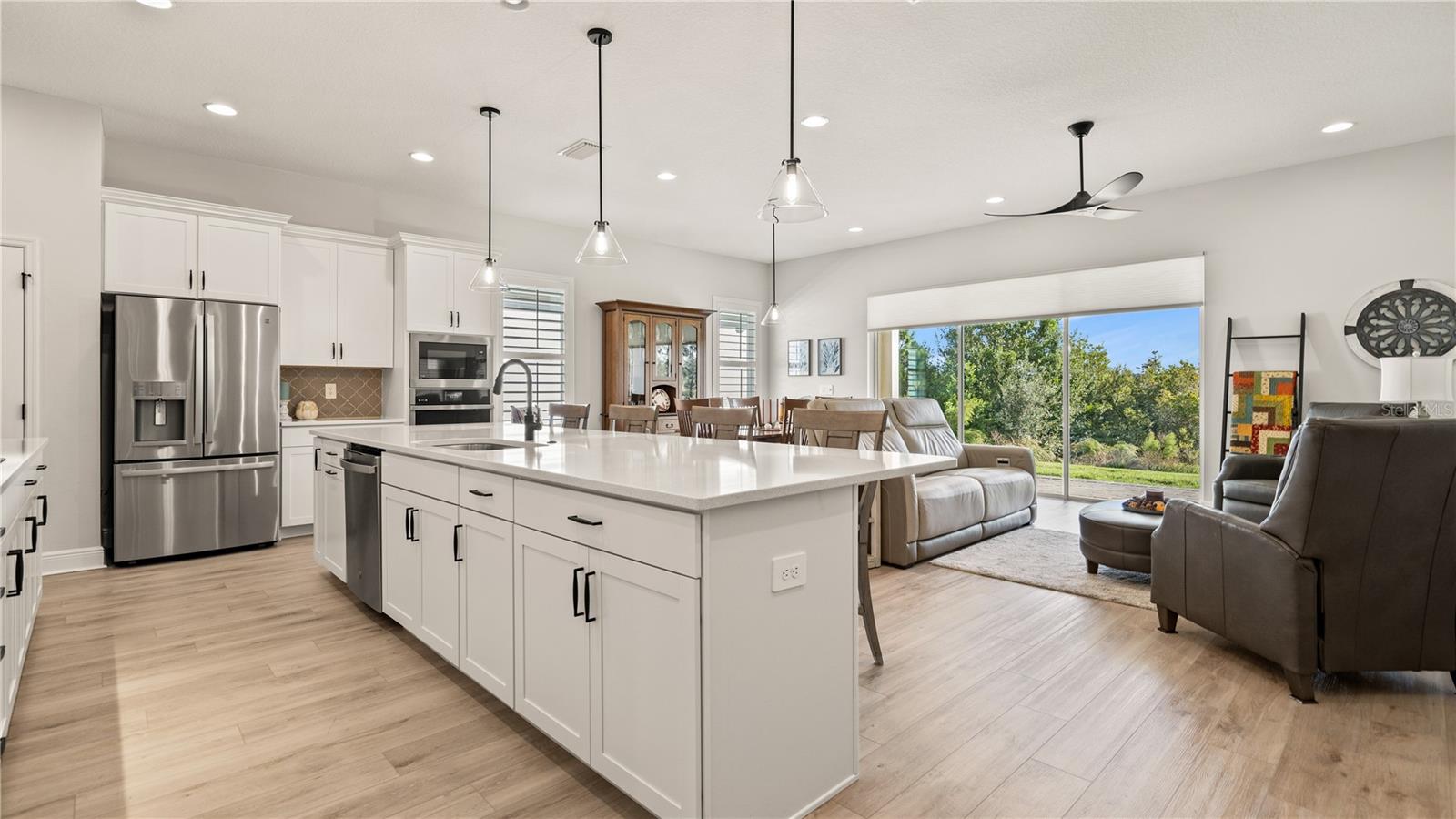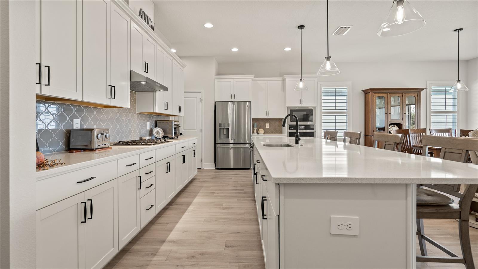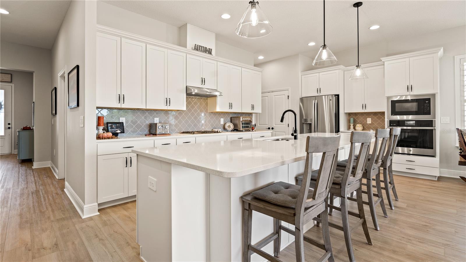 St. Lucia modelo em casa no seu melhor. O Four Seasons de K. Hovnanian em Orlando em Kissimmee é um portão privado guardado com mais de 55 anos, a poucos minutos dos parques temáticos da Disney. Esta casa de um ano possui três quartos, dois banheiros completos, cozinha de luxo, um balcão de quartzo da ilha de 12 pés, tampa de cozinheira a gás e forno de parede, suíte master prolongada, dois quartos adicionais e um convidado completo. Toda a casa tem piso de vinil de luxo e um controle deslizante triplo para o Lanai. As atualizações incluem: calhas de 6 "de casa inteira com desdobramentos de 3x4 (6 blocos de salpicos), garagem de dois carros com soluções de piso de garagem titan (poliureia híbrida e garantia de lixo com salva de mel). Quarto (1) com Aplausos de Hunter Douglas 3/4 "Honeycomb, portas deslizantes de pátio de salão Great W/Power Motorização da bateria recarregável - Remoto Remote Plus (5) ventiladores remotos. Anel Luzes de inundação/câmera com fio e adicionadas ao lanchone e sino da porta do anel frontal conectadas e instaladas. A garagem de dois carros tem um artesão One Workbench, três armários de armazenamento aéreo. Todas as atualizações nesta casa de um ano são iguais a mais de US $ 40.000. Você vai adorar viver nesta comunidade de mais de 55 anos com tantas atividades no clube. Aprecie as duas piscinas aquecidas com uma piscina adicional, pickleball, tênis e quadras de bola Bocci. O clube tem uma sala de jogos com pingue -pongue e piscina, sala de cartas, sala de ginástica, academia completa com chuveiros particulares e vestiário, cozinha e um grande salão de baile. Temos desfiles comunitários, concursos de carrinho de golfe, dança de linha, aulas de culinária, artes e ofícios. Estamos ao lado do Mystic Dunes Golf Club e temos acesso ao restaurante e ao golfe. Os impostos e o CDD custam US $ 8814,74 juntos.