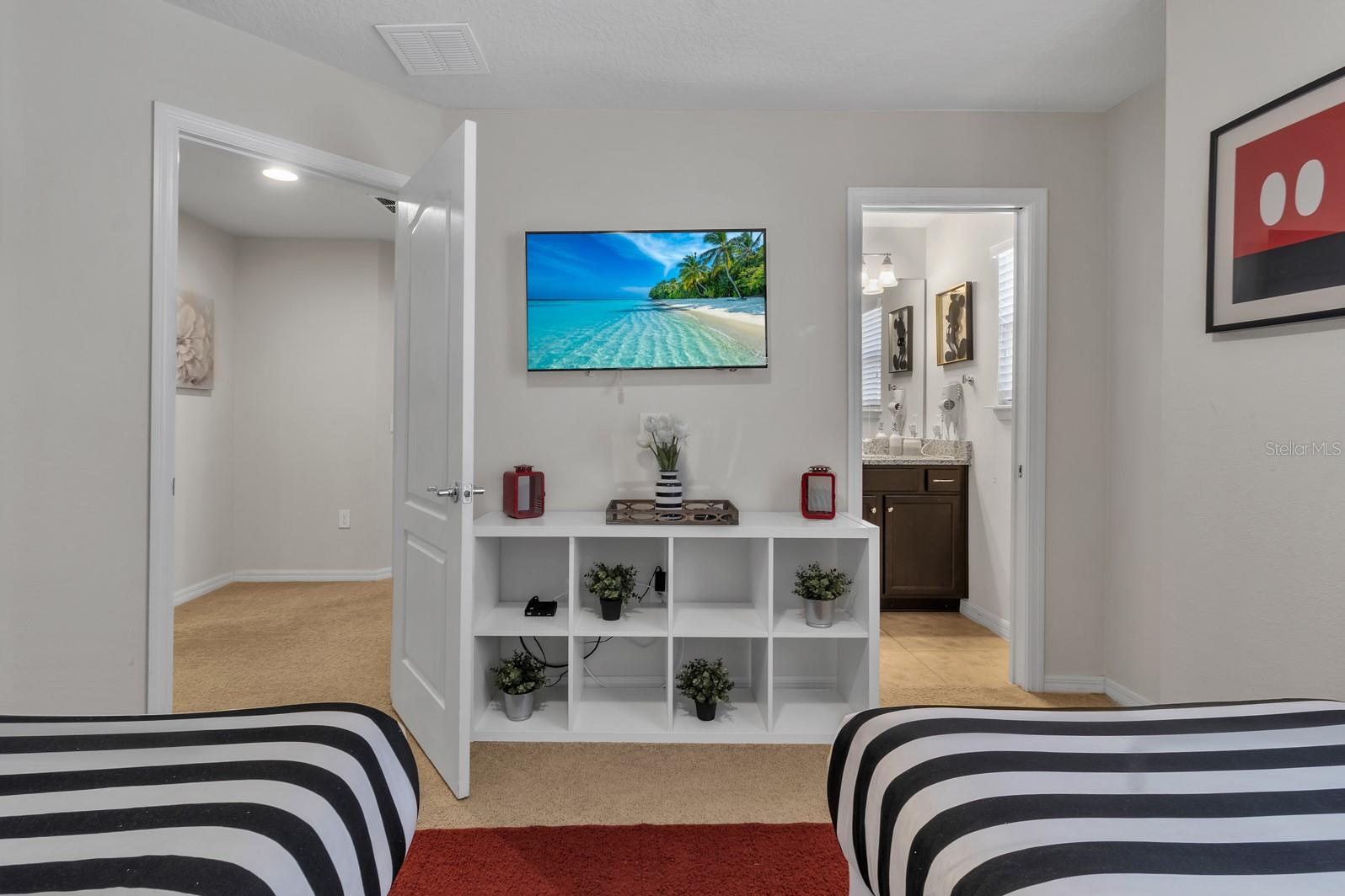 Incrível casa de férias com sete quartos, 5,5 banheiros, um loft confortável, pátio privado, piscina aquecida, armazenamento do proprietário e sala de reuniões abertas. Profissionalmente decorado e totalmente mobiliado para o seu conforto. A suíte do proprietário está localizada no primeiro andar e uma suíte adicional no andar de cima com um loft de grandes dimensões, esta casa permite muito espaço para os hóspedes. Com dois espaços separados para entretenimento, além de muito armazenamento, você pode entreter em grande estilo e fazer ótimas lembranças. Uma cozinha aberta permite que você entretene e se reunir com amigos e familiares. Jante em seu próprio pátio privado com piscina e aproveite o lindo sol da Flórida. Este plano inclui uma piscina privada e aquecida com uma bela área fechada. Granito e ladrilhos em cozinhas e todos os banheiros. Windsor em Westside oferece comodidades incríveis, como a comunidade fechada de 24 horas, clubhouse de 8.000 pés quadrados com fitness center, splash pad, campo esportivo multiuso, vôlei de areia e quadras de tênis, arcade, bar de tiki, cabanas ao lado da piscina, playground da comunidade comunitária e uma bela piscina em estilo resort com lento River & Spa com internet sem fio no deck da piscina. Zoneado para aluguel de curto prazo. Todas as casas incluem paisagismo totalmente mantido, Internet básica e cabo e serviço diário de lixo com manobrista.