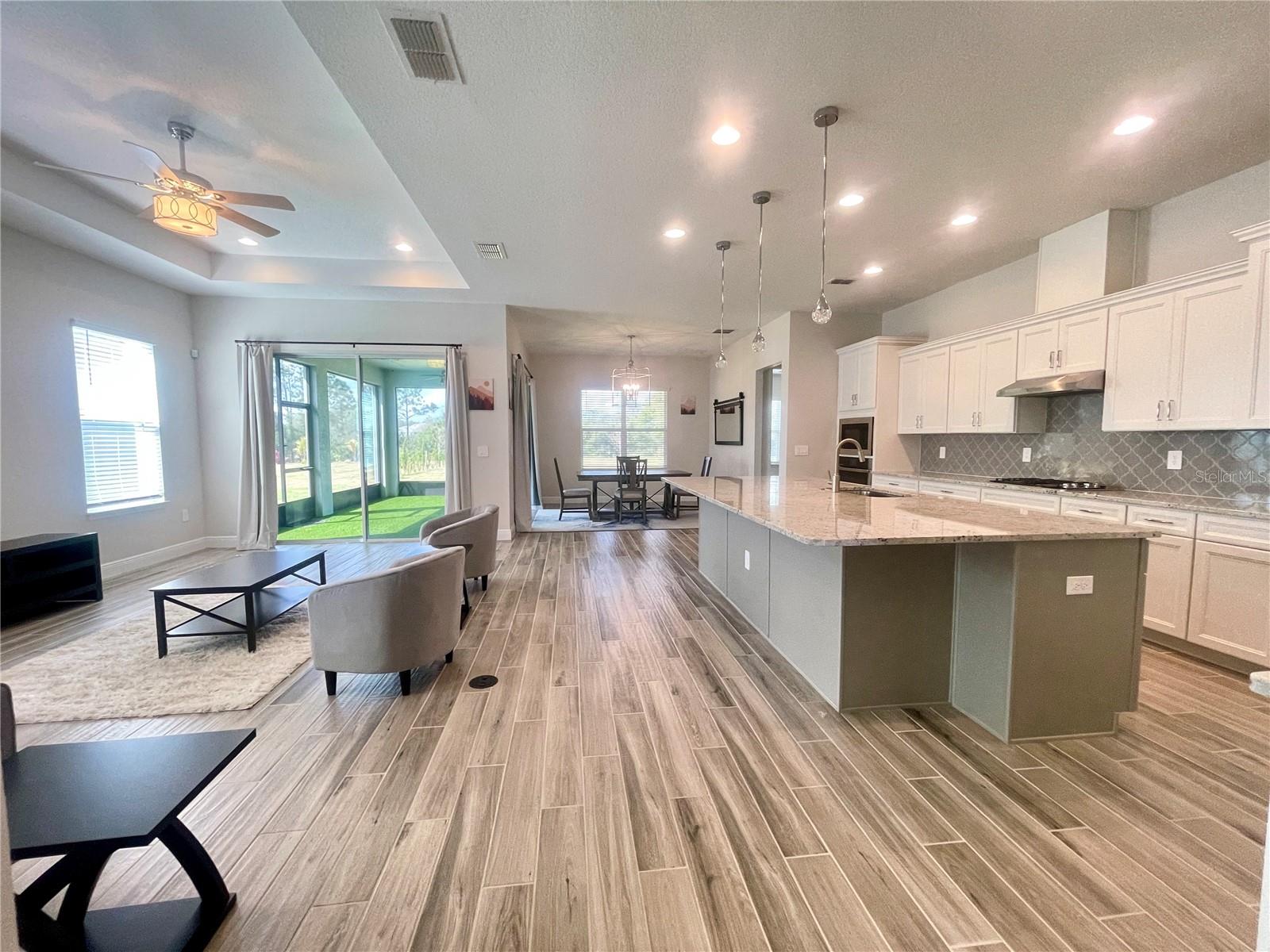 Esta planta “Dominica” pronta para se mover, construída por K. Hovnanian, possui 3 quartos e 2,5 banheiros. É uma verdadeira obra-prima de design e artesanato, localizada dentro da comunidade Four Seasons, no estilo de 55 fechamentos, fechados. O piso plano brilhante e aberto mostra o piso de ladrilho bonito por toda parte. Janelas de panela dupla enchem os interiores com luz natural, enquanto tetos altos em todos os quartos e tetos de bandeja de 11 pés no vestíbulo aumentam o sentido de luxo. Duas portas de vidro deslizantes levam a um lanai coberto, com grama! Você pode aproveitar seu café da manhã enquanto observa a vida selvagem da reserva natural atrás de você. Este é um dos maiores lotes da comunidade! O coração da casa possui uma cozinha gourmet com uma grande despensa de canto, bancadas de superfície sólida, um fogão a gás de cinco queimadores, aparelhos sofisticados e amplo espaço no gabinete. A espaçosa ilha da cozinha serve como um espaço de trabalho perfeito para os entusiastas da culinária e para os convidados divertidos. Retire-se para a ampla suíte de quarto primário, que apresenta janelas com vista para o seu lindo quintal e dois armários. O banheiro privativo inclui bancadas de superfície sólidas, duas pias, um armário de linho, um chuveiro extra-grande e uma sala de variação privada. O quarto de segurança secundário está localizado na frente da casa e possui uma janela de sacada, um closet e seu próprio banheiro privativo. O terceiro quarto tem portas francesas duplas que levam ao salão e a um closet, tornando-o ideal como uma cova ou escritório. A calçada da pavimentadora leva a uma garagem de dois carros e meio-perfeita para o seu carrinho de golfe ou SUV! A lavanderia está equipada com uma pia de utilidade e lavadora de ponta e secador a gás. Localizado a meio caminho entre as praias do Atlântico e do Golfo, esta casa fica a poucos minutos das atrações da Disney World, do Sunset Walk em Margaritaville e de outras atrações centrais da Flórida. Os moradores podem aproveitar as comodidades da comunidade, incluindo um clube de 12.000 pés quadrados com um centro de fitness, salas de jogo e cartas, bilhar, tênis de mesa, salão de baile e muito mais. As comodidades ao ar livre incluem duas piscinas, um spa e pickleball, tênis e tribunais de bocha. Esta comunidade amigável para carros de golfe apresenta ruas tranquilas, perfeitas para ciclismo e calçadas para passeios agradáveis no sol da Flórida. Um portão codificado entre as propriedades permite que os moradores acessem o Hilton Mystic Dunes Clubhouse, Pro Shop e Restaurant/Bar. Observe que existem taxas separadas para o golfe. Construído em 2019, esta casa foi meticulosamente mantida e está em condição impecável. Os proprietários só ficaram em casa algumas vezes devido a negócios no Reino Unido. Está pronto e com preço de venda, os móveis podem ser incluídos. Não perca a oportunidade de tornar essa propriedade excepcional a sua!