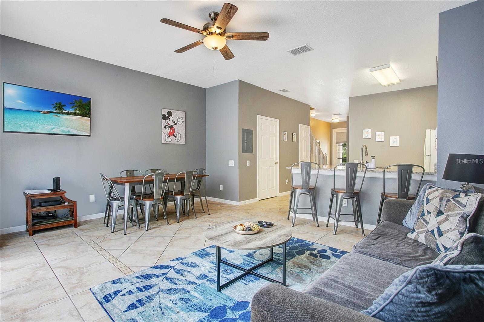 Bem -vindo a esta moradia temática da Disney !! Ótima oportunidade de investimento de aluguel curto ou sua próxima casa !! Esta encantadora piscina de 2 andares com 3 quartos e 3 banheiros é totalmente mobiliada. It includes granite countertops, newer living & dinning room furniture (2021), New A/C (2021), first floor painted (2022), new dishwasher (2022), POOL resurfaced in 2022. Located in the most desirable community of Windsor Palms only a few minutes from the Florida theme parks and many other attractions with resort style amenities such as tennis, volleyball, basketball courts, game Quarto, cinema, churrasco e área de piquenique, piscina comunitária com guarda de 24 horas no portão. Open Concept Living/Cozinha/sala de jantar, exibida na piscina para sentar e relaxar depois de um longo dia nos parques temáticos.
