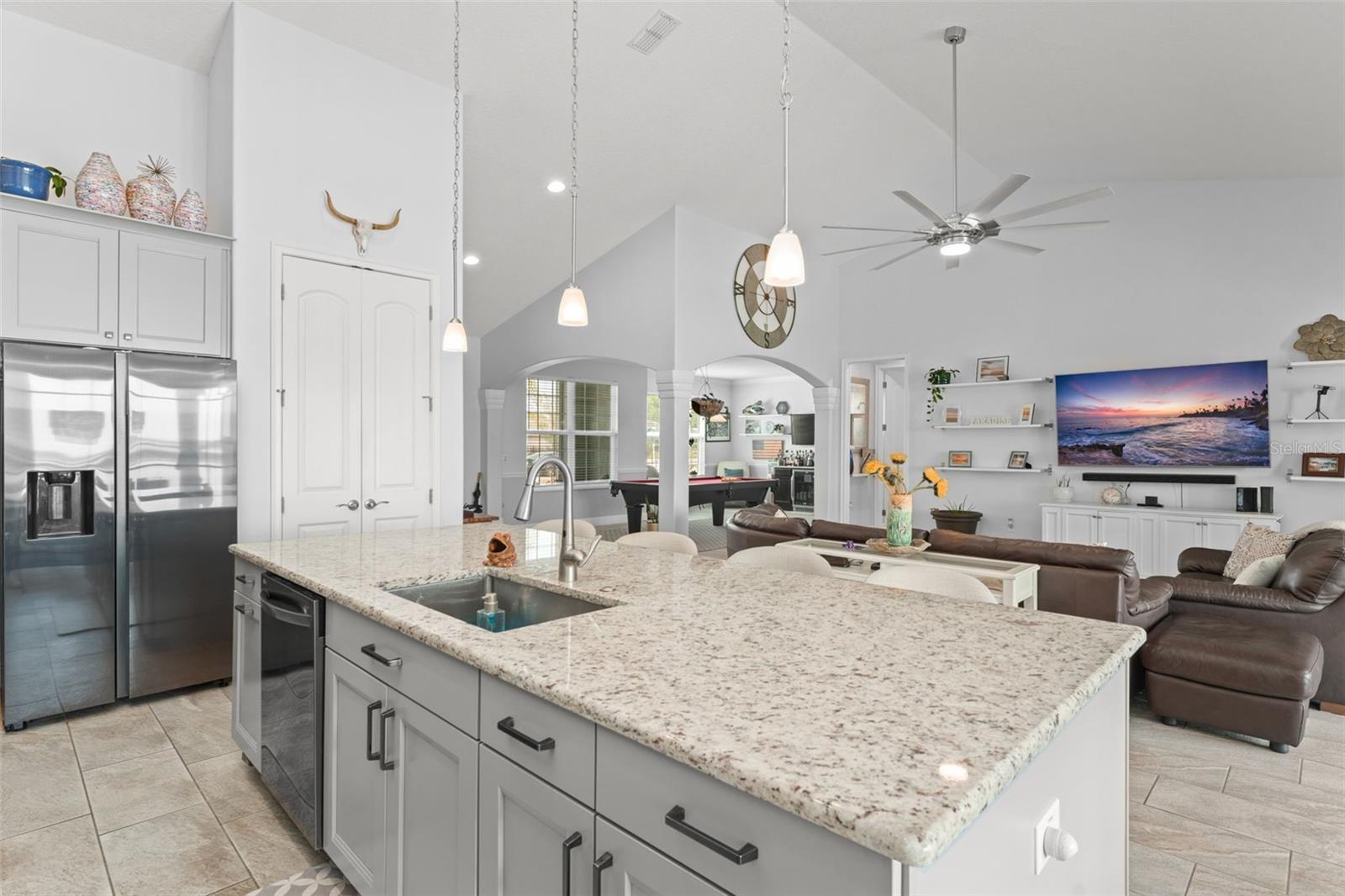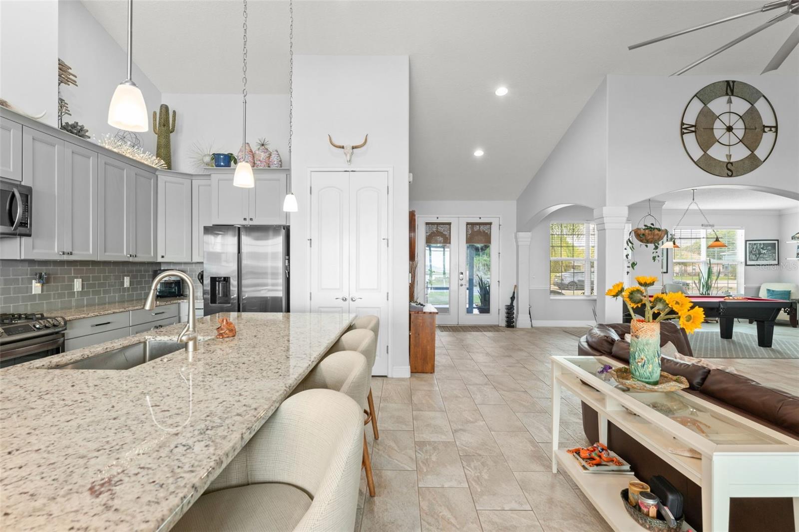 Experimente o lago Front Living e o melhor estilo de vida da Flórida nesta impressionante casa de 3 quartos e 3 banheiros, perfeitamente situada em uma rua da península com vista para a água na frente e nas costas e na tranquilidade de um gerador de casa inteira. Aninhado ao longo do lago Tohopekaliga, esta casa oferece pôr do sol de tirar o fôlego, vida selvagem abundante e acesso direto ao lago. Entre para encontrar um layout convidativo com um escritório fora do vestíbulo e uma espaçosa sala de estar com janelas grandes e um bar embutido com uma geladeira de bebida que flui perfeitamente para a sala da família, onde as portas de vidro deslizantes se abrem para vistas deslumbrantes do lago. A área de jantar está dobrada na parte de trás, perto da cozinha lindamente atualizada, com bancadas de granito, utensílios de aço inoxidável, armários cinza elegantes e uma geladeira embutida com prateleiras de vinho personalizadas. O plano de piso dividido fornece privacidade, com dois quartos e banheiros da sala - cada um com sua própria entrada na sala de estar - enquanto a suíte primária está situada na cozinha. O espaçoso retiro primário apresenta tetos de bandeja, janelas de vista para o lago, dois grandes armários e um banheiro parecido com um spa com vaidades duplas e um luxuoso chuveiro com um recurso de cabeça de chuva. A vida ao ar livre é incomparável com uma varanda pavimentada, uma piscina de água salgada totalmente selecionada e spa com aquecimento a gás e nenhum vizinho traseiro para maior privacidade. A frente da propriedade oferece uma doca no canal que leva ao lago, junto com uma casa de barco equipada com dois elevadores de barco. Aproveite o melhor da natureza desde o seu quintal-eagles, lontras, corujas e pesca de classe mundial. Os recursos adicionais incluem um quintal voltado para o oeste para pôr do sol espetacular, um deck de sol extra, uma área cercada para crianças ou animais de estimação, uma garagem circular com estacionamento coberto sob uma garagem personalizada, amaciador de água de casa inteira, aquecedor de água quente sem tanques e fogão a gás. Esta casa é realmente um achado raro, com vistas imbatíveis e inúmeras atividades ao ar livre - escapou sua turnê privada hoje!
