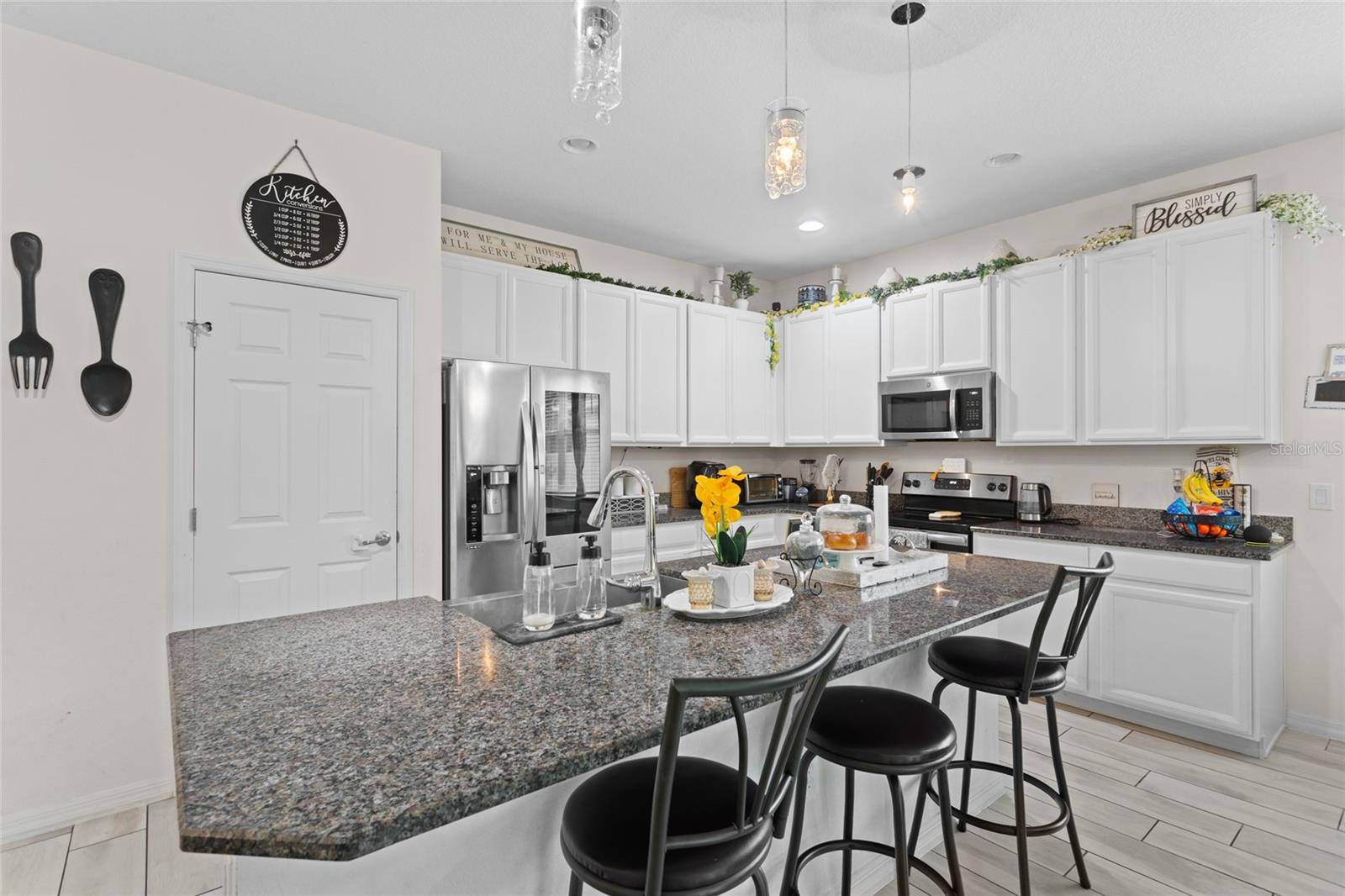 Bem-vindo a esta casa lindamente mantida de 3 quartos e 2 banheiros em um condomínio fechado no coração de Kissimmee-completa com painéis solares pagos no fechamento da economia de energia desde o primeiro dia! Os painéis solares incluem uma bateria de backup. Esta propriedade encantadora oferece um layout aberto convidativo com uma espaçosa área de estar e jantar, perfeita para entreter ou relaxar com a família. A cozinha possui uma barra de café da manhã, bancadas em granito e amplo espaço no gabinete e flui perfeitamente para as principais áreas de estar. A suíte master inclui um banheiro privativo, enquanto os dois quartos adicionais são de tamanho bem para os hóspedes, um escritório em casa ou necessidades familiares. O banho principal possui pias duplas com muito espaço de armazenamento e um chuveiro de vidro com ladrilhos de porcelana moderna. Saia para aproveitar seu oásis no quintal, sem vizinhos traseiros ideais para churrascos de fim de semana ou noites tranquilas sob as estrelas. Localizado em uma área conveniente perto de compras, restaurantes, escolas e grandes rodovias, esta casa oferece a mistura perfeita de conforto, eficiência e localização. Agende sua exibição particular hoje-seu novo estilo de vida solar aguado a Kissimmee!