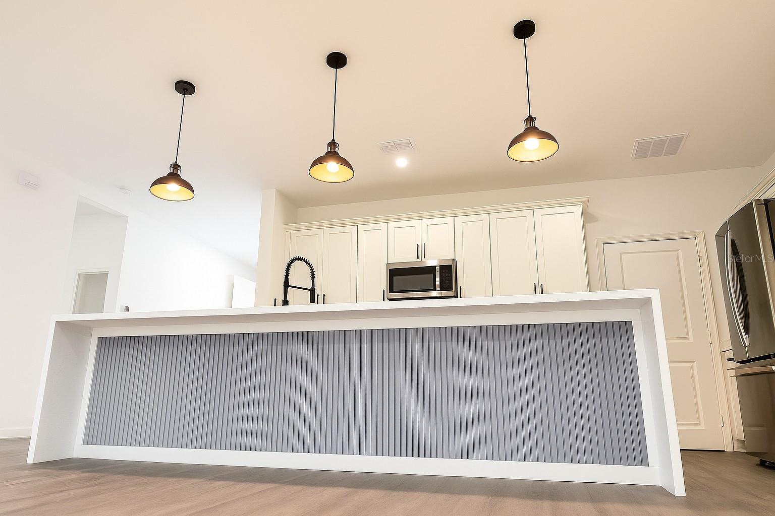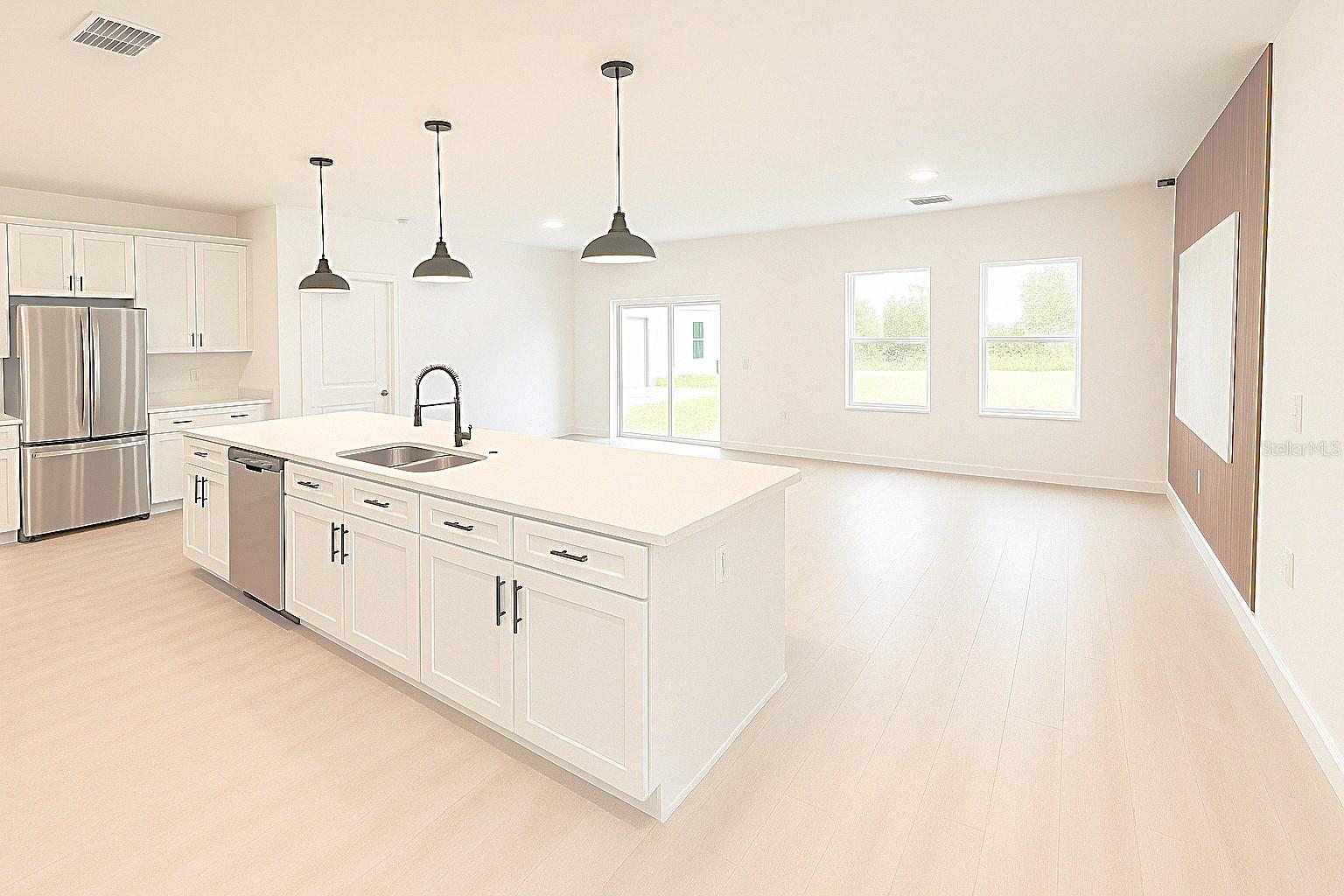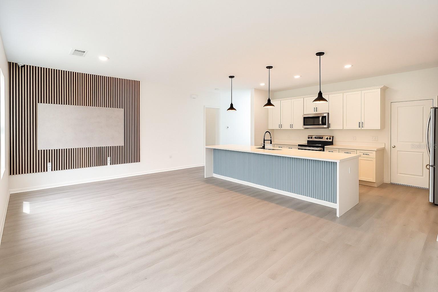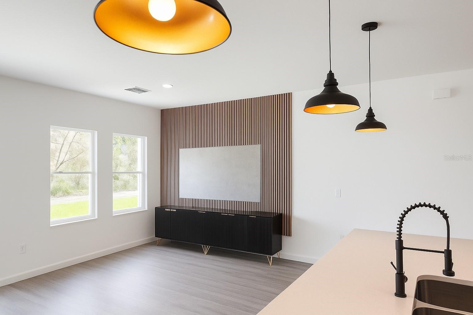 Uma ou mais fotos foram virtualmente encenadas. Casa moderna e pronta para morar, com um layout aberto espaçoso e uma ilha de cozinha grande, perfeita para cozinhar, jantar e se divertir. Os acabamentos atualizados incluem bancadas de quartzo, eletrodomésticos de aço inoxidável e iluminação pendente. Painéis decorativos de ripas de parede e suportes de TV embutidos estão incluídos. Banheiros elegantes com azulejos de design e pias duplas. Escritório privativo com portas francesas, luxuoso piso de vinil e varanda traseira ideal para churrascos e reuniões ao ar livre.