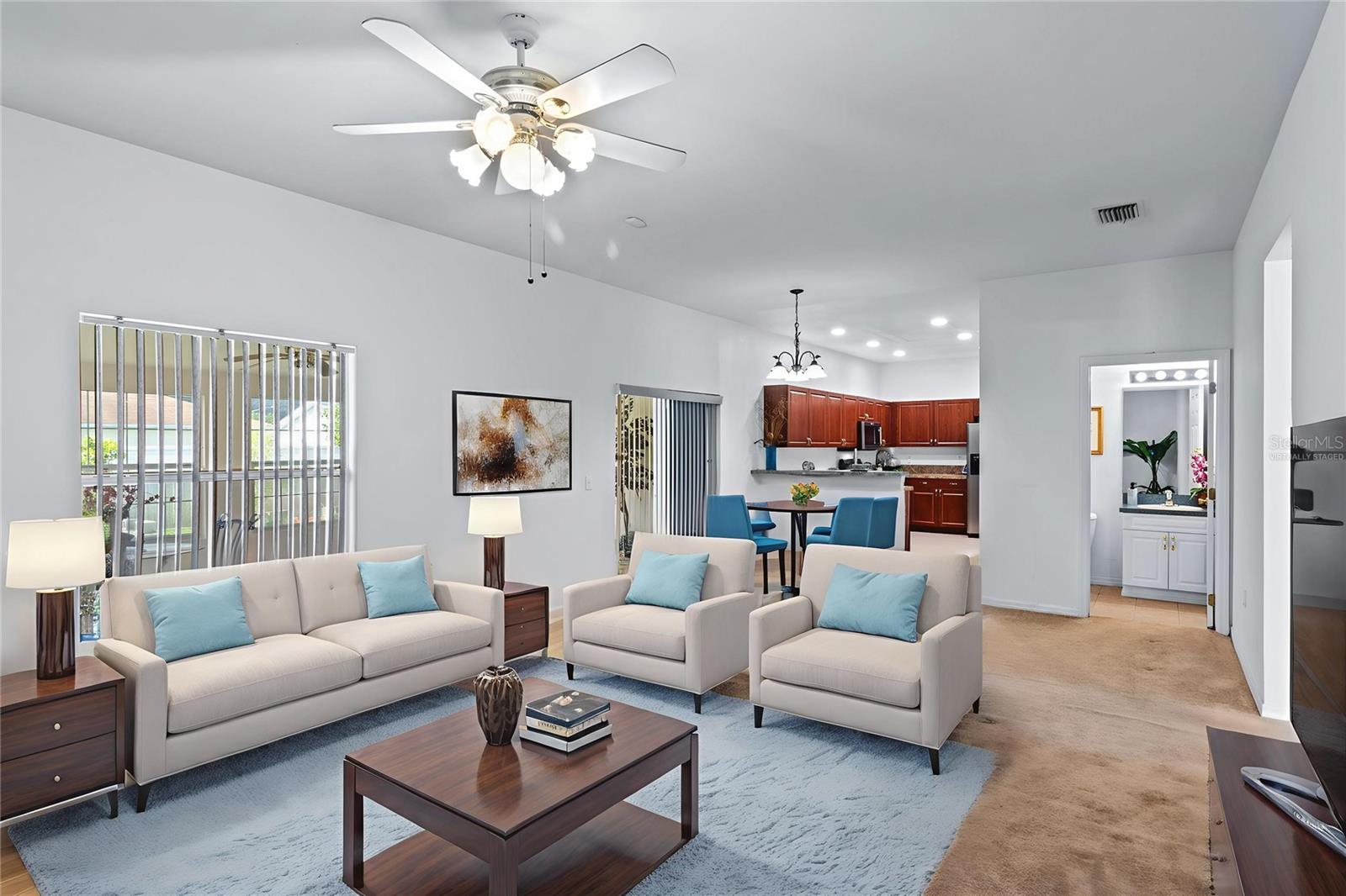 Uma ou mais fotos foram virtualmente encenadas. Bem-vindo ao Poinciana Village 3 e esta bela e espaçosa casa de 4 quartos, 2 banheiros e meio com escritório/arrumos, garagem para 2 carros e enorme varanda fechada. Com 2.630SF há espaço para todos. Ao entrar você encontrará o combo Sala Ampla/Sala de Jantar ótimo para reunir familiares e amigos. Continue de volta para a igualmente grande sala familiar com área para refeições e portas de vidro deslizantes que levam à varanda fechada iluminada pelo sol de 23' x 14'. A cozinha é perfeita para preparar todas as suas refeições favoritas, contando com amplos armários e balcão, balcão para café da manhã e ampla despensa. A lavadora/secadora de carregamento frontal está convenientemente localizada no armário da lavanderia ao lado da cozinha, no caminho para a garagem. A enorme suíte primária com armários duplos e banheiro privativo com banheira de jardim, box amplo e pias duplas fica no andar de cima. Também localizado no andar de cima há um banheiro completo, 3 quartos adicionais mais o escritório/arrumos que pode ser usado como quarto 5. Outras ótimas características incluem áreas de estar acarpetadas, áreas úmidas de azulejos, quintal totalmente cercado, belo paisagismo maduro e telhado reformado em 2017. Convenientemente localizado perto de mercearias, lojas, restaurantes e outros serviços. A comunidade está repleta de comodidades para todos, com piscina comunitária, vários playgrounds e parques, quadra de basquete, academia, raquete e quadra de tênis. ALÉM DISSO, a baixa taxa HOA inclui cabo e internet. Ligue hoje para uma exibição privada e comece sua nova aventura.
