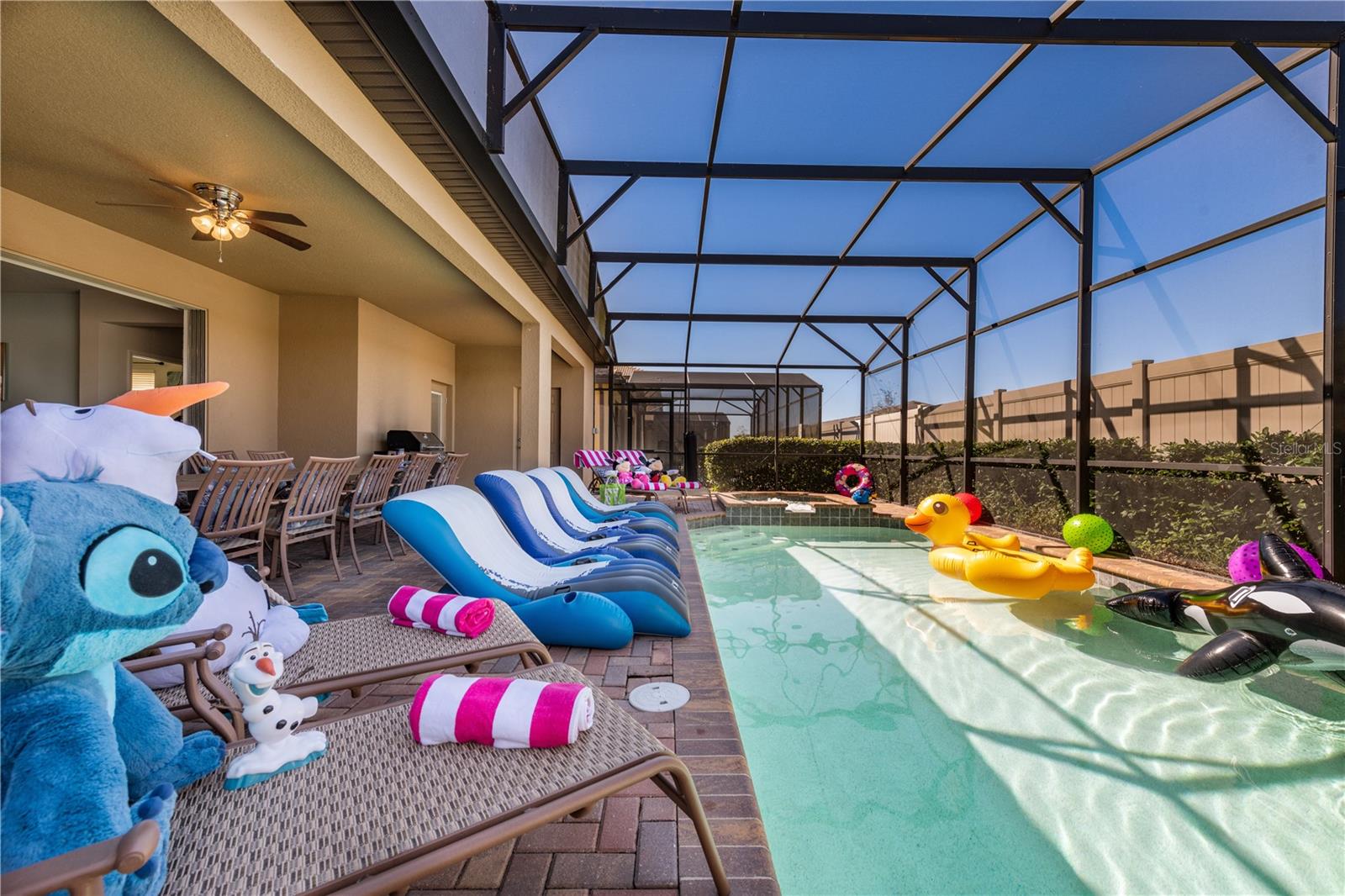 Uma oportunidade de investimento de aluguel de férias fenomenais com grande potencial de renda! Descubra esse lote principal no vibrante Windsor em Westside, perfeitamente situado em frente ao clube com impressionante vista para o lago. Esta casa de férias impecavelmente mantida é totalmente mobiliada com móveis atualizados, incluindo três suítes primárias luxuosas e quartos temáticos divertidos, perfeitos para grandes grupos de férias. A casa possui pisos de vinil de luxo recentemente atualizados em todos os quartos (sem carpete), bancadas de granito elegantes na cozinha e banheiros, utensílios de aço inoxidável premium e telhas elegantes. Mergulhe em relaxamento com uma piscina de tela privada, deck de pavimentação e lanchonete coberto, voltando a um lago natural e área de conservação. Os recursos de energia inteligente, como duas unidades CA de alta eficiência, janelas de panela dupla baixa e aparelhos modernos o mantêm ecologicamente corretos e econômicos. Esta comunidade dependente de guarda deslumbra com um clube de 10.000 pés quadrados em estilo de resort com sala de jogos de arcade, uma piscina e spa aquecidos brilhantes, um rio lento sinuoso, um mini parque aquático emocionante, um centro de fitness de ponta, um bar de tiki animado e todos os tipos de campos esportivos. A coleta de lixo de paisagismo, internet, cabo e manobrista diária estão incluídos na taxa HOA. A poucos minutos do Walt Disney World, dos principais campos de golfe, compras vibrantes, aeroporto e grandes atrações, esta é sua chance de possuir uma fatia do paraíso para investimento ou 2ª casa! Agende sua turnê privada exclusiva hoje!