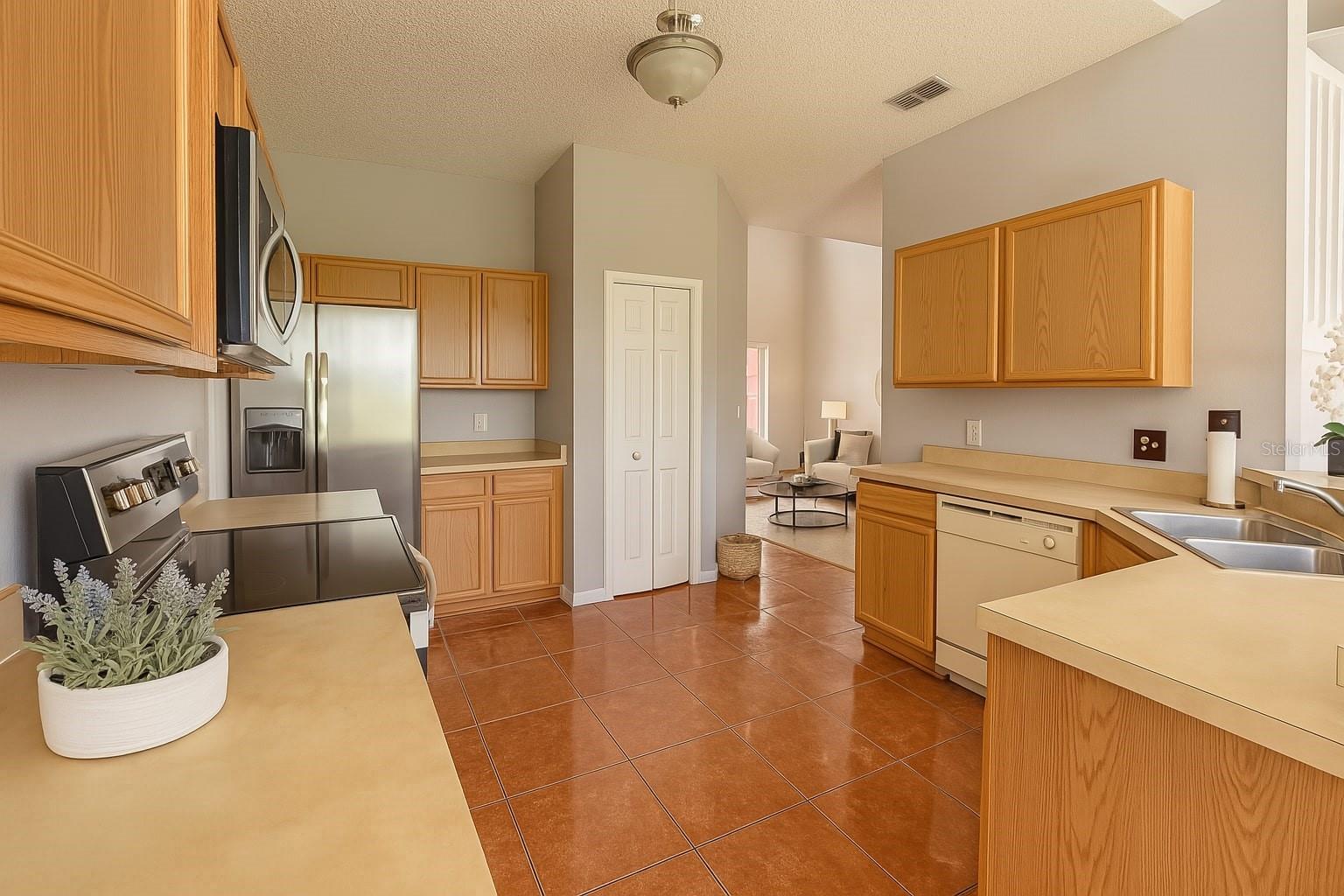 Uma ou mais fotos foram praticamente encenadas. ** Crédito do credor até US $ 5.000 quando usar o credor preferido ** Bem-vindo a uma casa de dois andares lindamente mantida, oferecendo 4 quartos, 3 banheiros e uma sala de bônus flexível-perfeita para um escritório em casa, Den ou quarto pequeno. Com impressionantes 2.571 pés quadrados de espaço em um lote duplo raro pouco menos de meio hectare, essa propriedade combina espaço, estilo e funcionalidade. Entre até tetos altos da catedral, ladrilhos de estilo espanhol no andar de baixo e pisos de tábuas de vinil de luxo no andar de cima-sem carpetes sem carpetes. A cozinha de conceito aberto flui perfeitamente para as salas de estar e de jantar formais, ideais para entretenimento. Duas grandes portas de vidro deslizantes trazem toneladas de luz natural e fornecem fácil acesso ao espaçoso quintal. No andar de cima, a planta baixa oferece privacidade com uma luxuosa suíte master com uma banheira de jardim, chuveiro grande, vaidades duplas e armários de seu andamento. As atualizações recentes incluem um sistema CA totalmente novo e um teto com apenas três anos de idade. Localizado em uma comunidade vibrante, com comodidades fantásticas, incluindo um centro de fitness, piscina em estilo resort e playground-tudo com um HOA baixo que cobre cabos e internet básicos. A poucos minutos da Disney, compras e grandes rodovias, esta casa oferece valor e localização imbatíveis. Não perca a chance de possuir esta propriedade excepcional!