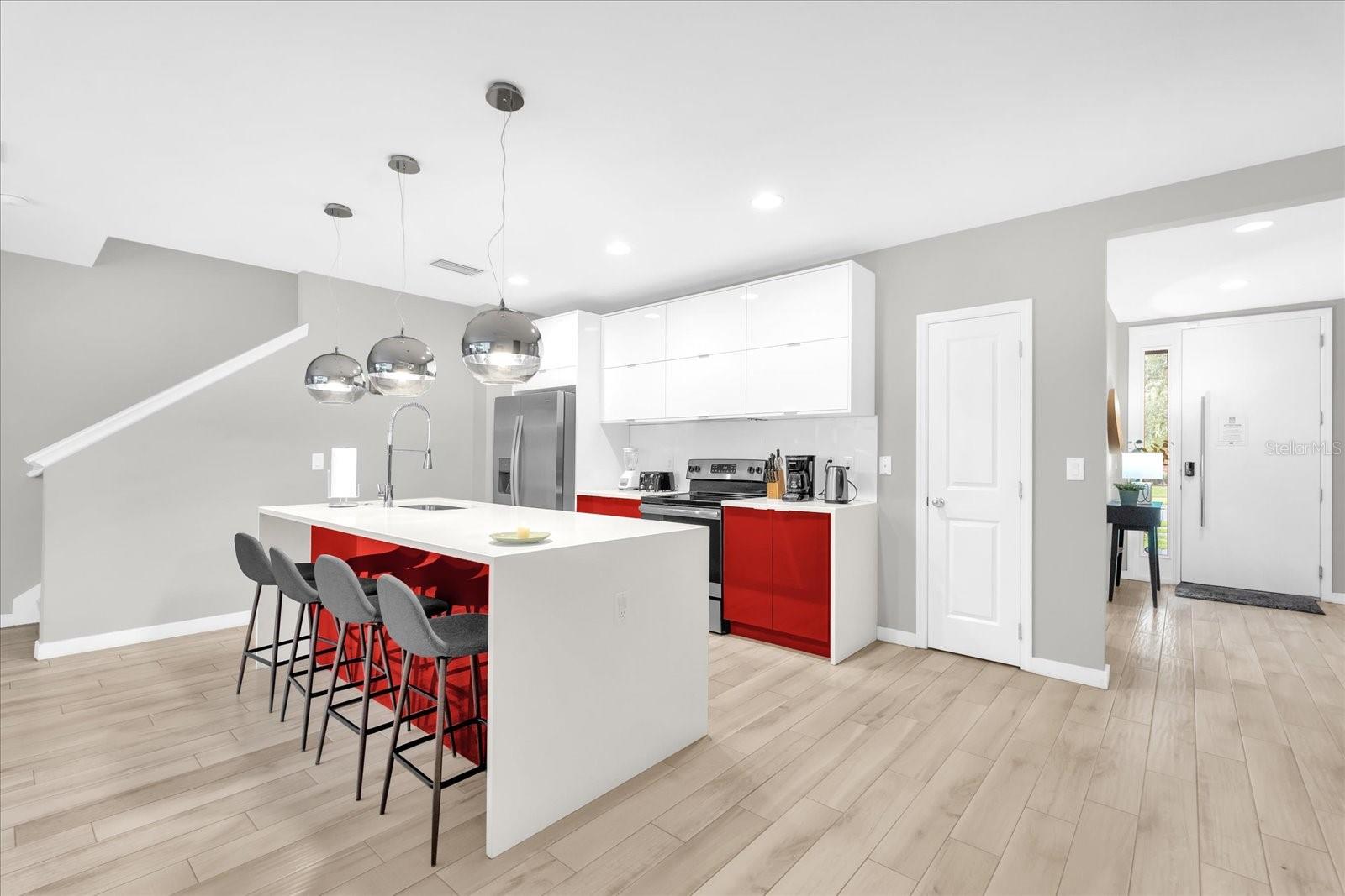 Experiência elegante e instável que vive no condomínio fechado desejável de Le Reve, no coração de Kissimmee. Esta cidade de canto lindamente mobiliada possui quatro quartos e 3,5 banheiros, oferecendo um layout de conceito aberto com acabamentos modernos, incluindo armários de close suave de estilo italiano, bancadas de quartzo e utensílios de aço inoxidável. Saia através de portas deslizantes de grandes dimensões para apreciar seu pátio de tela privada, completa com uma piscina do tamanho de um spa e cozinha ao ar livre, ideal para relaxar ou divertir. No andar de cima, dois quartos apresentam banhos de suíte, enquanto um terceiro banheiro completo e armário de lavanderia proporcionam uma conveniência adicional. Professor e se mover profissionalmente, a poucos minutos dos restaurantes, às compras e a apenas 15 minutos da Disney. Com o Super Walmart do outro lado da rua, tudo o que você precisa está por perto. Não perca esta oportunidade de possuir uma casa deslumbrante em uma das comunidades mais bem localizadas de Orlando, agende sua turnê hoje!