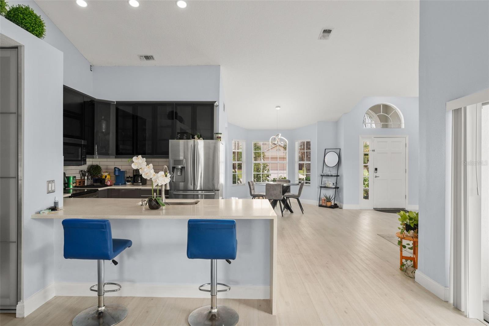 ** Esta propriedade se qualifica para um crédito de custo de encerramento de até US $ 4.900 através do credor preferido do vendedor. Bem-vindo à 121 Country Creek Lane, uma casa de 3 quartos e dois quartos, com 1.600 pés quadrados de espaço de estar e uma garagem de 2 carros, aninhada em um bairro tranquilo a poucos minutos das compras, restaurantes e entretenimento. Esta casa cuidadosamente projetada oferece o equilíbrio perfeito de conforto, estilo e funcionalidade. Ao entrar, você é imediatamente recebido por um layout de conceito aberto que conecta a sala de estar, a sala de jantar, a cozinha e a sala da família-criando uma sensação arejada e espaçosa perfeita para a vida e entretenimento diários. A área de jantar apresenta um lustre moderno, uma janela de sacada encantadora com vista para o quintal da frente e acesso conveniente para garagem a poucos passos de distância. O coração da casa-a cozinha-é um verdadeiro showstopper, com armários brilhantes pretos elegantes, uma bancada com ponta de cachoeira com assentos de barra de café da manhã, utensílios de aço inoxidável e até uma mini geladeira para maior conveniência. Adjacente à cozinha, a sala da família e o layout no estilo da cozinha são aprimorados por tetos abobadados e um nicho de parede decorativo, enquanto as portas deslizantes de vidro levam ao pátio coberto, misturando lindamente a vida interna e externa. Escondido entre a cozinha e o quarto da família, há um corredor que leva a dois quartos de hóspedes, ambos com piso laminado e armários embutidos. O banheiro de hóspedes é um destaque elegante, com azulejos cinza do chão ao teto, um chuveiro de walk-in de vidro e até acesso direto ao quintal-perfeito para convidados ou enxaguar pós-SWIM se você imaginar adicionar uma piscina. No lado oposto da casa, a suíte primária oferece um retiro pacífico com tetos abobadados, acesso privado ao pátio, um espaçoso closet e um elegante banheira de banheiro com uma vaidade de lida dupla, uma banheira de imersão e um chuveiro de vidro separado. Saia do pátio coberto - um espaço singular e sombreado com vista para o quintal em branco da tela, pronto para o seu toque pessoal. Esteja você sonhando com um jardim, cozinha ao ar livre ou piscina espumante, as possibilidades são infinitas. Toques modernos, um layout aberto e muito espaço para crescer - essa jóia do Kissimmee está pronta para recebê -lo em casa.