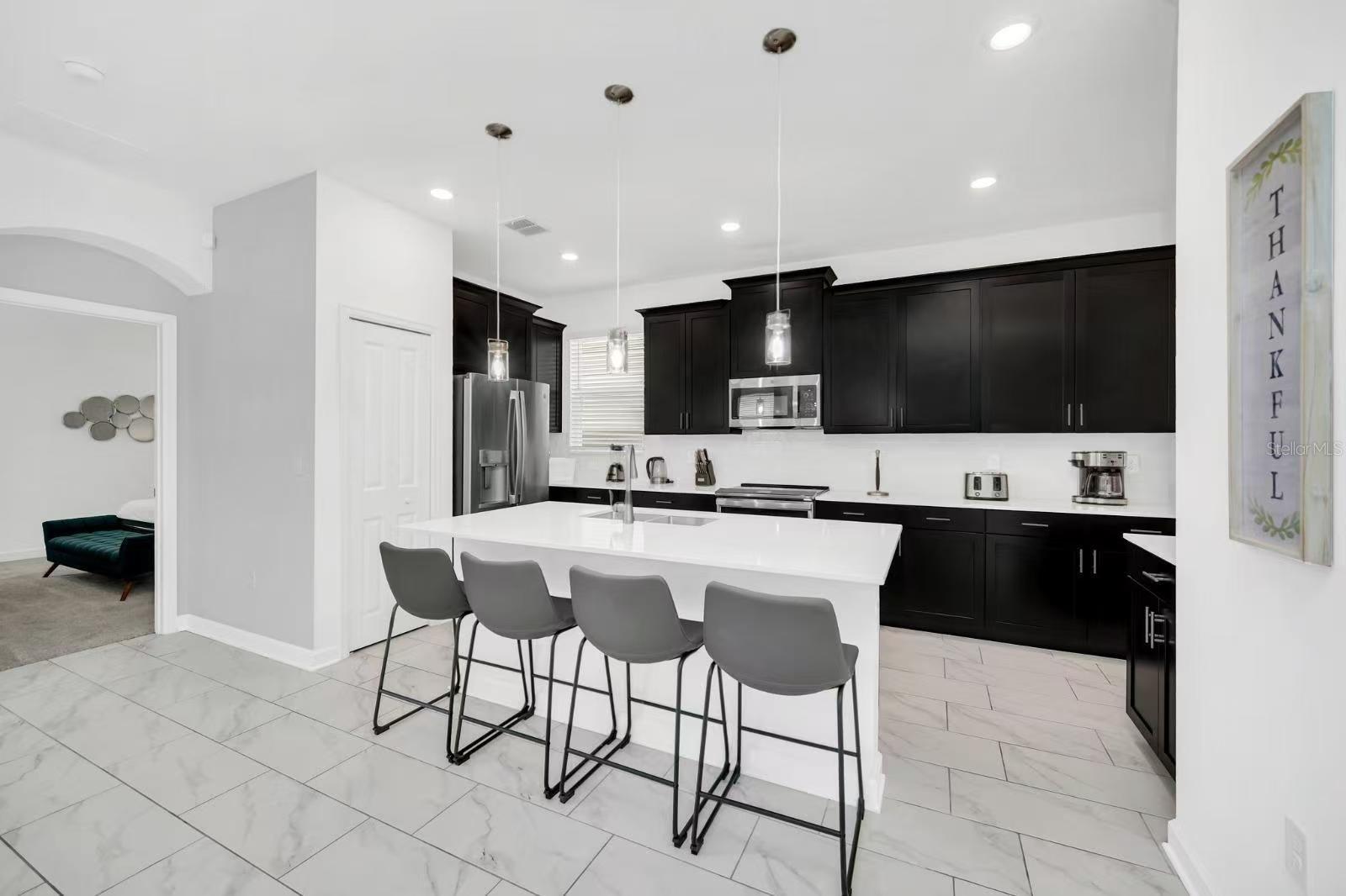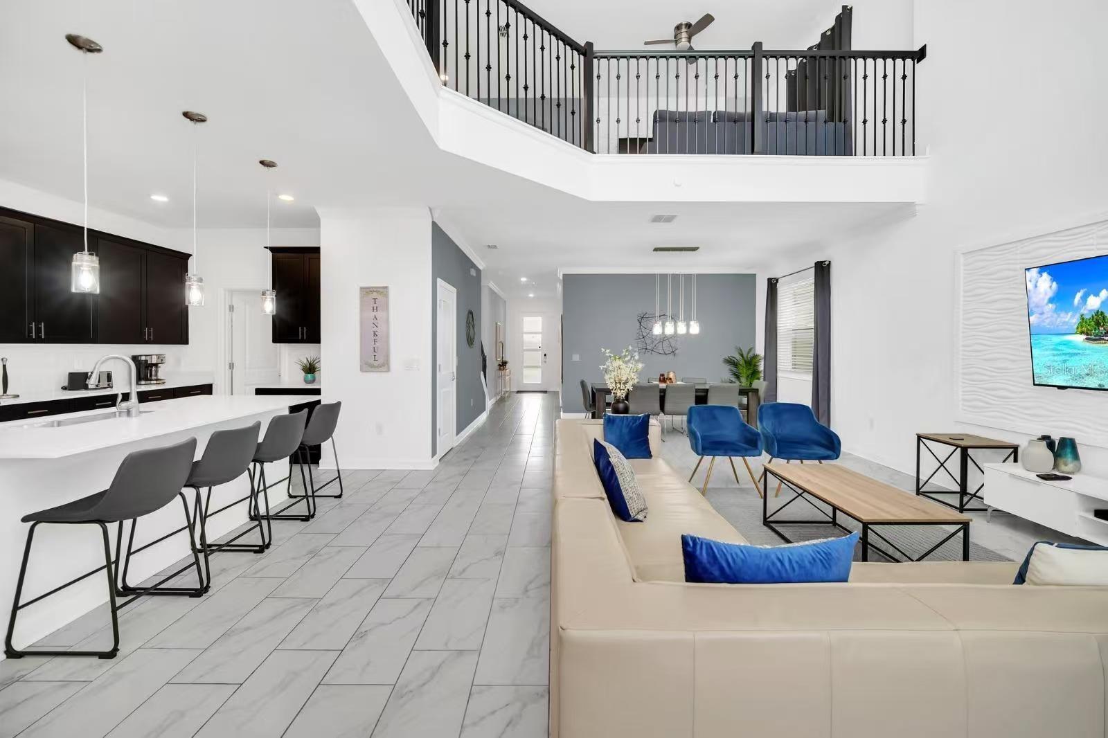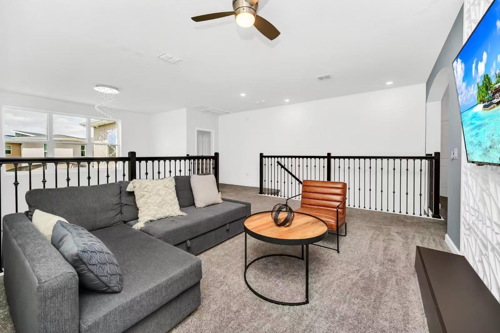 Bem -vindo à sua fuga de férias dos seus sonhos no renomado Storey Lake Resort! Esta magnífica casa de 5 quartos e 5 banheiros é a mistura perfeita de luxo e conforto, oferecendo um retiro inesquecível a poucos momentos da magia da Disney. Ao entrar, você é recebido por uma ampla planta baixa que mescla sem esforço uma área de estar espaçosa, um elegante espaço para refeições e uma cozinha gourmet com bancadas de granito elegantes e utensílios de aço inoxidável. Os tons leves e arejados da casa criam um ambiente refrescante, enquanto a ilha da cozinha adiciona assentos extras para reuniões de família. A suíte master é um paraíso verdadeiro, oferecendo bastante espaço e um closet para maior conveniência. No andar de cima, você descobrirá um espaço versátil de loft, ideal para relaxar ou divertir. Cada quarto é de tamanho generoso, dando a todos seu próprio espaço privado para relaxar. Saia para o seu santuário pessoal-uma área de piscina exibida completa com um spa aquecido, perfeito para absorver o sol da Flórida em privacidade. Crie memórias duradouras neste impressionante espaço ao ar livre projetado para relaxar. Como hóspede do Storey Lake Resort, você desfrutará de uma riqueza de comodidades de primeira linha. O clube do resort oferece um bar/grade de tiki, aluguel de canoas e caiaques, um rio preguiçoso, fitness center, mini-golfe, uma piscina refrescante, bloco de respingos, slide duplo, vôlei e quadras esportivas. O que realmente diferencia esta casa é sua decoração excepcional, rivalizando com a de uma casa modelo com sua elegância. Totalmente mobiliado e pronto para hospedar, é o cenário ideal para suas férias. Localizado a poucos minutos do Aeroporto Internacional da Disney, Orlando, International Drive, SeaWorld, Universal Studios e os shoppings premium, a conveniência está sempre ao seu alcance. Não perca a chance de experimentar essa fuga extraordinária. Agende sua exibição hoje e comece sua jornada para as férias finais!