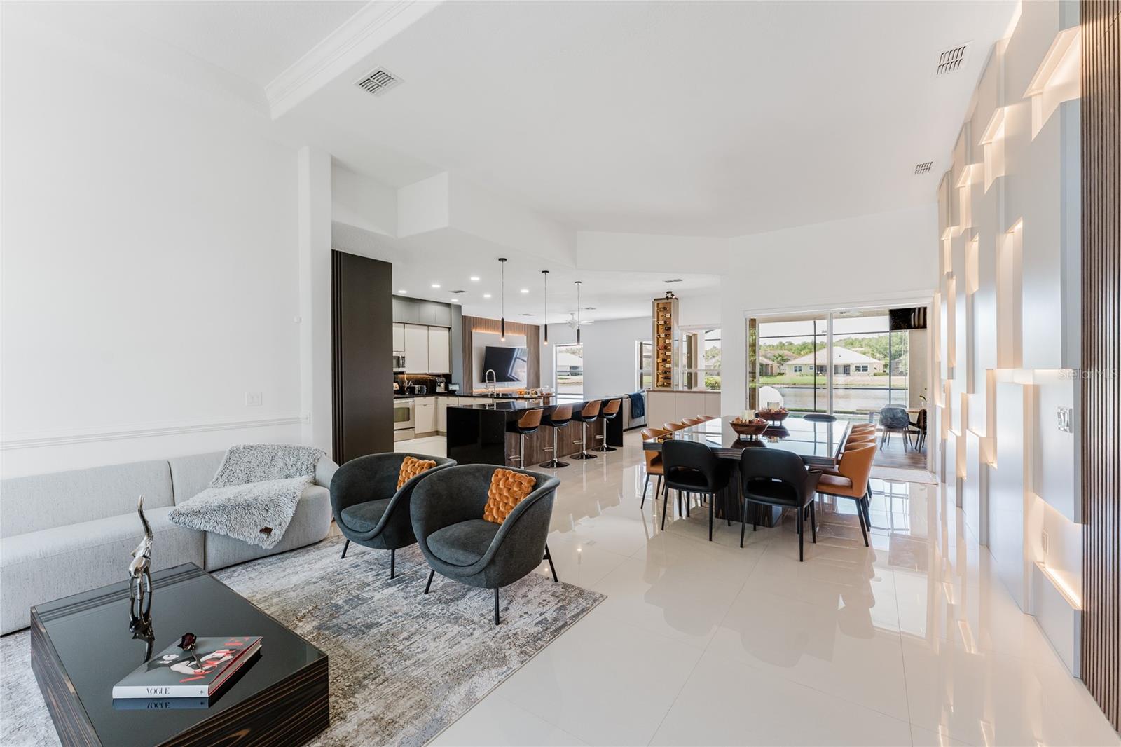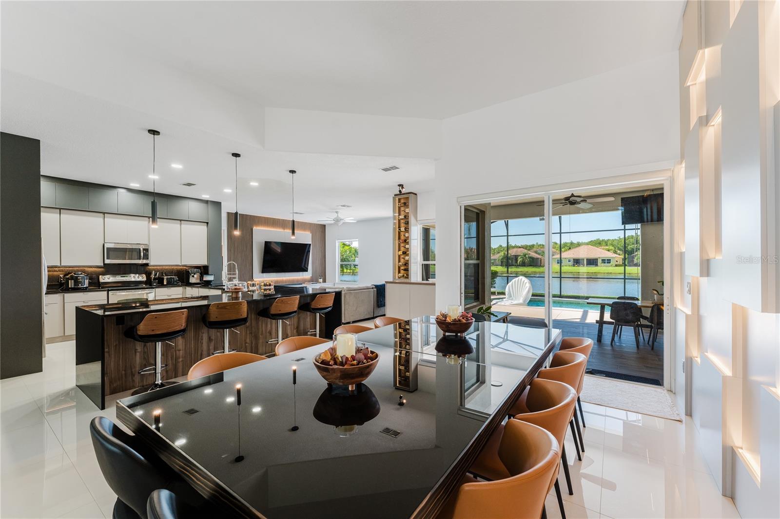 Casa moderna de 4 quartos com vista para a piscina e o lago – a apenas 17 minutos dos parques da Disney. Esta residência unifamiliar totalmente atualizada oferece a combinação perfeita de conforto, estilo e localização privilegiada. Situado em local tranquilo e fechado condomínio com poucas moradias, é ideal para quem busca qualidade de vida, privacidade e proximidade dos principais atrativos de Orlando. 3 quartos espaçosos + 1 quarto bônus 2 casas de banho completas (com potencial para adicionar uma 3ª) Planta aberta conectando cozinha, sala de jantar e áreas de estar. A garagem acomoda até 3 carros Tetos altos com excelente iluminação natural e circulação de ar Aproximadamente 90% da casa possui piso de porcelanato Quartos com carpete novo (2024) Nota 1: Este condomínio não permite aluguéis de curta duração ou temporada (Airbnb, etc.). O uso é estritamente residencial por parte do proprietário. Nota 2: Os móveis e decorações dos quartos não estão incluídos na venda. Tomadas USB integradas por toda parte. Toda a casa foi atualizada com iluminação LED para eficiência energética. Torneira de cozinha inteligente com sensor de temperatura servindo pias duplas. Vista para a água com uma incrível piscina/SPA. Agende agora uma exibição!