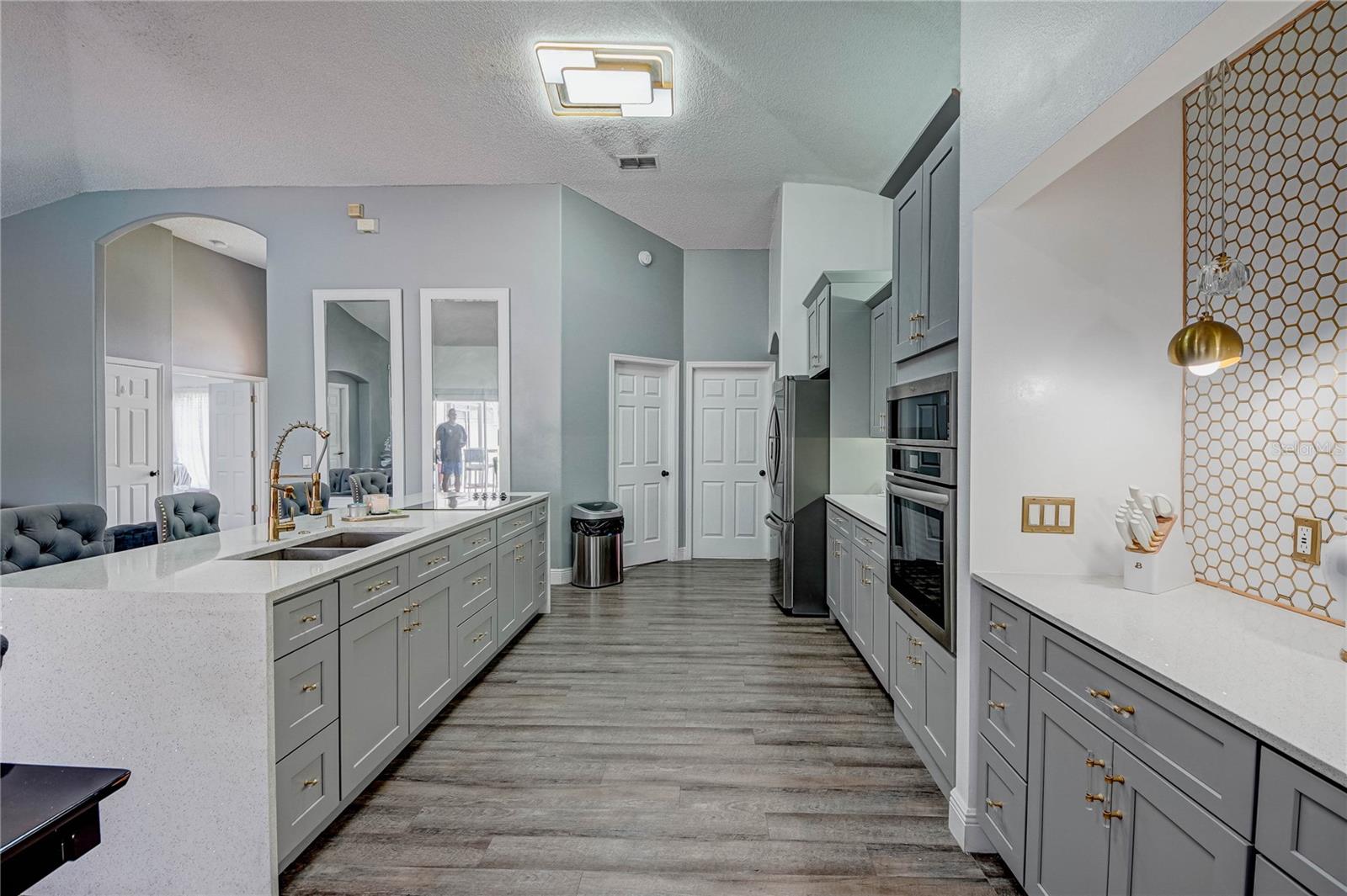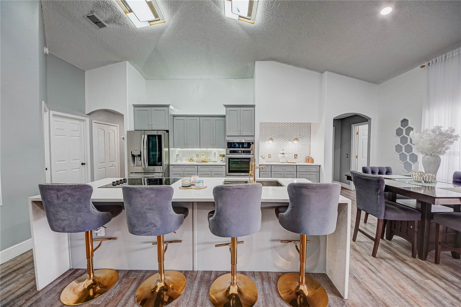 Lindamente atualizada de 6 quartos e horizonte de 3 banheiros, na área desejável de Poinciana! Situado em um lote grande e grande, esta propriedade espaçosa possui uma cozinha reformada impressionante com acabamentos modernos e uma geladeira inteligente com um aplicativo e uma tela de toque. No interior, desfrute de Catedral e tetos abobadados, pisos de ladrilhos nas áreas principais e o novo tapete sendo instalado nesta semana em um dos quartos. A suíte primária oferece um luxuoso banho de jardim com uma banheira de jacuzzi e um chuveiro separado, enquanto um banheiro conveniente e jack-jill apresenta pias duplas. As atualizações inteligentes da casa incluem iluminação automatizada e muito mais. Dois dos banheiros foram totalmente reformados, aumentando o apelo pronto para a casa. Ao ar livre, relaxe na piscina exibida com spa ou entretenha sob o pátio coberto com muito espaço no quintal. Convenientemente localizado perto de fazer compras, jantar, hospital, rodovias da Flórida e grandes estradas, com comodidades Hoa, incluindo parques, playgrounds e muito mais. Não perca a sua chance - faça o seu show particular hoje!