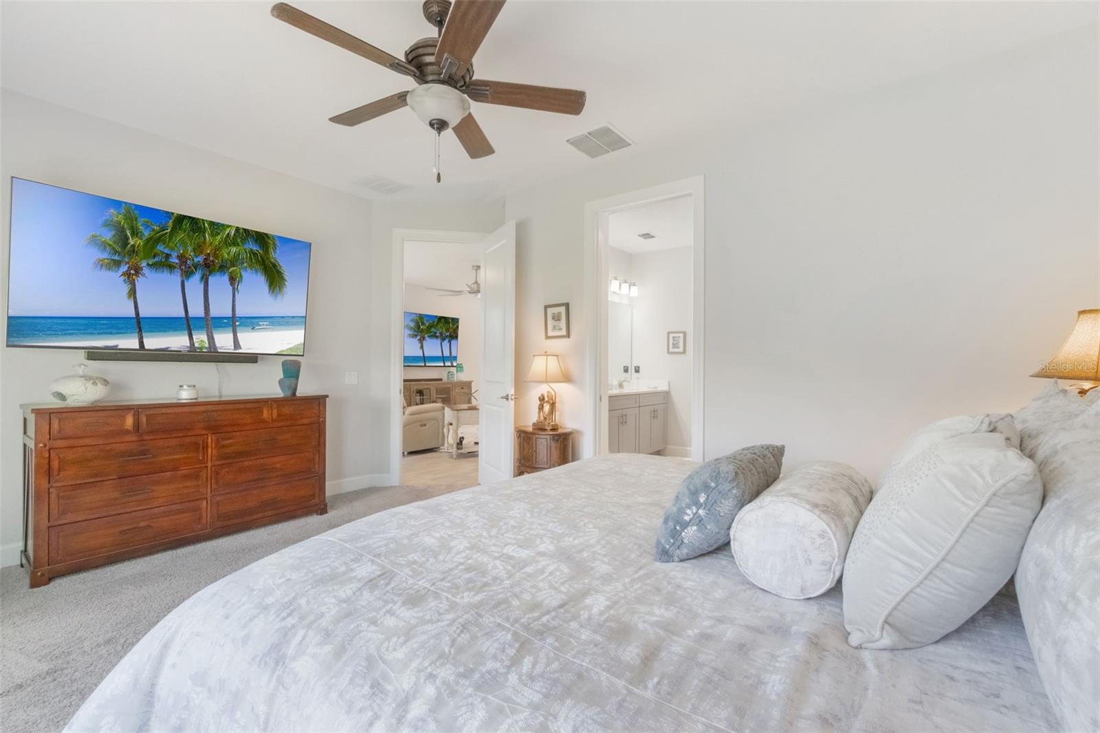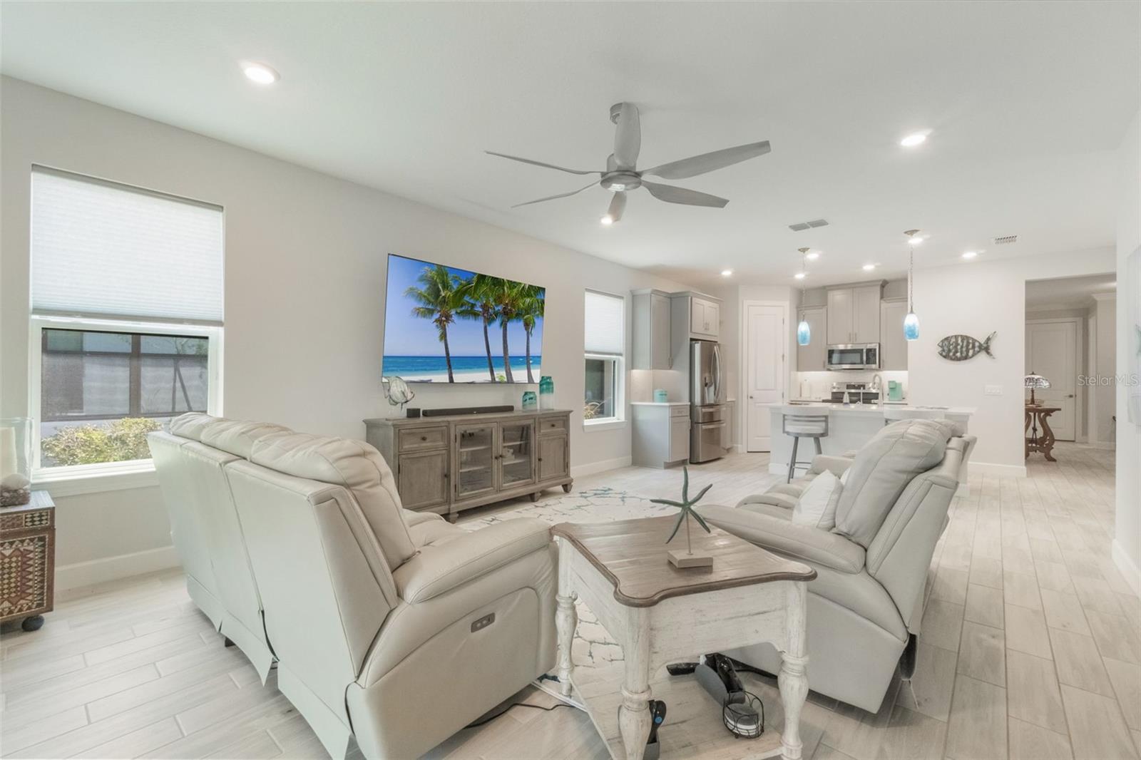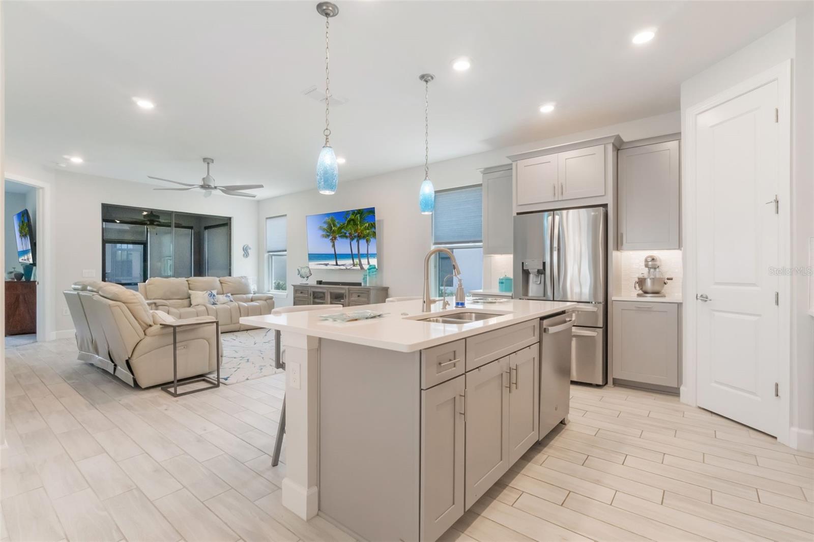 Bem-vindo a este modelo Allora pronto para mudança que oferece uma vista deslumbrante do lago! Construída em 2022, esta casa lindamente atualizada possui 1.655 pés quadrados de área útil, incluindo 2 quartos, 2 banheiros, um escritório privado e uma garagem para carrinhos de golfe. Meticulosamente mantida, a casa realmente se mostra como um modelo e inclui uma garagem estendida para estacionamento adicional para hóspedes. Ao entrar no hall de entrada, você encontrará uma espaçosa lavanderia convenientemente localizada à direita. As portas francesas abrem para um escritório doméstico. Continue até as áreas de cozinha, jantar e reunião de conceito aberto, todas perfeitamente posicionadas para capturar a vista do lago. A linda cozinha possui bancadas de quartzo, backsplash de azulejos, eletrodomésticos de aço inoxidável, iluminação sob o armário, lixeiras removíveis e lixeiras para reciclagem e armários de ilha adicionais. O piso de porcelanato com aparência de madeira se estende por toda a casa, complementado por iluminação pendente atualizada, iluminação embutida adicional e rodapés atualizados para um acabamento polido. A garagem é igualmente impressionante com piso revestido com epóxi. Um quarto secundário e um banheiro completo proporcionam conforto aos hóspedes, enquanto a suíte principal fica privadamente escondida na parte traseira da casa, oferecendo um retiro tranquilo completo com banheiro privativo e closet. Localizada a poucos passos do Village Center, esta casa faz parte da muito procurada comunidade Solivita, conhecida por suas excepcionais comodidades em estilo resort. Os moradores desfrutam de 14 piscinas externas aquecidas, piscina coberta e pista de caminhada, academias de ginástica de última geração, quadras de pickleball, quadras de tênis iluminadas, golfe, mais de 250 clubes, três restaurantes comunitários e feiras semanais de agricultores, todas as segundas e sextas-feiras. Convenientemente situado a apenas 30 minutos das principais atrações da Disney e de Orlando, com Publix, Aldi e Super Walmart a poucos minutos do portão principal. Em frente à entrada principal do Solivita fica o novo Poinciana Lakes Plaza, com uma excelente seleção de lojas e restaurantes, incluindo Sprouts Grocery, Ross, TJ Maxx, ULTA Beauty, Burlington, Rack Room Shoes, Petco, Hair Cuttery, Outback, 5 Guys, First Watch, atendimento de urgência, consultórios odontológicos e TD Bank. Esta casa excepcional oferece conforto e comodidade - não perca a oportunidade de torná-la sua!