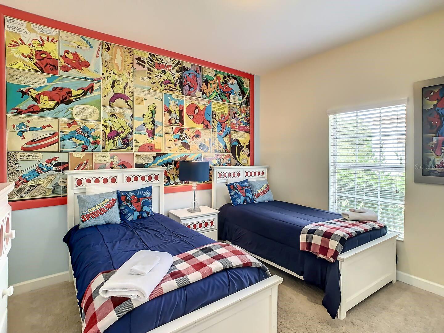 Totalmente mobiliado Townhome de 5 banheiros e 4 banheiros no condomínio fechado da comunidade de Storey Lake. This Disney-themed retreat features a modern open floor plan, upgraded kitchen with granite counters and 42” cabinets, two master suites, and a private screened-in heated pool. Themed bedrooms include Harry Potter, Toy Story, Mickey Mouse, Spiderman, and a Princess room. Storey Lake offers world-class amenities: heated pool, lazy river, dual water slides, splash park, mini golf, sports courts, fitness Center e um bar tiki.