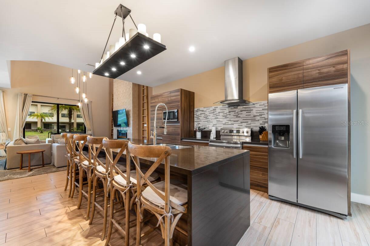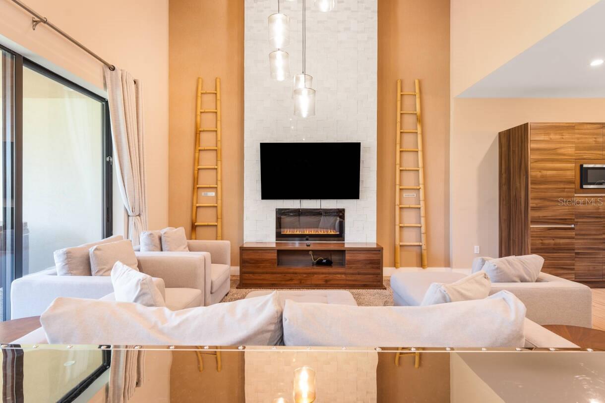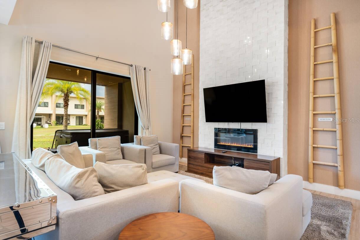 Entre no melhor retiro pronto para uso no Magic Village Views - totalmente mobiliado e com estilo requintado, tanto para aluguéis de curto prazo sofisticados quanto para residências primárias luxuosas. Afunde-se em sofás macios ao redor da lareira elétrica na ampla sala de estar de pé direito duplo. Prepare refeições gourmet na cozinha do chef, completa com todos os eletrodomésticos grandes e pequenos que você possa precisar. Cada uma das quatro suítes possui armários personalizados, decoração elegante e smart TVs. Do lado de fora, seu pátio privado possui churrasqueira embutida e capacidade para seis pessoas. Vendido com móveis, iluminação ambiente, luminárias premium e eletrônicos; basta trazer sua roupa de cama! Aproveite a piscina do condomínio fechado, a banheira de hidromassagem, as quadras de tênis e vôlei de areia, a academia e o parque infantil. Localizado a menos de 10 minutos das atrações da Disney e da US-192 – luxo e conveniência em um pacote perfeito.