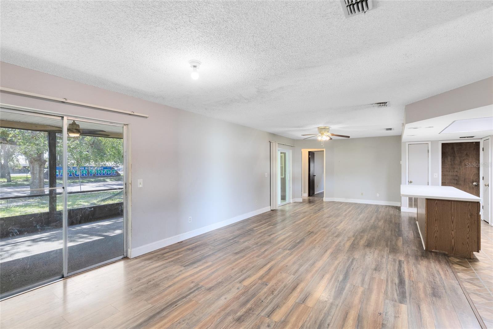 Bem-vindo a esta casa de 3 quartos e 2 banheiros na comunidade Oak Run de Kissimmee. Oferecendo 1.554 pés quadrados de área útil térrea, esta residência apresenta um layout aberto com uma espaçosa sala familiar, área para refeições e uma cozinha adjacente com uma grande ilha e geladeira de aço inoxidável. O design de quarto dividido oferece privacidade para a suíte principal, que inclui closet e banheiro privativo. Dois quartos adicionais compartilham um banheiro completo, ideal para famílias ou convidados. Portas de vidro deslizantes levam a um grande pátio com ventiladores de teto duplos - perfeito para relaxar ou se divertir enquanto aprecia a vista do quintal com árvores maduras. A casa também possui piso atualizado em todas as áreas de estar principais, garagem para dois carros, paisagismo novo e um telhado mais novo para maior tranquilidade. Convenientemente localizada perto de escolas, lojas, restaurantes e principais rodovias - sem HOA - esta propriedade é uma ótima opção para proprietários ou investidores que buscam conforto, conveniência e valor.