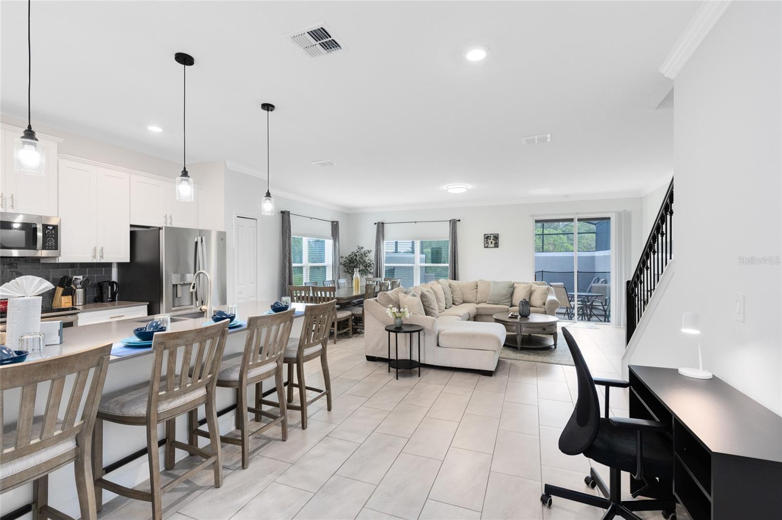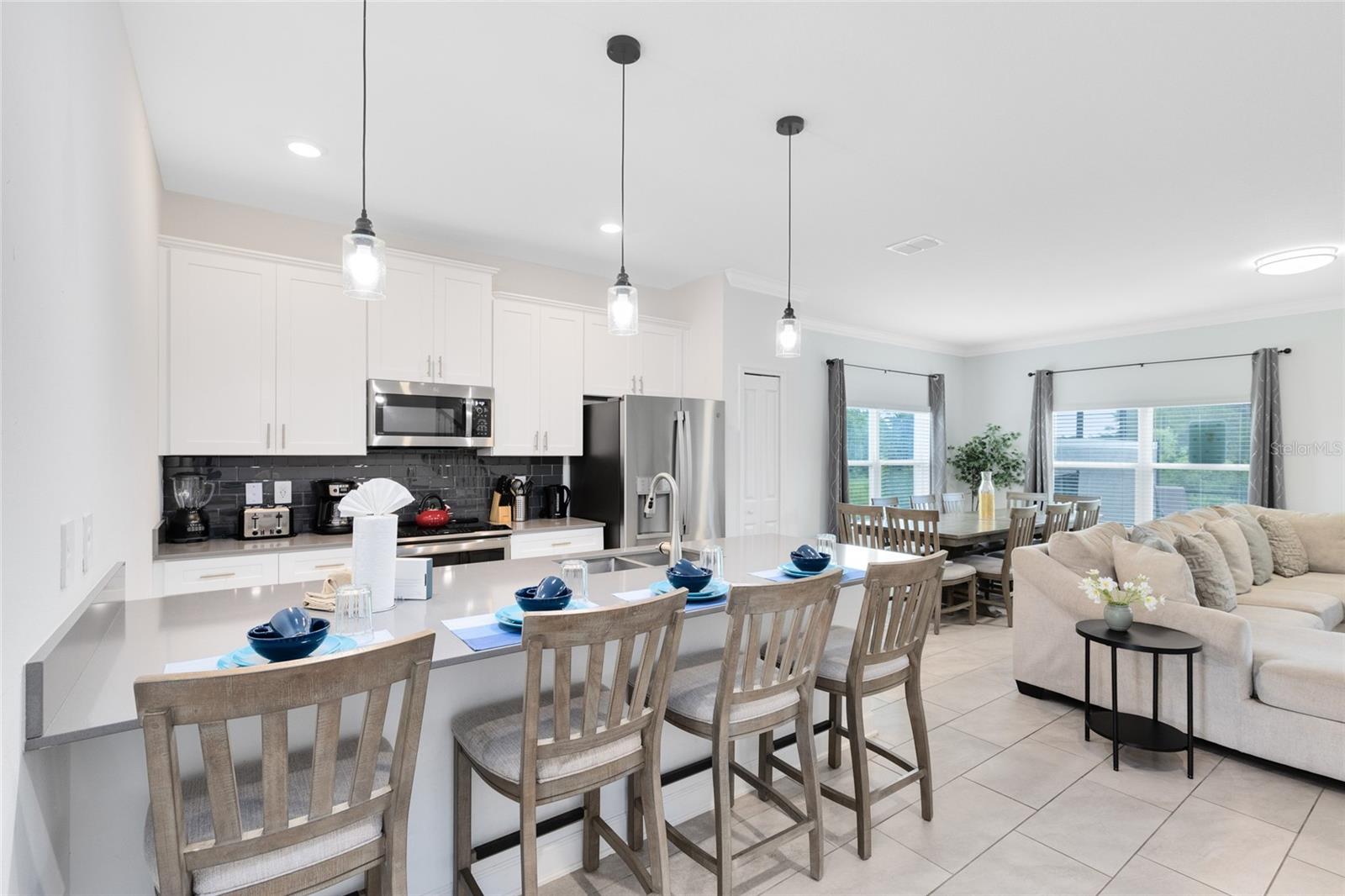 Bem-vindo a este lindamente projetado Townhome de 5 banheiros, com 4 banheiros, na unidade de canto de 4 banheiros, no altamente procurado Storey Lake Resort. Construído em 2022, esta casa combina acabamentos modernos, um layout aberto e comodidades imbatíveis do resort-tornando-a ideal como um retiro privado ou um aluguel de férias de alto desempenho. O primeiro andar apresenta uma área de estar de conceito aberto brilhante com piso de ladrilhos por toda parte. A cozinha do chef oferece bancadas em granito, utensílios de aço inoxidável, uma grande ilha com assentos de bar e iluminação pendente. A espaçosa área de jantar flui perfeitamente para a sala de estar, onde a luz natural entra através de grandes janelas e portas deslizantes, levando à piscina de respingos de tela privada e ao pátio coberto. Dois quartos no primeiro nível fornecem espaço flexível para hóspedes ou vida multigeracional. No andar de cima, a suíte master é um verdadeiro retiro com moldagem por coroa e um banheiro inspirado em spa com pias duplas e um chuveiro espaçoso. Dois quartos e banheiros adicionais no segundo andar garantem acomodações confortáveis para a família e os hóspedes. Detalhes atenciosos, como tetos altos e acabamentos modernos, elevam todos os quartos. Como parte do Storey Lake Resort, desfrute de comodidades de classe mundial, incluindo um parque aquático, lento rio, clube, fitness center, barra tiki e muito mais. Localizado a poucos minutos da Disney, Universal, Aeroporto Internacional de Orlando e compras e refeições, esta casa oferece conveniência e luxo. Esteja você procurando uma casa de férias, um aluguel produtor de renda ou um retiro pessoal elegante, esta propriedade entrega em todas as frentes.