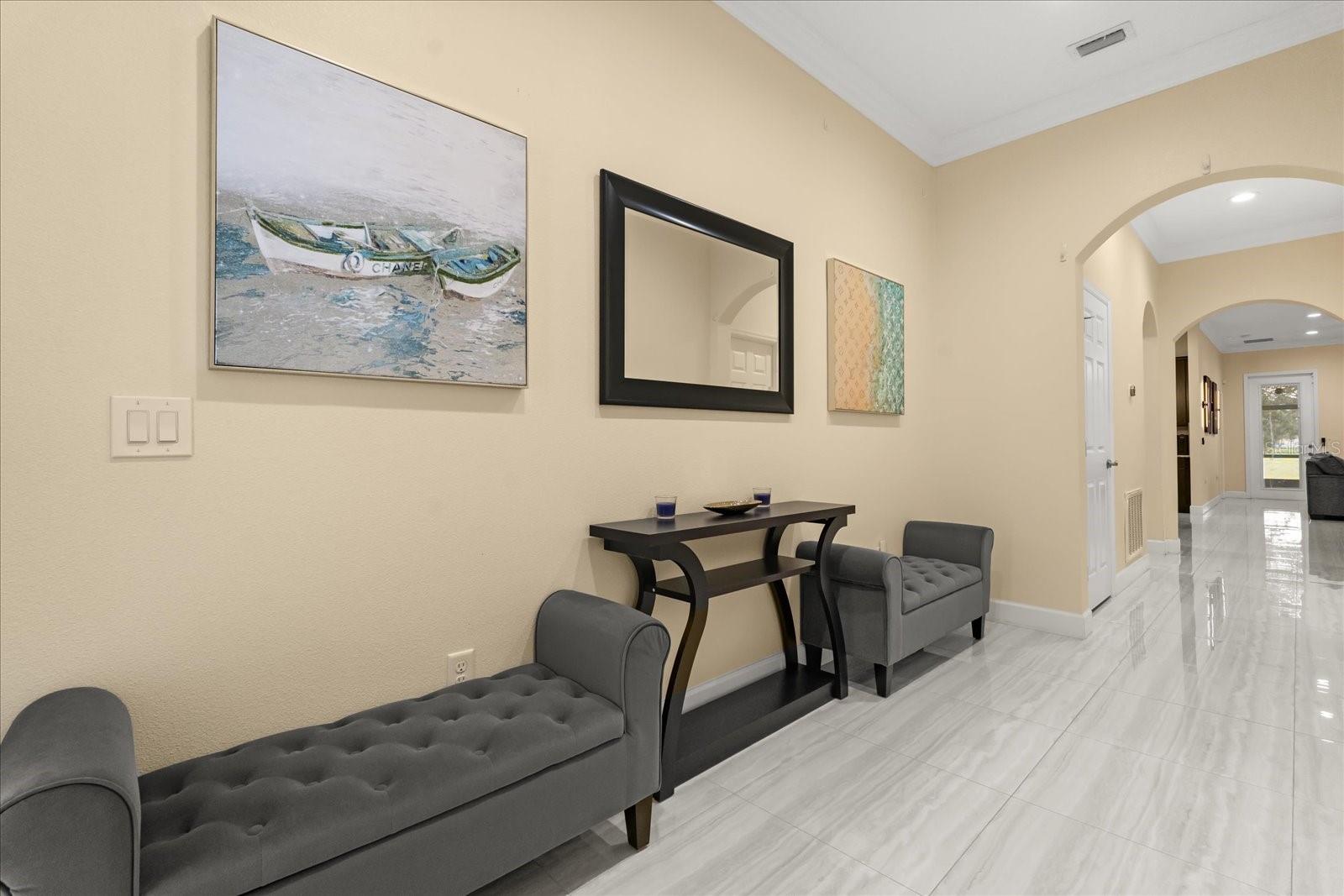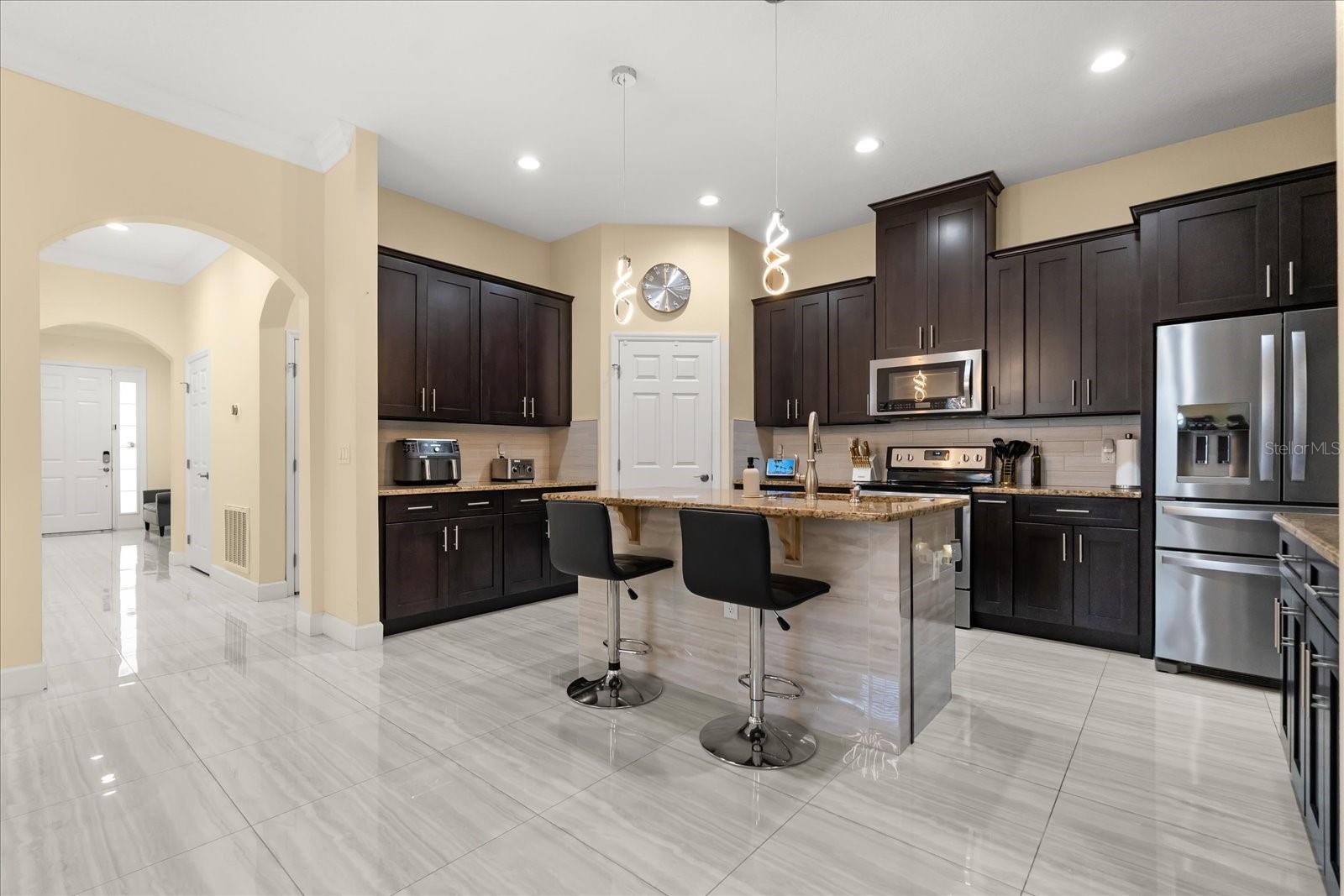 A casa mais nova do condomínio - construída sob medida em 2018 com acabamentos de designer e qualidade excepcional, oferecendo estilo moderno e artesanato refinado por toda parte. Esta requintada residência de quatro quartos e três banheiros combina elegância atemporal com conforto moderno no coração de Kissimmee. Uma entrada de automóveis pavimentada, garagem para dois carros, paisagismo bem cuidado e impressionante fachada de pedra criam uma primeira impressão impressionante. No interior, tetos altos, uma paleta neutra e porcelanato brilhante preparam o cenário para uma vida excepcional. Há muitos detalhes cuidadosos, incluindo armários embutidos personalizados no corredor, ideais como despensa de mordomo ou um mudroom bem equipado. O design de conceito aberto conecta perfeitamente uma área de jantar com iluminação natural a uma cozinha inspirada no chef com armários shaker, uma ilha central, iluminação contemporânea, eletrodomésticos de aço inoxidável, bancadas de granito e uma despensa generosa com acesso direto à lavanderia. A área adjacente exala elegância com uma parede de design e portas de vidro deslizantes que se abrem para o pátio coberto, oferecendo a vida interna e externa sem esforço da Flórida, com vista para o campo de golfe. A suíte principal é um santuário privativo com closet espaçoso, pia dupla, banheira de imersão no jardim, box de vidro sem moldura com azulejos de grife e toalete privativo. Dois quartos adicionais são conectados por um cobiçado banheiro Jack-and-Jill lindamente acabado com pias duplas e um chuveiro de vidro azulejado, enquanto uma quarta suíte de hóspedes com banheiro completo adjacente oferece conforto e privacidade para os visitantes. Ao ar livre, desfrute de vistas deslumbrantes do putting green do Remington Golf Club em seu quintal ou desfrute das comodidades em estilo resort da comunidade, incluindo piscina, quadras de tênis e vôlei. Desfrute de um sistema de filtragem e amaciante de água recém-instalado em toda a casa, avaliado em US$ 10.000. Perfeitamente posicionada a poucos minutos do The Oaks Shopping Center, do Lago Tohopekaliga e de refúgios na natureza, como Marsh Landing Adventures, esta residência também oferece a magia da Disney a menos de 30 minutos de distância, com acesso fácil à Florida's Turnpike. Isto é mais que uma casa, é um estilo de vida. Agende sua exibição privada hoje e experimente tudo o que esta propriedade excepcional em Kissimmee tem a oferecer.