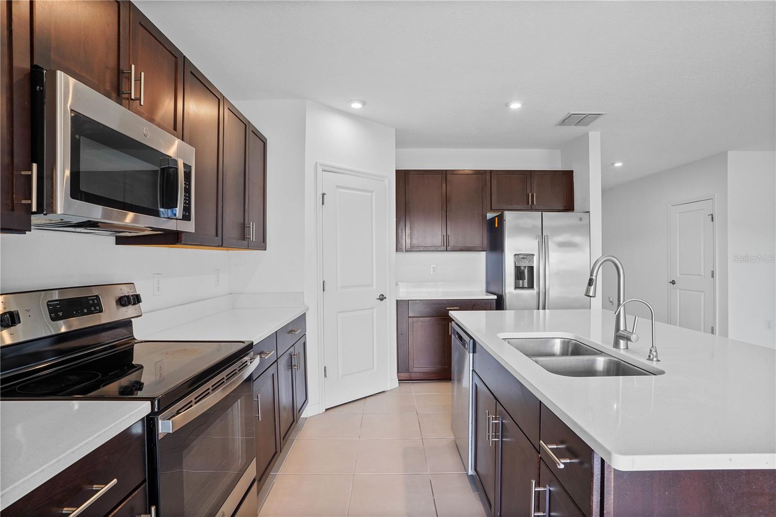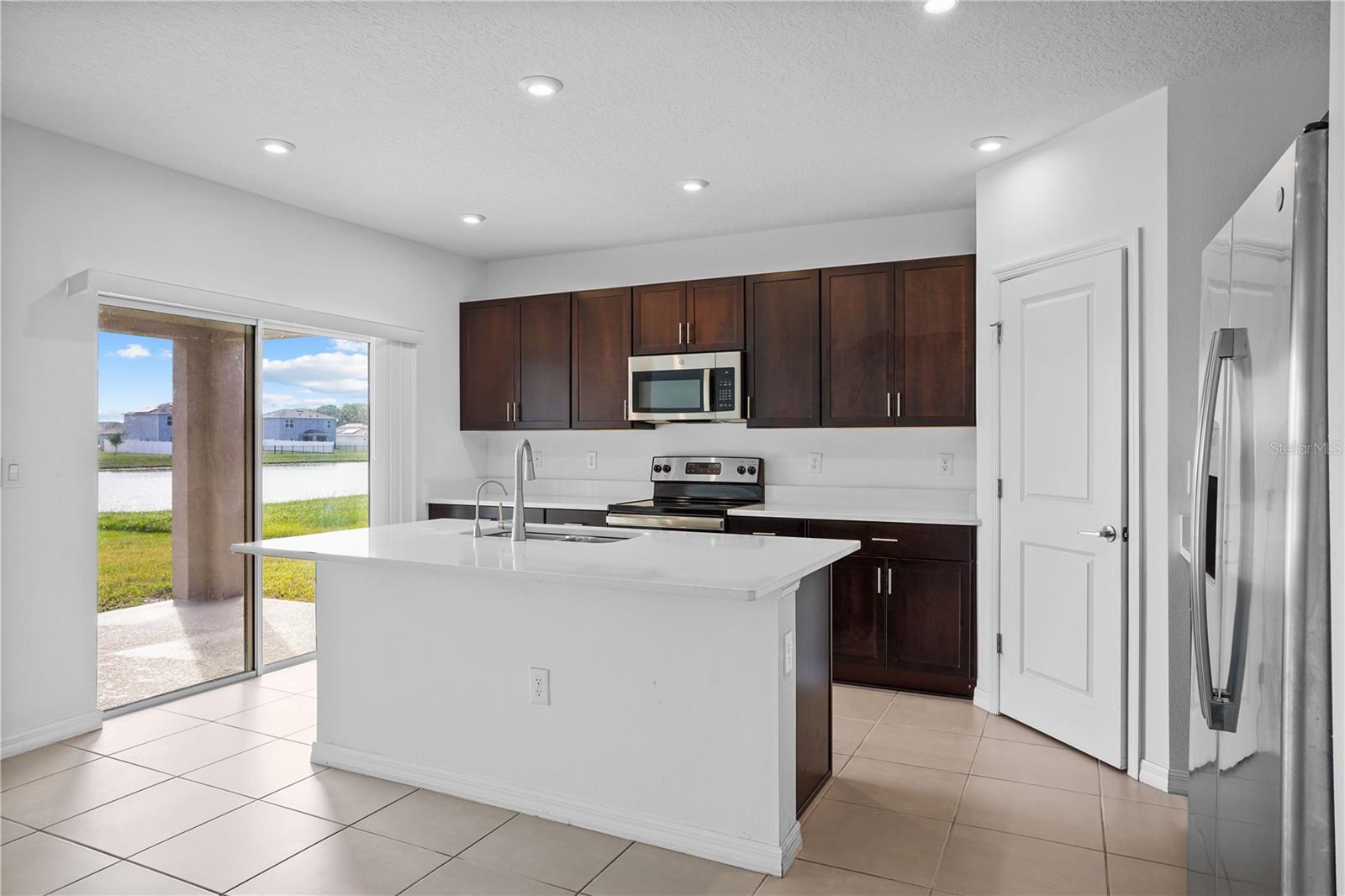 O vendedor pagará 6.000 para custos de fechamento do comprador. Venha visitar esta casa Taylor Morrison pronta para morar, 4 quartos e 2 banheiros com vista para a ÁGUA! A entrada frontal convida você a um conceito aberto e luminoso, com piso de cerâmica neutro e uma planta aberta e arejada, perfeita para reuniões familiares. A cozinha gourmet possui bancadas de quartzo, uma ilha grande, eletrodomésticos de aço inoxidável, despensa e amplo armazenamento nos armários de madeira de 42". A casa contemporânea oferece uma planta de quarto dividida em 3 vias, com 2 quartos e banheiro completo na entrada e outro quarto de tamanho generoso fora do corredor para a garagem. O quarto principal privado, mas espaçoso, tem um grande closet e banheiro privativo está localizado na parte de trás da casa com vista para o lago. Algumas outras grandes características incluem carpete macio nos quartos, lavanderia interna com cozinha completa tamanho WD e espaçosa garagem para 2 carros. Este lote de um quarto de acre possui paisagismo exuberante, área de estacionamento e um pátio coberto nos fundos, ideal para entreter ou desfrutar do pôr do sol. A Comunidade Stepping Stone está convenientemente localizada perto do aeroporto, parques temáticos, hospital e praias!