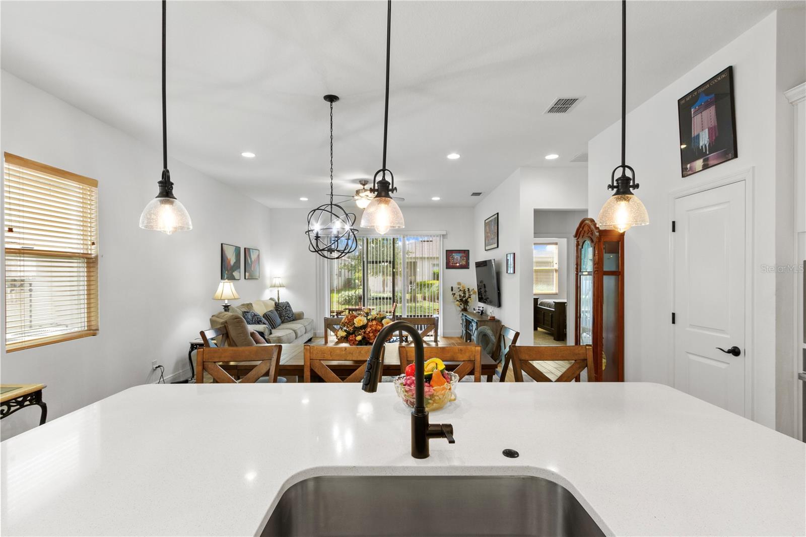 Localizada na comunidade de mais de 55 pessoas do Four Seasons at Orlando, em Kissimmee, esta linda casa de 2 quartos e 2 banheiros oferece conforto moderno, design atencioso e vida tranquila na Flórida. A planta baixa de conceito aberto é destacada pelo piso de cerâmica com aparência de madeira em todas as áreas de estar principais, iluminação elegante e atualizada e uma cozinha deslumbrante com armários em dois tons, bancadas de quartzo, uma grande ilha central e elegantes luzes pendentes. A espaçosa sala grande é aprimorada por portas de vidro multi-deslizantes atualizadas de 2,10 metros que se abrem para o pátio traseiro, criando um fluxo interno-externo perfeito para relaxar ou se divertir. Desfrute da vida ao ar livre o ano todo com uma entrada frontal e um pátio traseiro com tela, oferecendo ar fresco e conforto, ao mesmo tempo que mantém as pragas afastadas. No interior, a suíte do proprietário oferece um retiro privado com carpete macio, um amplo closet e um banheiro luxuoso com bancadas de quartzo, um amplo box amplo com assentos e barras de apoio de segurança cuidadosamente instaladas para maior conveniência. O quarto de hóspedes e o segundo banheiro atualizado são perfeitos para visitantes, enquanto a lavanderia dedicada inclui uma lavadora e secadora Samsung de última geração com pedestais de armazenamento. Cada detalhe desta casa reflete qualidade e conforto, tornando-a um destaque em uma comunidade conhecida por suas comodidades em estilo resort, incluindo piscina aquecida e spa, quadras de tênis e pickleball, academia de ginástica, golfe, clubhouse, bilhar, bocha, salão de festas e diretor de atividades em tempo integral - tudo isso em um bairro fechado a poucos minutos de restaurantes, lojas e entretenimento de Orlando. Este é o melhor estilo de vida da Flórida.