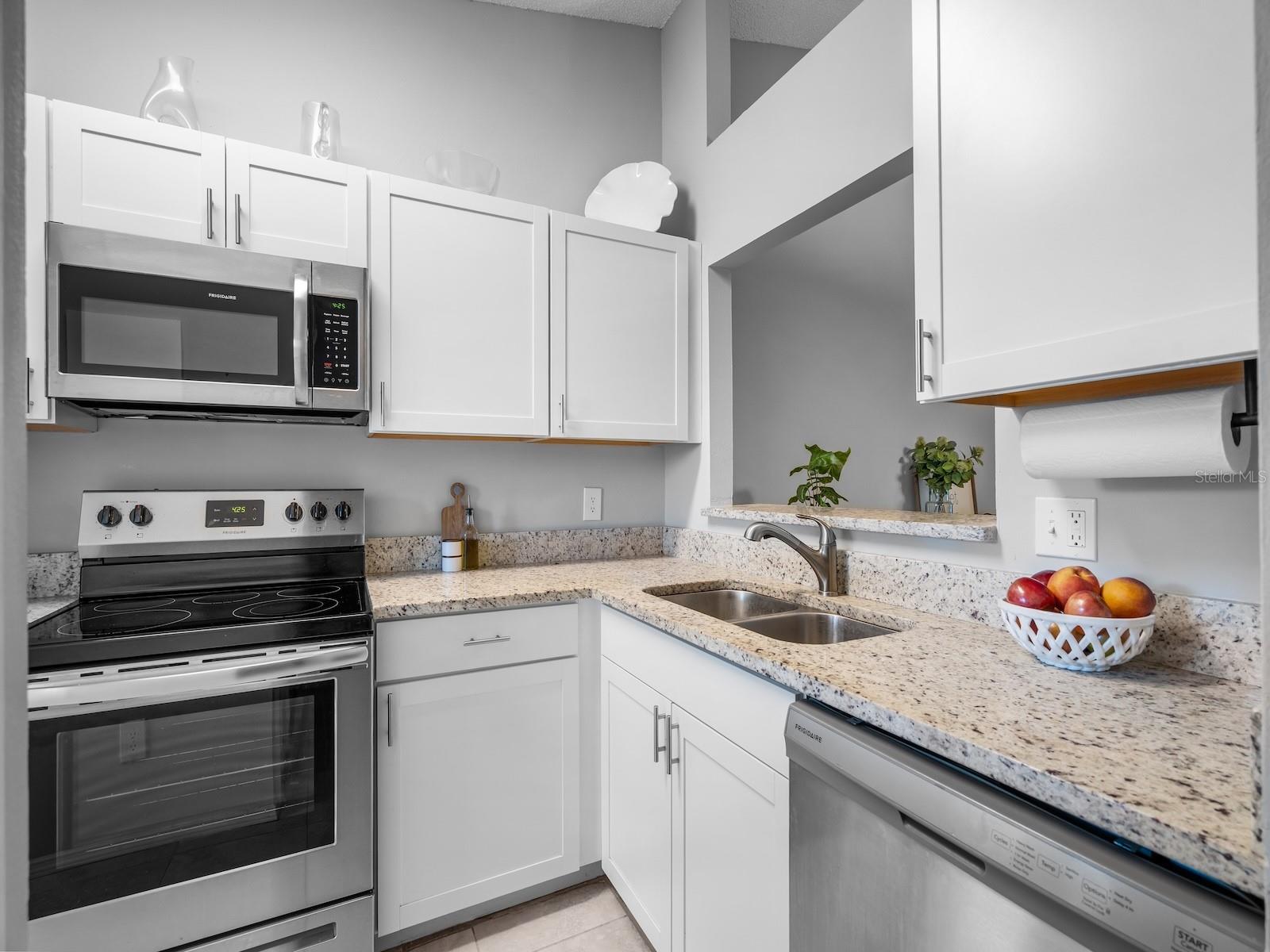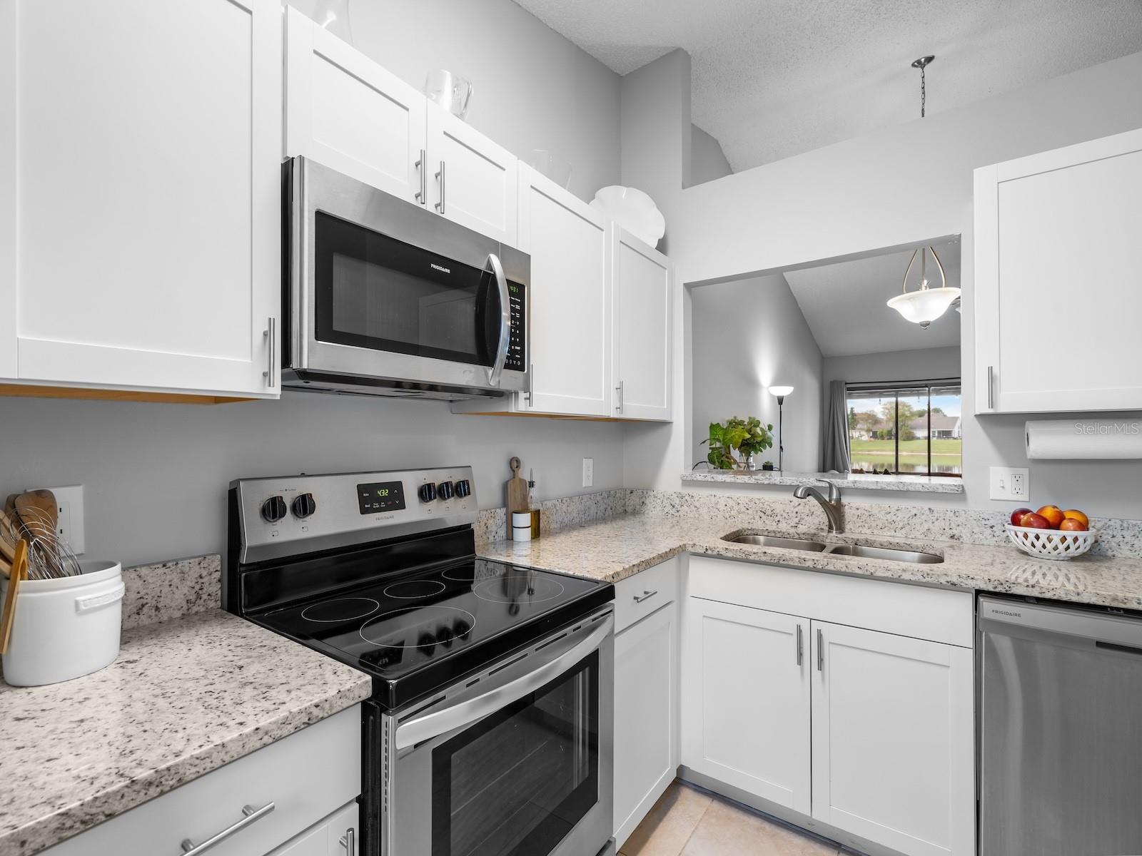 Bem-vindo a Kissimmee! Esta casa deslumbrante oferece a combinação perfeita de conforto e conveniência, a apenas uma curta distância de carro de belas praias, lojas, restaurantes, da Florida's Turnpike e da 417. Com fácil acesso às principais rodovias, seu deslocamento diário será muito fácil. Com 2 quartos e 2 banheiros com mais de 900 pés quadrados de área aquecida, esta casa oferece uma das melhores vistas para o mar do bairro - visível da sala de estar, do quarto principal e da varanda com tela. As atualizações recentes incluem pintura interior fresca e piso de cerâmica em todas as áreas principais e úmidas. Ambos os quartos possuem carpete mais novo para maior conforto. A cozinha foi completamente renovada com armários e ferragens mais novos, bancadas de granito, pia e torneira e eletrodomésticos de aço inoxidável, incluindo lava-louças, micro-ondas e fogão.