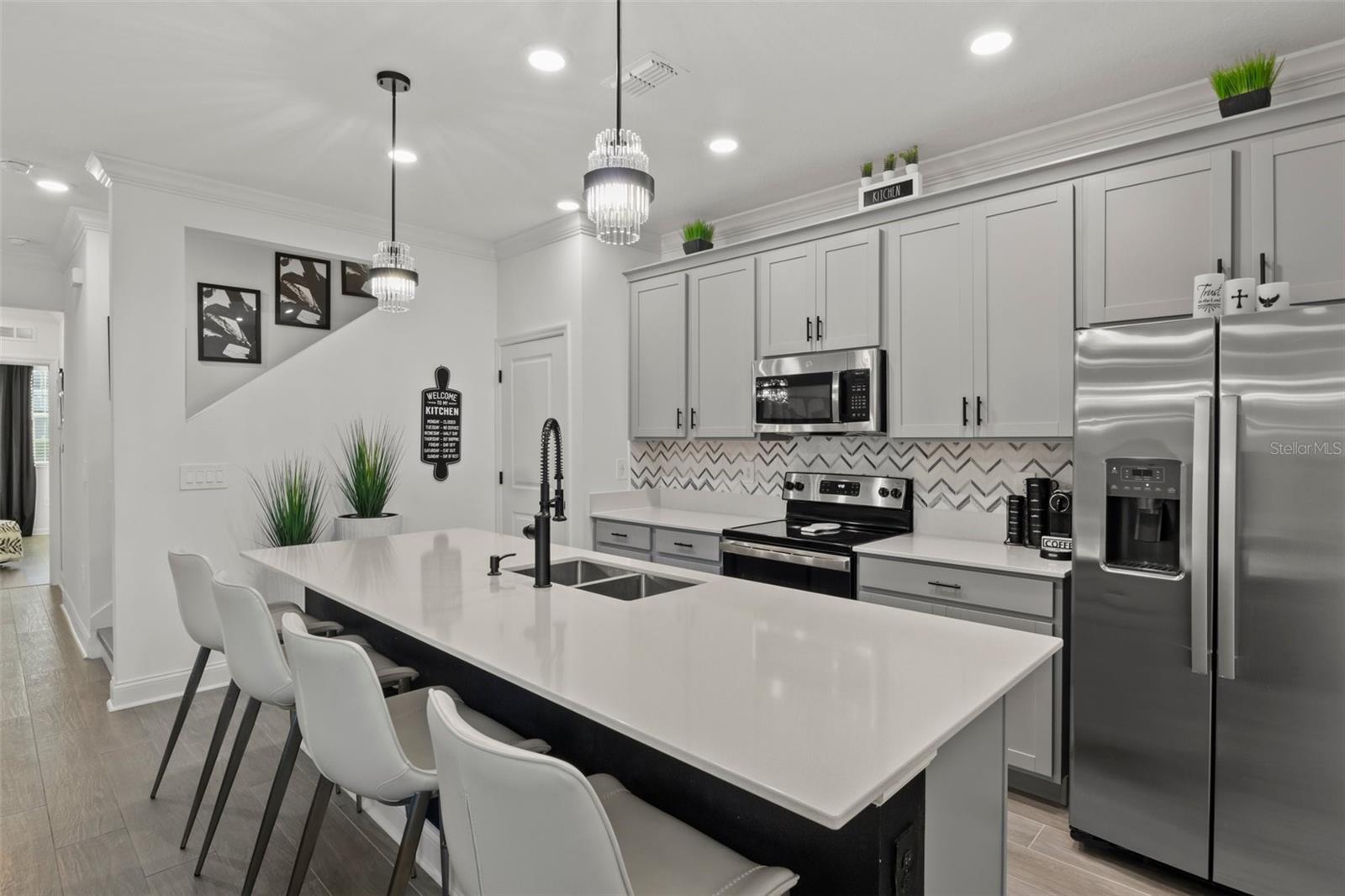 Localização !! Localização !! Localização !!! Não perca a oportunidade de possuir esta bela moradia na Tohoqua Master Community com toda a comunidade masterplan baseada em bem-estar perto de Neo City, FL, com sede em tecnologia. As famílias poderão desfrutar de diversas comodidades neste condomínio estabelecido, incluindo piscina, quadras esportivas e academia. A área local possui várias escolas, incluindo a Neptune Middle School, pontos de referência, shopping centers, parques de diversões e proximidade com o Aeroporto Internacional de Orlando e a Turnpike. Esta espaçosa residência urbana de dois andares é o sonho de qualquer artista, apresentando uma passarela aberta e um pátio que oferece infinitas oportunidades para diversão ao ar livre. No primeiro andar encontra-se uma área de estar aberta, juntamente com a suite do proprietário com casa de banho de inspiração spa. No andar de cima estão todos os três quartos secundários e uma área tecnológica conveniente. Foi meticulosamente atualizado com ventiladores de teto, lustres de luxo, sancas, rodapé de 5", torneiras de água, maçanetas, todas as ferragens, respingos nas costas e o MAIS IMPORTANTE SEM TAPETE, vinil de luxo. Aproveite o pátio interno dos alfeneiros. Os móveis podem ser vendidos na totalidade.