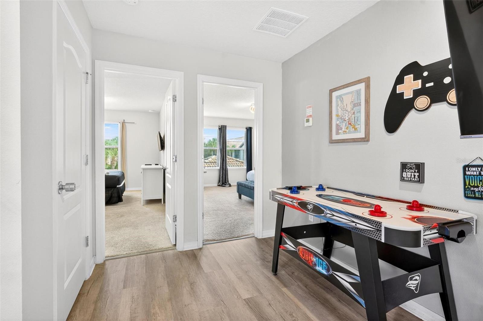 Não perca o tour em 3D e os tours em vídeo! Esta residência urbana de 5 quartos e 4,5 banheiros está localizada no condomínio fechado de Windsor, em Westside, a apenas 3 minutos a pé do Amenity Center. Construído em 2016, oferece aproximadamente 2.265 pés quadrados de área útil com um layout inteligente e de conceito aberto. Como unidade final, proporciona maior privacidade, janelas extras e luz natural abundante em toda a casa. O imóvel está sendo vendido totalmente mobiliado, com muitos móveis atualizados nos últimos dois anos, conferindo-lhe um visual clean, moderno e atualizado. Uma garagem para um carro oferece armazenamento conveniente, estacionamento ou transforma-se em uma sala de jogos para seus convidados. O primeiro andar possui uma área de estar espaçosa e iluminada que flui perfeitamente para a área de jantar e cozinha - perfeita para reuniões e entretenimento. A cozinha inclui eletrodomésticos de aço inoxidável, bancadas de granito, armários atualizados de 42" e um grande balcão para café da manhã. Um quarto no primeiro andar com banheiro privativo oferece conveniência para hóspedes ou familiares. Portas deslizantes de vidro se abrem para uma piscina privativa com tela e varanda coberta com banheiro privativo e meio bônus, criando um retiro confortável ao ar livre, ideal para relaxar após um dia nos parques. No andar de cima, a suíte principal inclui closet e banheiro privativo com pias duplas e box amplo. Três quartos adicionais e dois banheiros completos oferecem espaço generoso para familiares ou convidados. O loft é configurado como uma segunda área de estar e sala de jogos, oferecendo um espaço divertido e versátil para entretenimento - perfeito tanto para residência em família quanto para aluguel por temporada. A apenas alguns minutos a pé da casa estão as principais comodidades do resort - um clube de 10.000 pés quadrados com piscina estilo resort, rio lento, zona de mergulho, academia, fliperama, quadras esportivas, bar tiki e restaurante no local. Windsor at Westside oferece a experiência completa de resort com segurança fechada 24 horas, terrenos bem cuidados e uma atmosfera comunitária vibrante. Convenientemente localizada perto das principais rodovias, lojas e restaurantes de classe mundial, a propriedade fica a apenas 15 minutos de carro do Walt Disney World Resort, tornando-a a escolha ideal para uso pessoal, uma casa de férias ou um investimento de aluguel de curto prazo de alto desempenho.
