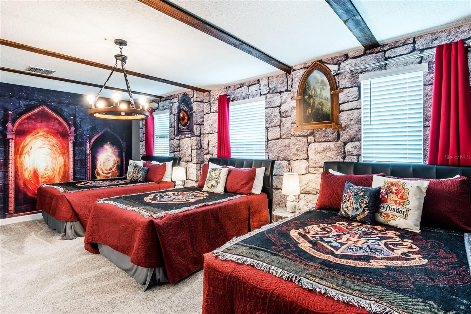 Descubra esta extraordinária casa mobiliada por designers no Storey Lake Resort de classe mundial em Kissimmee. A apenas 8 minutos a pé do The Bronson Club, esta propriedade construída em 2021 oferece um quintal pitoresco com vista para um lago sereno - proporcionando belas vistas abertas raramente encontradas na comunidade. Totalmente pronta para uso e com estilo profissional, esta casa de luxo possui um portfólio excepcional de design de interiores, tornando-a ideal como aluguel de curto prazo de alto desempenho ou como retiro de férias premium a poucos minutos do Walt Disney World. Entre em um espaço de conceito aberto repleto de decoração moderna, paredes elegantes e luz natural abundante. A cozinha do chef possui bancadas de quartzo, eletrodomésticos de aço inoxidável, armários de 42 polegadas e uma ilha espaçosa com capacidade para seis pessoas, fluindo perfeitamente para uma grande área de jantar perfeita para reuniões. O entretenimento é elevado em todos os níveis. A sala multifuncional no primeiro andar foi transformada em uma sala de jogos envolvente com tema Super Mario, com mesa de sinuca, air hockey, estação de jogos e lounge. No andar de cima, um loft de mídia com tema de super-heróis oferece a melhor experiência em filmes e jogos, perfeito para hóspedes de todas as idades. Os quartos temáticos criam uma experiência de destaque para os hóspedes e aumentam o apelo de reserva, apresentando quartos Frozen, Harry Potter, Star Wars e Minecraft lindamente projetados. Várias suítes king e quartos decorados com bom gosto oferecem roupas de cama premium, móveis coordenados, smart TVs e paletas de cores aconchegantes e acolhedoras. A área externa oferece o estilo de vida quintessencial da Flórida, com piscina e spa privativos, varanda coberta, área para refeições ao ar livre e deck. Localizada em um dos principais destinos de férias da Flórida Central, esta casa inclui acesso a comodidades de classe mundial: piscinas em estilo resort, rio lento, toboáguas, parque aquático, academia, bar tiki, vôlei de areia, minigolfe, aluguel de caiaque e muito mais. A poucos minutos da Disney, das principais rodovias, lojas e restaurantes.
