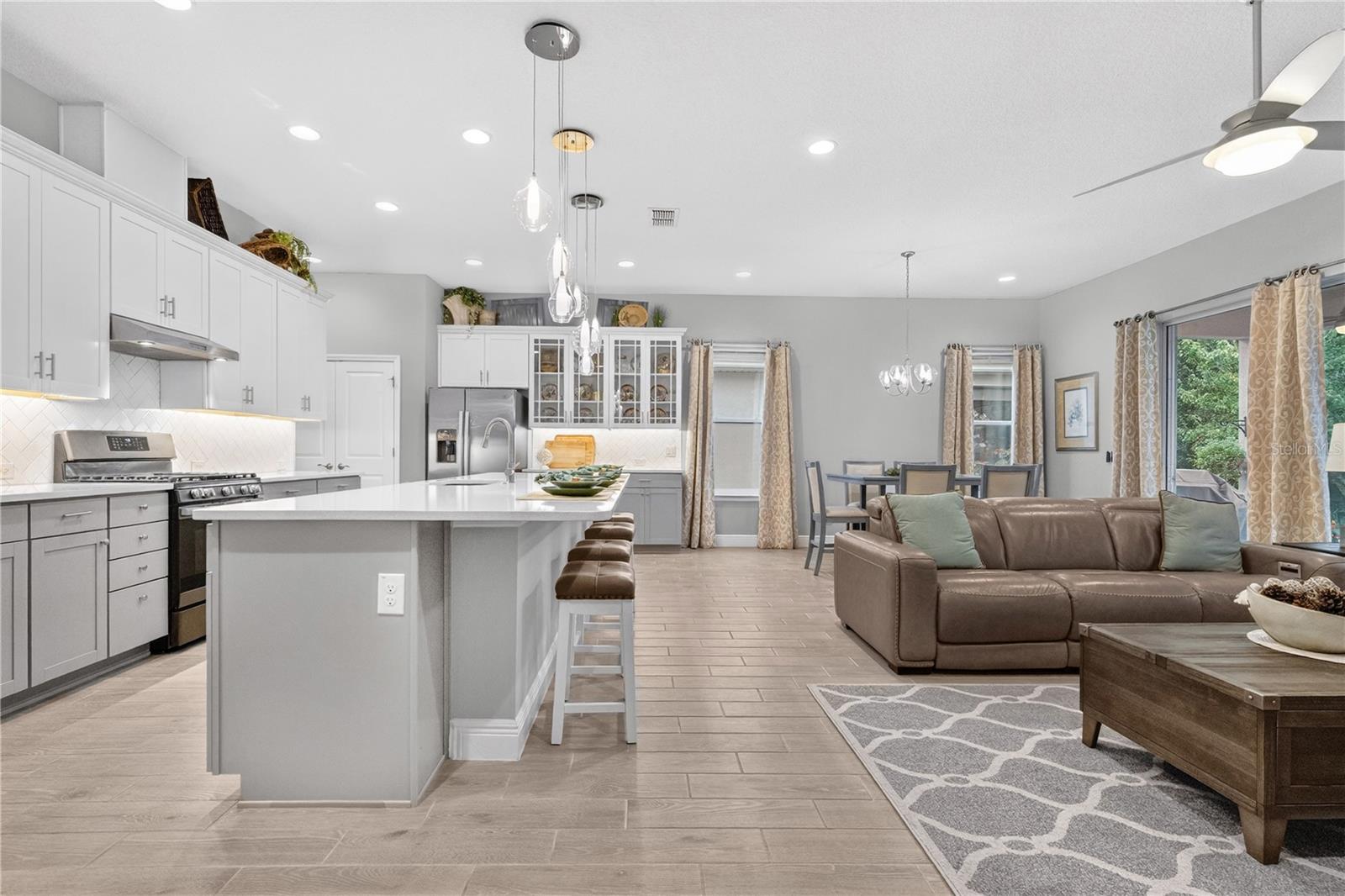 Localizada no condomínio fechado com mais de 55 pessoas do Four Seasons at Orlando, esta casa de 3 quartos e 2 banheiros oferece uma mistura de atualizações atenciosas, luz natural e um ambiente privado sem vizinhos traseiros. Projetada com um layout de conceito aberto, a área de estar principal flui facilmente da cozinha para o espaço de reunião, criando um ambiente convidativo para a vida cotidiana. A cozinha possui iluminação pendente importada da Itália, armários superiores de 42 polegadas e bancadas de quartzo por toda parte. A lavanderia atualizada oferece armazenamento adicional valioso com cinco armários superiores, três armários inferiores, uma pia de aço inoxidável e espaço de trabalho de quartzo correspondente, ideal para organização e funcionalidade. A luz natural realça o interior da casa, conferindo a cada espaço uma sensação arejada e confortável. A parte traseira da propriedade se abre para um ambiente tranquilo, sem casas vizinhas diretamente atrás dela, oferecendo maior privacidade. O Four Seasons at Orlando está situado em conexão com o Hilton Mystic Dunes Resort & Golf Club e oferece acesso a uma variedade de comodidades, incluindo um clube de 12.000 pés quadrados, academia de ginástica, estúdio de movimento, sala de artes e ofícios, bilhar, piscina externa e quadras de pickleball, tênis e bocha. Os residentes também têm acesso ao campo de golfe profissional adjacente de 18 buracos e ao restaurante e bar no local. Um diretor de atividades em tempo integral coordena eventos, aulas e clubes ao longo do ano, criando oportunidades de conexão e recreação. A localização da comunidade perto da SR-429, I-4, restaurantes, lojas, instalações de saúde e atrações da Flórida Central – incluindo uma curta distância de carro do Walt Disney World – oferece acesso conveniente a destinos locais e regionais. Esta propriedade oferece uma casa de baixa manutenção dentro de uma comunidade rica em comodidades projetada para uma vida ativa. Este não vai durar muito, então entre em contato com seu corretor de imóveis e marque sua consulta hoje mesmo.