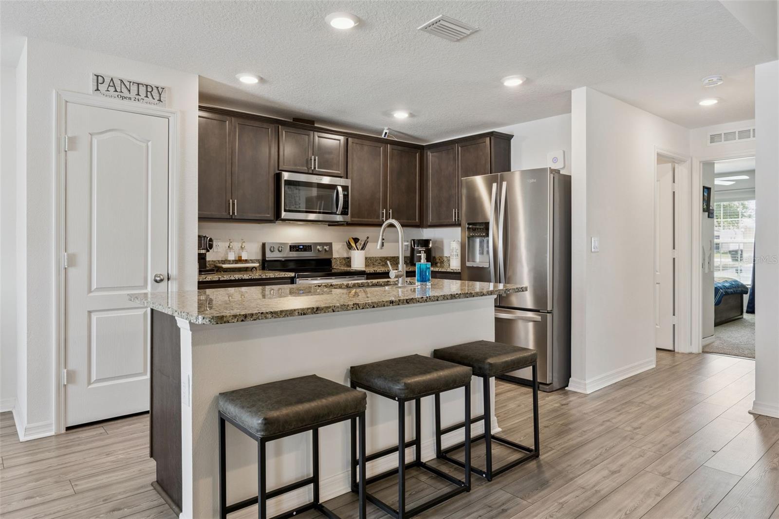 Bem-vindo a esta residência térrea lindamente projetada que oferece a combinação perfeita de conforto e flexibilidade com 3 quartos, além de um versátil quarto flexível que pode ser facilmente convertido em um 4º quarto. Entre em uma planta baixa aberta e convidativa, onde o luxuoso piso de pranchas de vinil flui pelas principais áreas de estar, criando uma sensação moderna e contínua. A cozinha funciona como o coração da casa, com bancadas em granito, armários abundantes, uma despensa espaçosa e uma ilha na altura do balcão com assentos com vista para as amplas áreas de estar e jantar, ideais tanto para a vida cotidiana quanto para entretenimento. Cuidadosamente projetada com um layout de quarto dividido, a suíte principal e a sala flexível são posicionadas de forma privada longe dos quartos secundários, oferecendo maior privacidade e infinitas possibilidades de como o espaço pode ser usado, seja como home office, sala de jogos, área de fitness ou quarto de hóspedes. A suíte principal oferece um retiro relaxante com um grande banheiro privativo completo com pia dupla, bancadas de quartzo e box amplo. Os quartos secundários são bem dimensionados e cuidadosamente posicionados, enquanto o banheiro adicional também apresenta bancadas de quartzo para uma aparência coesa e atualizada. Desfrute da vida interna e externa com portas de vidro deslizantes que levam a uma varanda com tela e um quintal totalmente cercado que oferece maior flexibilidade com acesso por portão em ambos os lados, incluindo uma entrada dupla. Os destaques adicionais incluem uma espaçosa lavanderia, garagem para dois carros e uma acolhedora entrada frontal coberta. Localizada na área de Poinciana, os moradores têm acesso a uma variedade de comodidades comunitárias, incluindo parques, playgrounds, quadras esportivas, academias de ginástica e instalações recreativas, além de lojas, restaurantes e conveniências diárias nas proximidades, tornando esta casa uma combinação ideal de conforto e estilo de vida.