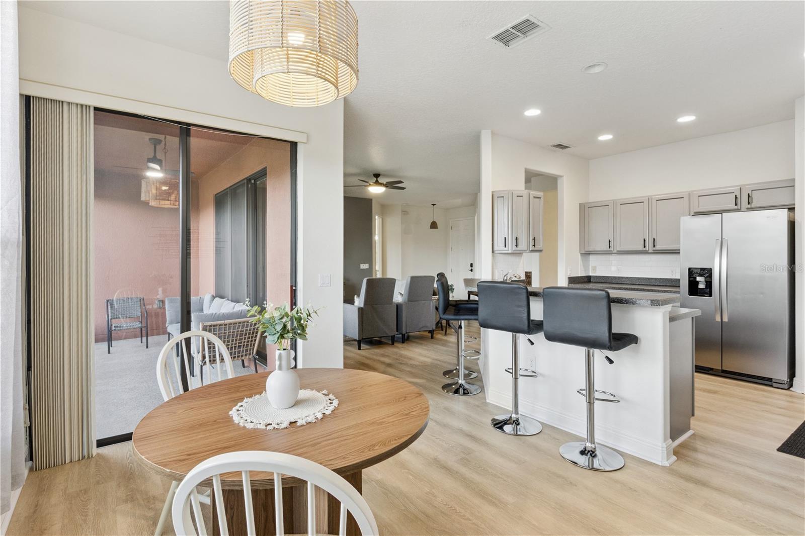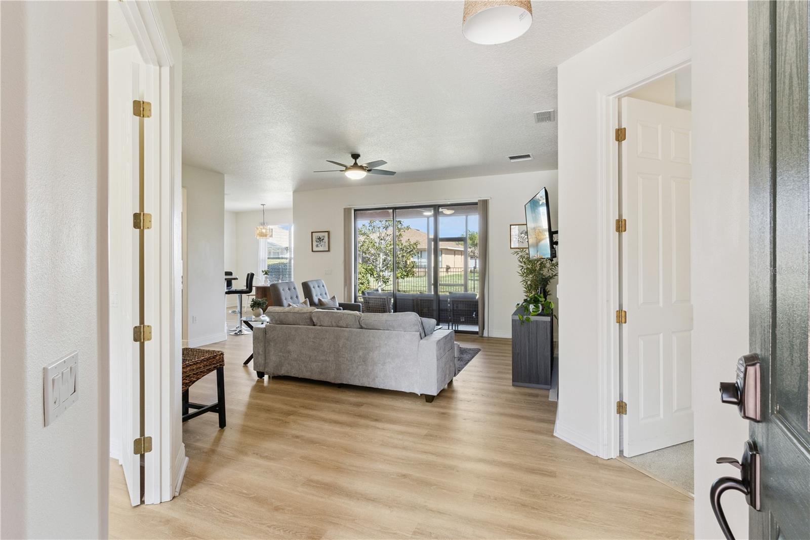 Bem-vindo à impressionante e planejada comunidade de Solivita, com mais de 55 anos, onde a vida em estilo resort encontra o conforto de casa. Esta residência mobiliada de 2 quartos e 2 banheiros, impecavelmente mantida e com um salão versátil, oferece 1.548 pés quadrados de espaço cuidadosamente projetado, perfeito tanto para residência em tempo integral quanto para um retiro sazonal. A partir do momento em que você entra, você será recebido pelo ambiente acolhedor e pelos acabamentos de bom gosto da casa, criando uma atmosfera de elegância casual. A planta baixa de conceito aberto flui perfeitamente, oferecendo uma mistura harmoniosa de funcionalidade e estilo. No coração da casa há uma espaçosa sala que se conecta facilmente à área de jantar e a uma cozinha bem equipada - ideal para noites tranquilas e reuniões animadas. A cozinha possui modernos eletrodomésticos de aço inoxidável, armários abundantes e uma conveniente barra de café da manhã, combinando estilo e praticidade para a vida cotidiana e divertida. A suíte primária privada é um retiro sereno afastado das principais áreas de estar. Oferece um amplo closet e um banheiro privativo lindamente projetado com um espaçoso chuveiro. Um segundo quarto está perfeitamente situado para os hóspedes, com fácil acesso a um banheiro completo. A sala flexível oferece infinitas possibilidades - ideal como recanto de leitura, escritório doméstico ou estúdio criativo. As características adicionais incluem lavanderia completa e garagem anexa, aumentando a comodidade do dia a dia. Saia para desfrutar de sua varanda coberta e protegida - perfeita para café da manhã, refeições ao ar livre ou noites tranquilas. O quintal cercado e paisagístico oferece privacidade e charme, ampliando seu espaço ao ar livre. Esta casa de baixa manutenção permite que você passe mais tempo aproveitando tudo o que Solivita tem a oferecer. Situado em 4.300 acres de jardins paisagísticos exuberantes, Solivita é um dos principais condomínios fechados da Flórida Central para adultos ativos. Uma entrada vigiada 24 horas oferece acesso controlado para maior privacidade, enquanto uma ampla coleção de comodidades atende a todos os interesses. Os moradores desfrutam de piscinas aquecidas internas e externas, academias de ginástica de última geração e trilhas para caminhada e ciclismo. Os entusiastas do golfe vão adorar o premiado Stonegate Golf Club, que possui dois campos profissionais de 18 buracos. Os amantes dos esportes também podem aproveitar as quadras de tênis, pickleball, bocha, shuffleboard e campos de softball. Além da recreação, Solivita é um centro social vibrante, oferecendo mais de 200 clubes e grupos de interesse que vão desde arte e fotografia até jardinagem e dança. Restaurantes no local, um mercado de bairro e mercados regulares de agricultores mantêm as conveniências diárias ao seu alcance, enquanto concertos, festivais sazonais e eventos comunitários promovem amizades e conexões duradouras. Idealmente localizada a apenas uma curta distância de carro das atrações, restaurantes e instalações médicas de classe mundial de Orlando, esta casa oferece uma rara mistura de conforto, charme e vida em estilo resort - tudo dentro dos portões de Solivita. Isto é mais do que apenas uma casa. É um estilo de vida.