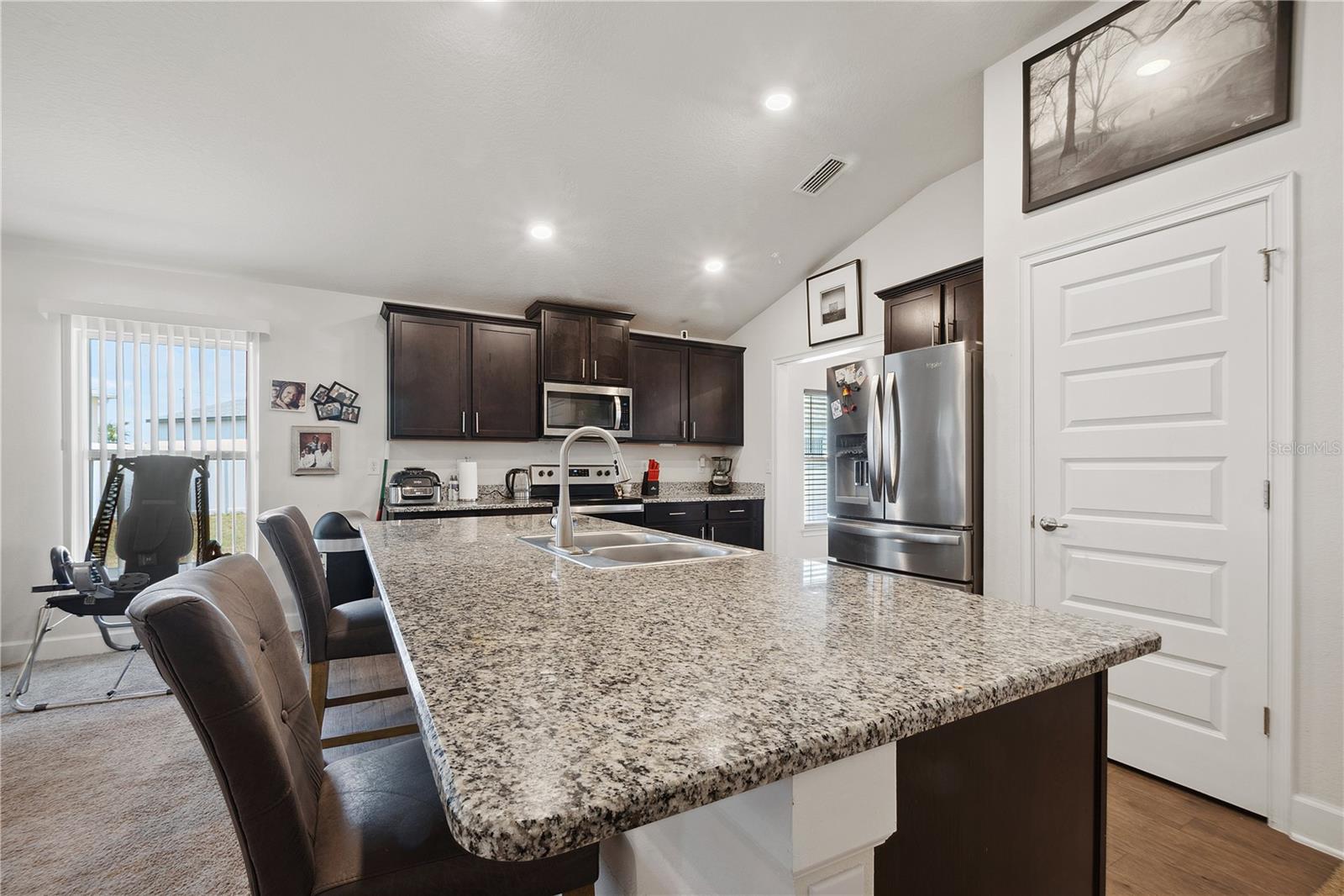 Bem-vindo ao 703 Colville Place — uma residência lindamente decorada onde o conforto encontra o estilo no coração de Poinciana. A partir do momento em que você entra, você é recebido por um espaço luminoso e de conceito aberto, aprimorado por acabamentos elegantes e um fluxo contínuo que eleva a vida cotidiana. Grandes janelas convidam à entrada de luz natural, criando um ambiente acolhedor e convidativo. A cozinha serve como peça central da casa, oferecendo armários ricos, balcão generoso e um layout projetado para cozinhar e entreter com facilidade. As áreas de jantar e de estar adjacentes criam o cenário perfeito para reuniões, celebrações ou noites relaxantes em casa. A espaçosa suíte principal oferece um retiro privado luxuoso com closet e banheiro privativo projetado para oferecer conforto e tranquilidade. Quartos adicionais oferecem versatilidade para a família, convidados ou um escritório particular. Saia para um quintal sereno com um pátio coberto - um lugar ideal para relaxar, jantar ao ar livre ou desfrutar de noites tranquilas na Flórida durante todo o ano. Localizada em uma comunidade tranquila e bem cuidada, esta casa tem acesso conveniente às principais comodidades de Poinciana, incluindo piscinas em estilo resort, academias de ginástica, parques, trilhas para caminhada e muito mais. Uma mistura perfeita de elegância, funcionalidade e vida na Flórida – bem-vindo ao 703 Colville Place.