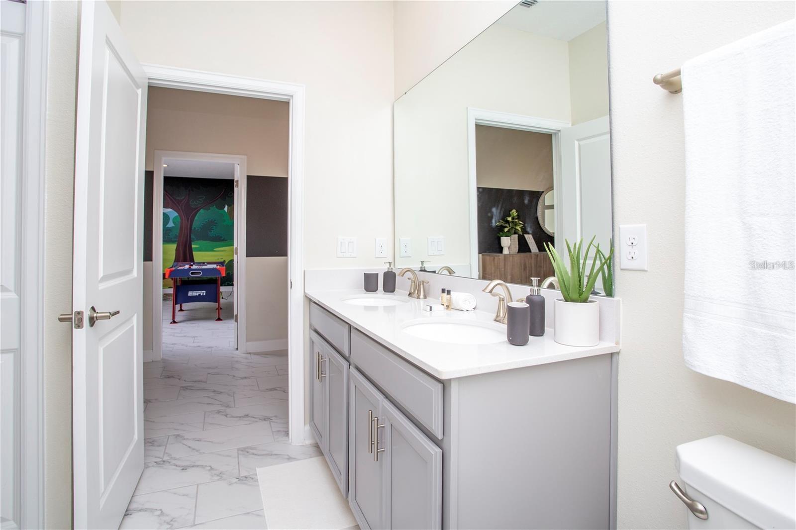 Bem -vindo ao seu melhor escapadela no Storey Lake Resort! Este notável santuário de 7 quartos e 5 banheiros oferece luxo incomparável, fornecendo um retiro inesquecível a poucos momentos do mundo encantador da Disney. Entre em um refúgio espaçoso com um layout aberto conectando perfeitamente a ampla área de estar, o espaço de jantar e uma cozinha gourmet adornada com bancadas em granito e utensílios de aço inoxidável. Tons suaves em toda a residência promovem uma atmosfera arejada e convidativa, enquanto a ilha da cozinha oferece assentos adicionais para reuniões com entes queridos. A suíte primária é um oásis sereno, com amplo espaço e um closet para sua conveniência. No andar de cima, um loft versátil aguarda, perfeito para relaxamento ou entretenimento. Cada quarto é generosamente proporcionado, garantindo que todos gostem de seu próprio refúgio privado durante a sua estadia. Saia do seu paraíso isolado-uma área de piscina exibida mostrando um spa aquecido para o relaxamento final. Revestar o sol da Flórida em completa reclusão, criando memórias que durarão a vida inteira. Como residente do exclusivo Storey Lake Resort, esta casa de férias concede acesso a uma variedade de comodidades. O clube do resort possui um bar/grade tiki, aluguel de canoas/caiaques, um rio preguiçoso, fitness center, golfe em miniatura, uma piscina serena, bloco de respingos, slide duplo, quadra de vôlei e quadra de esportes. É mais do que apenas uma residência; É uma experiência imersiva. O que realmente distingue esta casa é o seu requintado design de interiores, remanescente de uma casa modelo com sofisticação e talento incomparáveis. Totalmente mobiliado e equipado, serve como cenário perfeito para suas férias. A conveniência é fundamental, com a propriedade situada a poucos minutos da entrada do Disney World e a uma curta distância do Aeroporto Internacional de Orlando, International Drive, SeaWorld, Universal Studios e os shoppings premium. Não deixe este retiro extraordinário passar por você. Organize sua visualização hoje e se divertir com a vida refinada no seu melhor. As férias dos seus sonhos aguardam!
