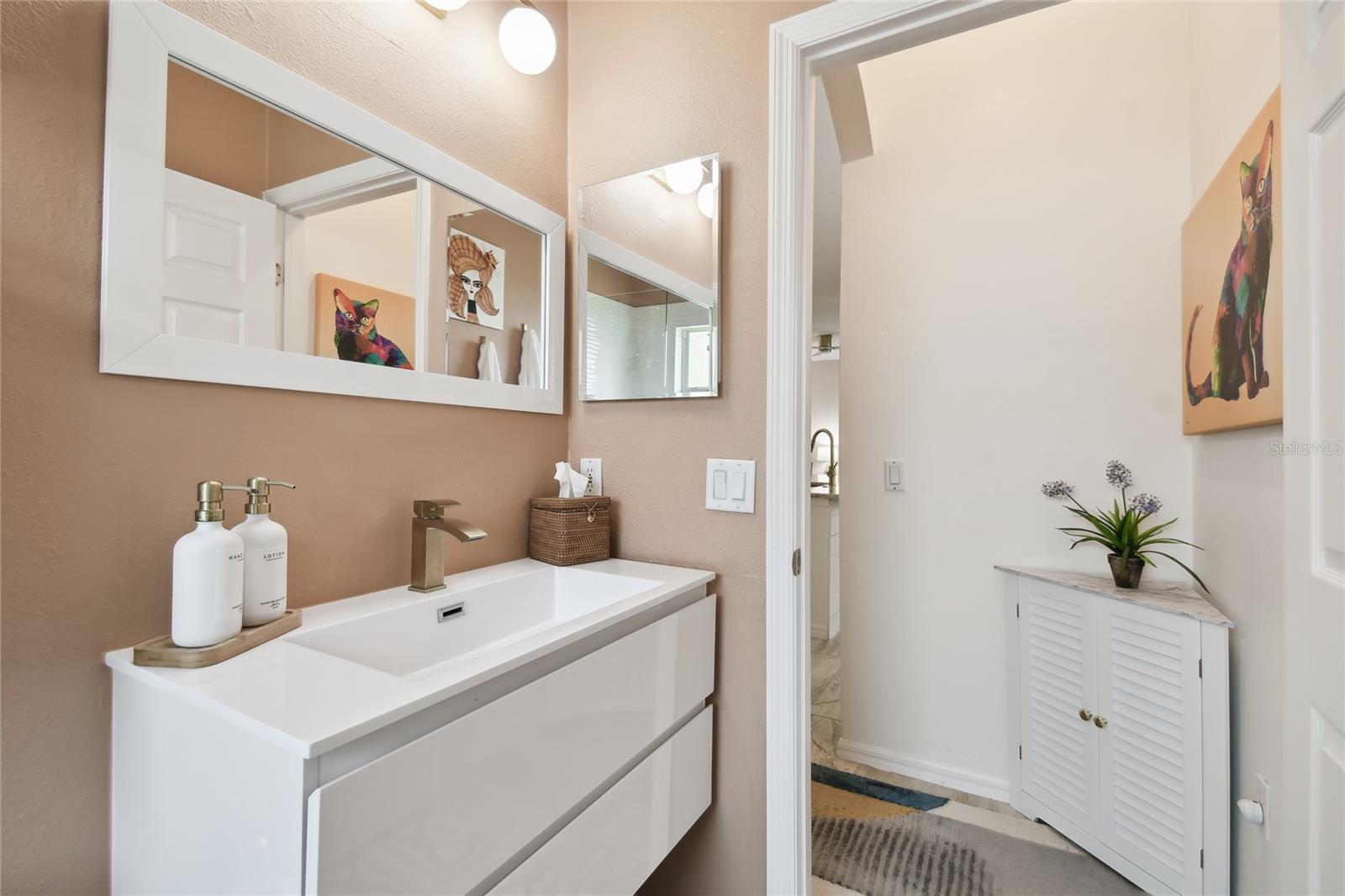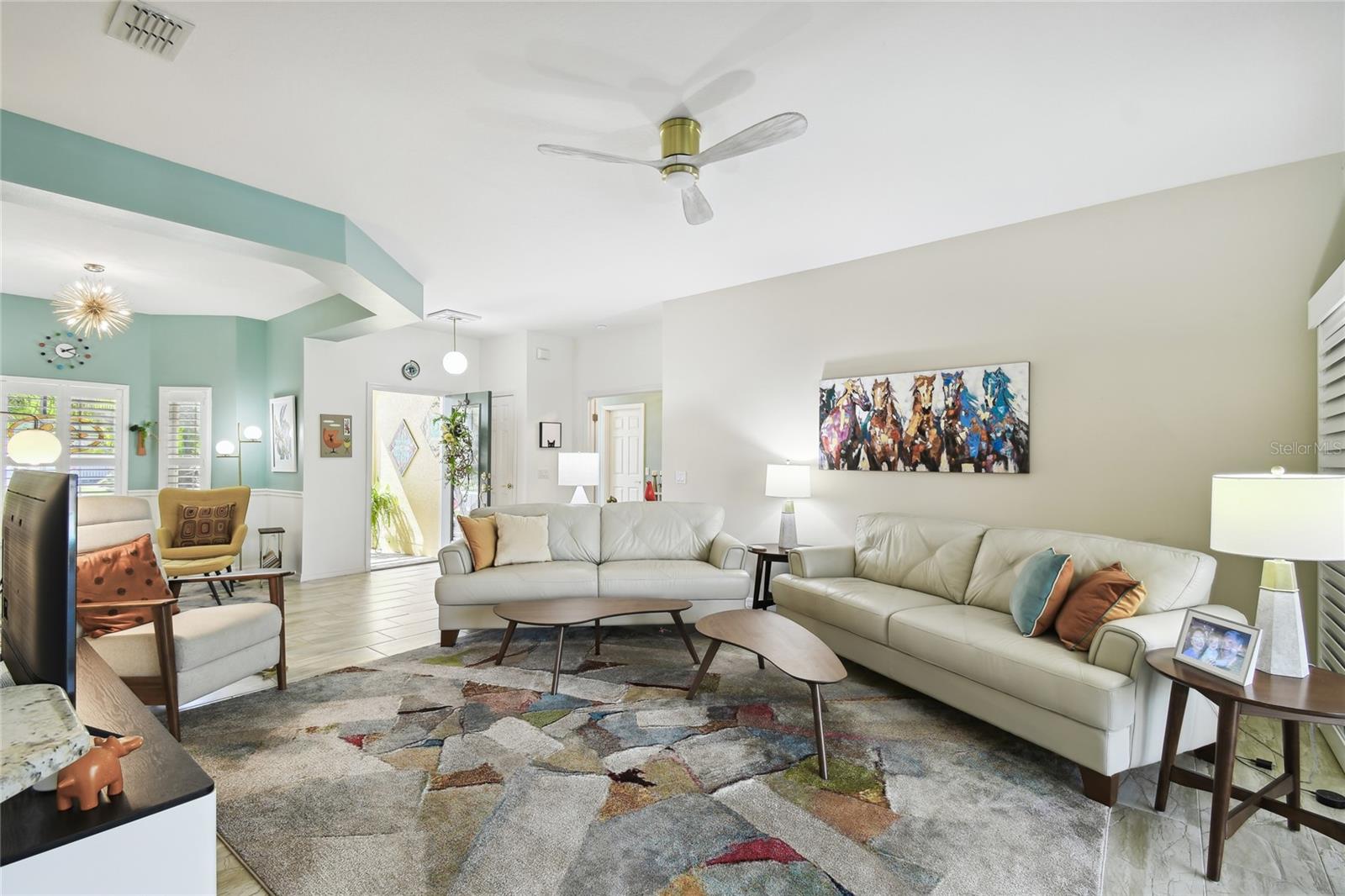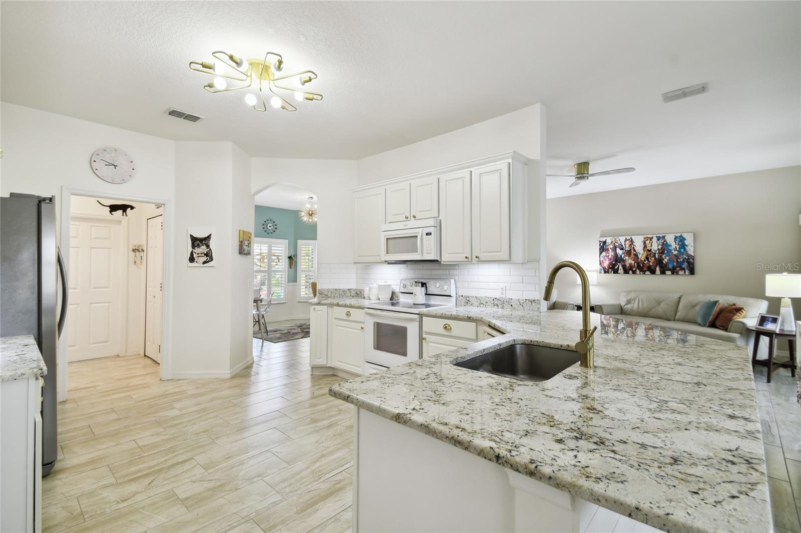 Uma ou mais fotos foram praticamente encenadas. Reduzido, o proprietário diz que traga todas as ofertas e faça desta sua nova casa em Solivita. Venha ver este belo modelo Carnegie remodelado. As atualizações incluem o novo telhado 2017, o novo compressor CA 2024, a nova lavadora de lavadora 2024, o exterior pintado 2022, sistema de filtração de água em toda a casa (paga integralmente), sarjetas e dowspouts limpados 2024. Garantia doméstica totalmente assumida. Ao entrar, você experimentará toques de designers por toda parte, a partir do Great RM com uma bela parede de traços de shiplap que continua até o fundo da barra de café da manhã, ventiladores de teto e persianas nas portas de vidro deslizantes que levam ao Lanai. O jantar RM tem um lustre personalizado e persianas de plantações. Esta casa oferece o mesmo piso nas principais áreas de estar. A cozinha possui armários de madeira branca com gavetas de retirada, backsplash de azulejos, iluminação decorativa sob armário e barra de café da manhã para comer e entretenimento casual. A área de lanchonete separada com porta deslizante de vidro para um scrnd lanai prolongado. Há uma entrada em arco no espaço da família RM/ Flex com uma cama de Murphy embutida com prateleiras personalizadas e porta de vidro deslizante, o que também leva ao Lanai. Em seguida, você encontrará o banheiro de hóspedes remodelado com azulejos brancos, porta de chuveiro de vidro, piso decorativo de ladrilhos e vaidade flutuante. O quarto 2 está localizado diretamente fora do corredor do banheiro de hóspedes para privacidade e conveniência. O retiro do proprietário é uma asa separada localizada na grande sala e oferece uma dramática entrada de porta dupla para a área de saguão, o que leva a dois armários separados. O banheiro privativo oferece uma banheira de imersão relaxante com uma bela janela de sacada. Há também um chuveiro conveniente. Além disso, existem pias duplas, há um recurso de cesto de inclinação. Espelhos redondos personalizados com iluminação de grife acima da vaidade corresponde ao lustre para esse toque de designer. A suíte do proprietário oferece fã de tapete, teto e tem uma área de estar com porta de vidro deslizante para o Lanai. A lavanderia fica fora da cozinha com uma porta separada da garagem. A garagem tem uma escada de madeira suspensa para facilitar o acesso ao sótão. A porta da garagem possui um novo preenchimento de borracha de primavera e inferior substituído em 2024. Há um teclado de garagem externo para fácil entrada. Um grande shopping center abriu parcialmente neste verão diretamente em frente ao portão principal do Solivita, na mercearia e mais em breve.
