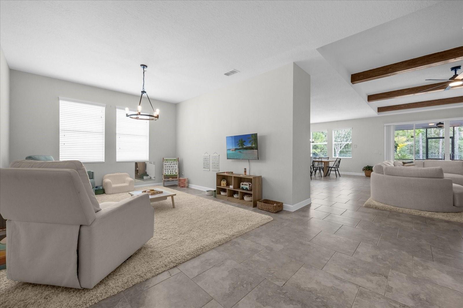 Bem-vindo a esta casa térrea, a prestigiada Marina Model by Lennar Homes, composta por *4 QUARTOS e 3 BANHEIROS COMPLETOS e GARAGEM PARA 3 CARROS* situada em *LOTE PREMIUM*, *VOLTADO À ÁREA DE CONSERVAÇÃO*, no procurado condomínio fechado comunidade residencial *Reflexões em Storey Lake*. Ao entrar nesta casa repleta de luz natural, você é recebido por um amplo hall de entrada que flui perfeitamente para as principais áreas de estar da casa. O 2º e 3º quartos estão localizados no lado esquerdo e compartilham um banheiro Jack and Jill com pia dupla de granito e uma área privativa para vaso sanitário e chuveiro. Movendo-se para as áreas de estar principais, a sala de jantar estará à sua esquerda e a espaçosa cozinha aberta e a sala de família com *LAREIRA* flui para as vistas deslumbrantes do quintal *TOTALMENTE CERCADO*, com uma *LANAI TELA*, voltada para o Shingle Área de conservação do riacho, a natureza no seu melhor, oferecendo um cenário perfeito para relaxamento ou entretenimento. A casa possui *PISO CERÂMICO* em todas as áreas comuns, áreas úmidas, quarto principal e 4º quarto. No coração da casa, a cozinha possui *ELETRODOMÉSTICOS DE AÇO INOXIDÁVEL* de alta qualidade, incluindo micro-ondas, fogão, geladeira side-by-side e lava-louças. As *BANCADAS DE GRANITO* da cozinha e os armários superiores de 42 polegadas refletem um equilíbrio perfeito entre estilo e funcionalidade. O grande quarto principal está localizado na extremidade direita da sala familiar e oferece duas janelas para o quintal voltado para a floresta. O Banheiro Principal, pensado na sofisticação e praticidade, é equipado com pia dupla em granito, banheira e chuveiro separado com divisória de vidro. O armário grande dá acesso à lavanderia convenientemente localizada. O 4º Quarto é servido pela 3ª casa de banho. Convenientemente posicionada *EM FRENTE DO CLUBHOUSE*, que oferece uma bela piscina, academia totalmente equipada, sala de conferências e área de recreação infantil, esta casa está impecavelmente bem conservada e pronta para morar. Perto da Osceola Parkway, esta propriedade oferece uma localização estratégica perto dos parques Disney, Publix, Walmart, Target e uma ampla seleção de supermercados, lojas e restaurantes. Terra